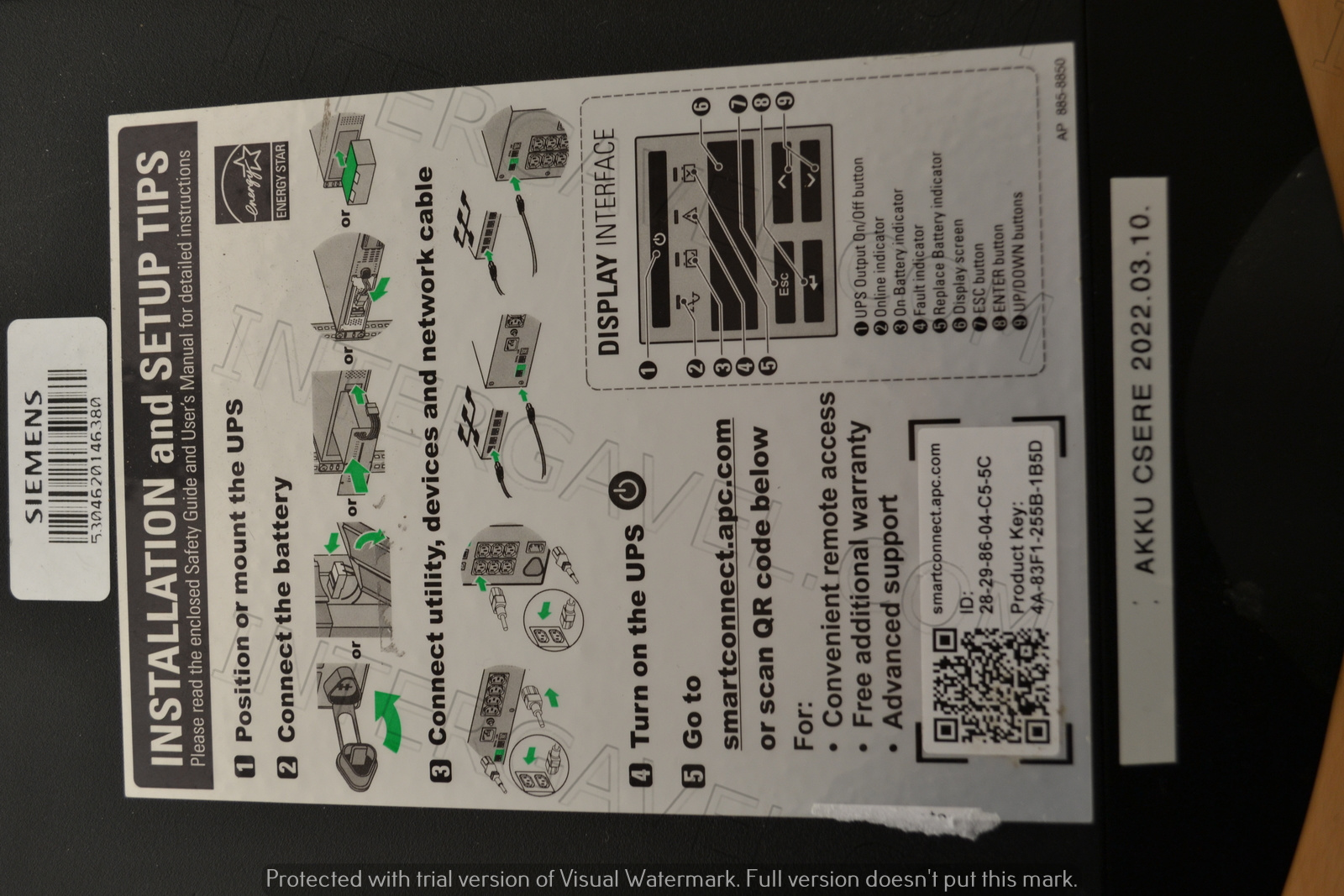 Típus: Smart-UPS 1000, 1000 VA 160-286V, kimeneti feszültség: 230V, 700W