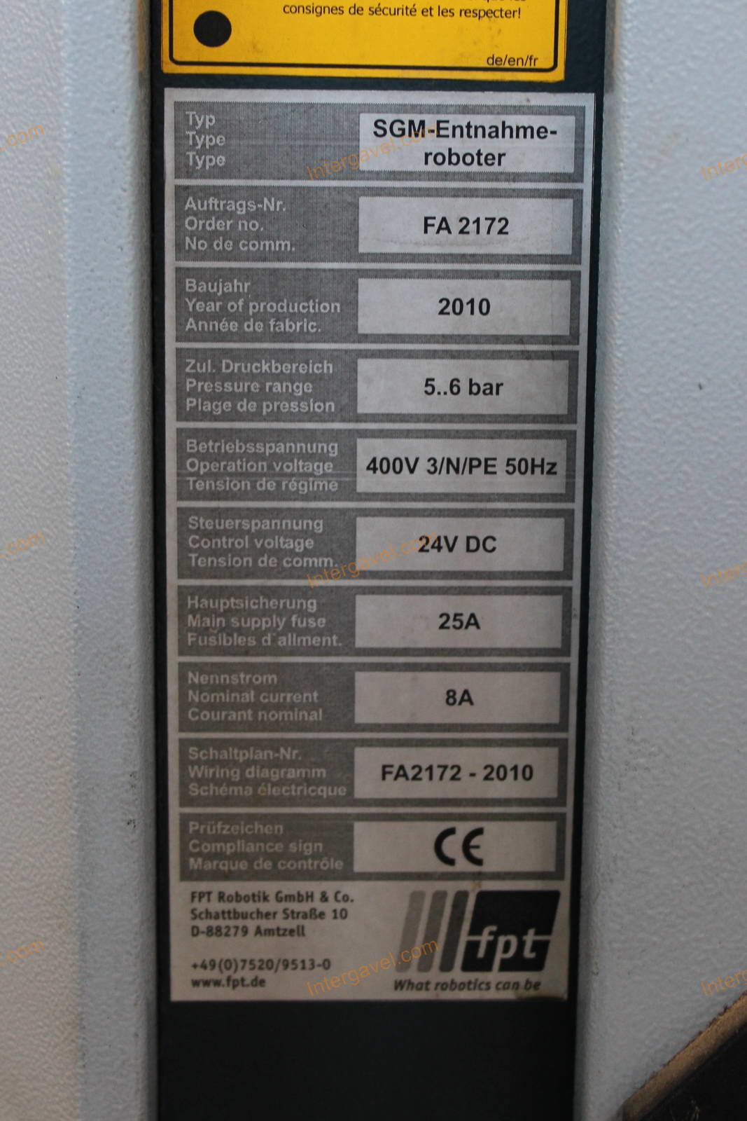 - szerszám, termékspecifikus eszközök és a szállító szalagon lévő mérleg nem tartozik a tételhez