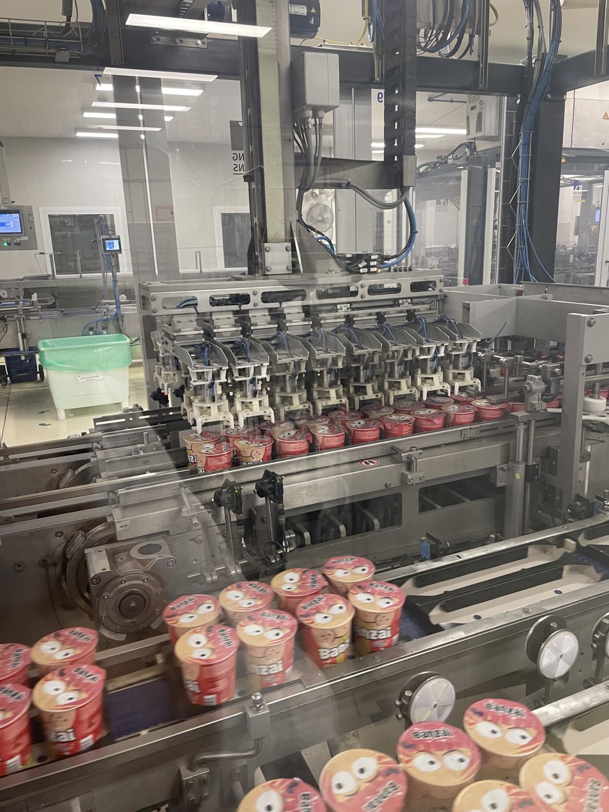 Egy ütemben 8 db. poharas vagy dobozos termék tálcakészítőről érkező tálcákba behelyezésére alkalmas.