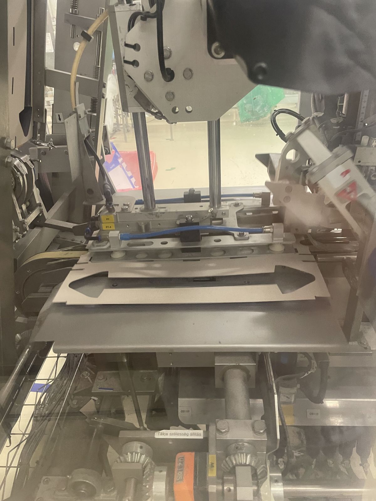 1/Tálcakészítő gép: Előre stancolt sík kartonból tálca hajtogatásra és ragasztásra képes.