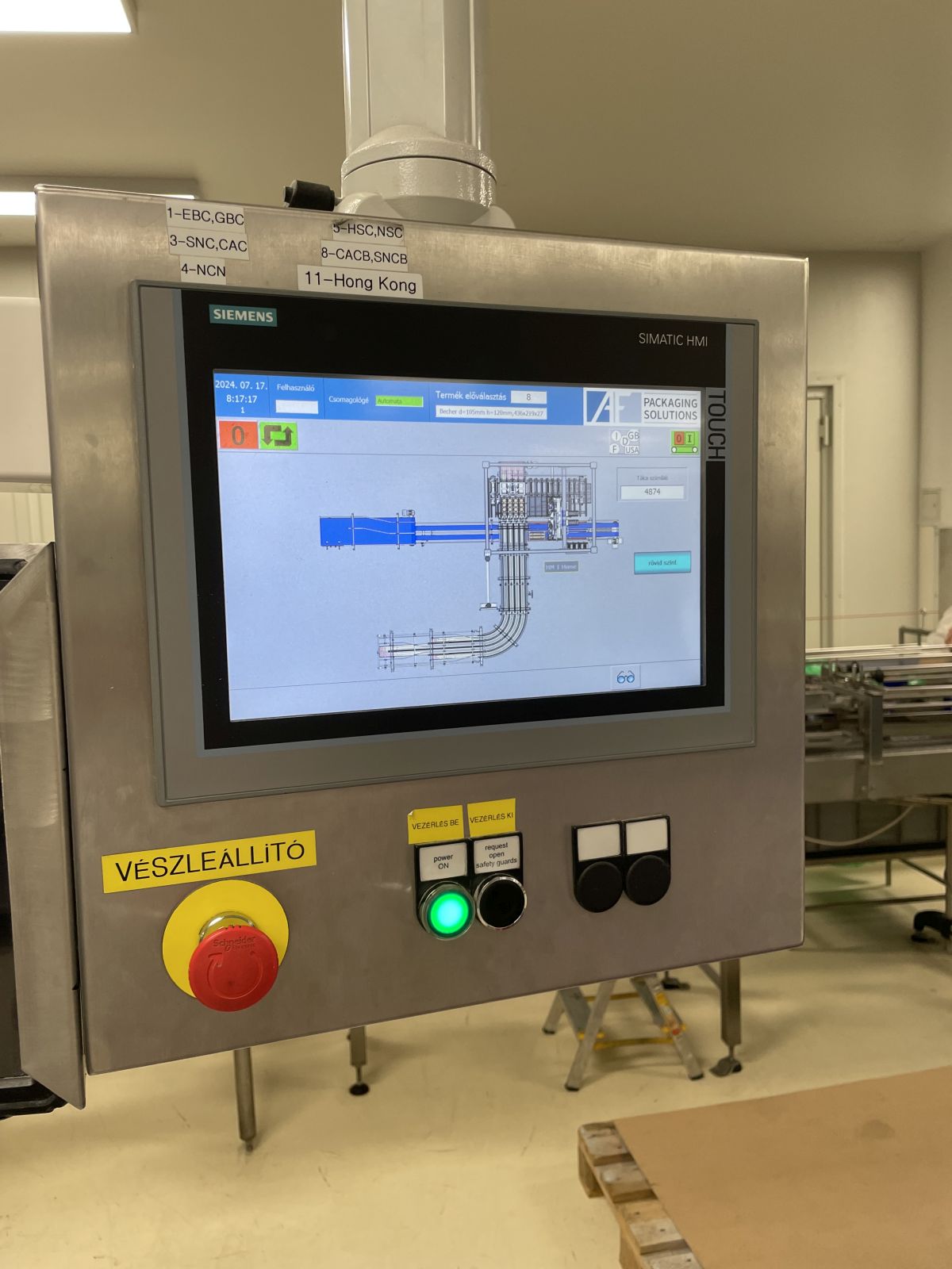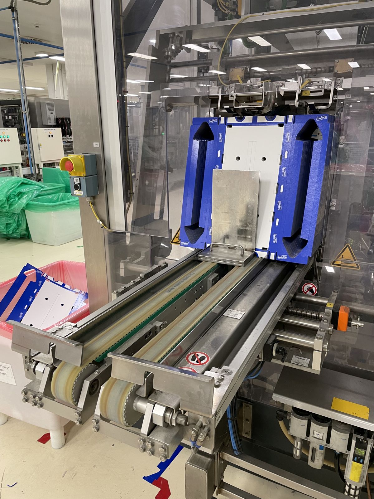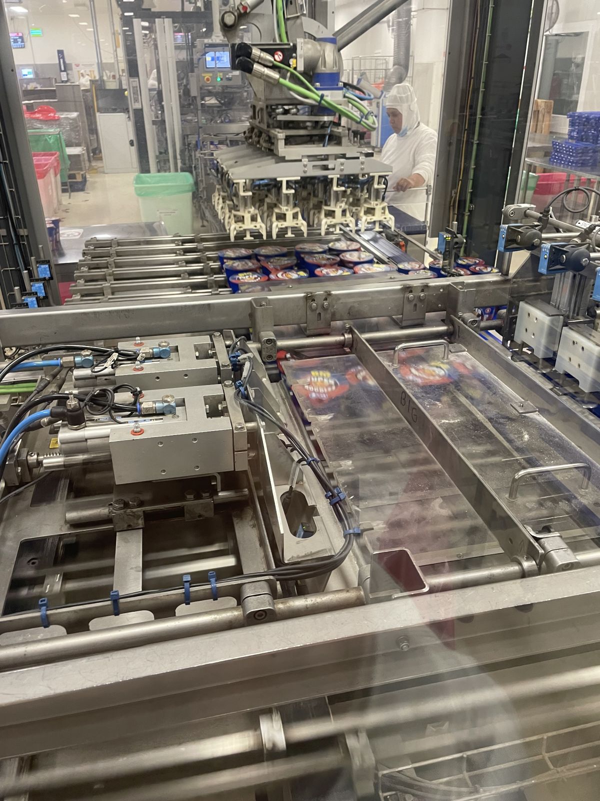 Leírás: Csomagoló gépsor poharas vagy dobozos termékek kartonba való gyűjtő csomagolásához