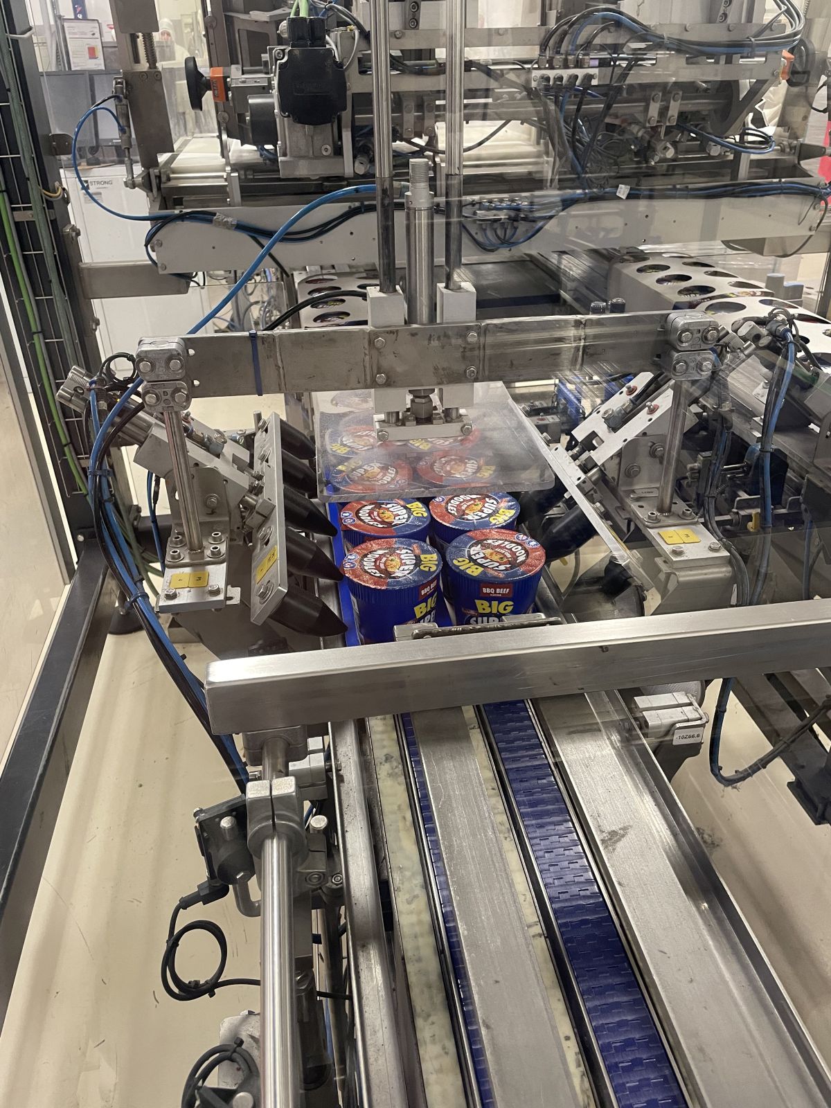 Egy ütemben 8 db. poharas vagy dobozos termék tálcakészítőről érkező tálcákba behelyezésére alkalmas.