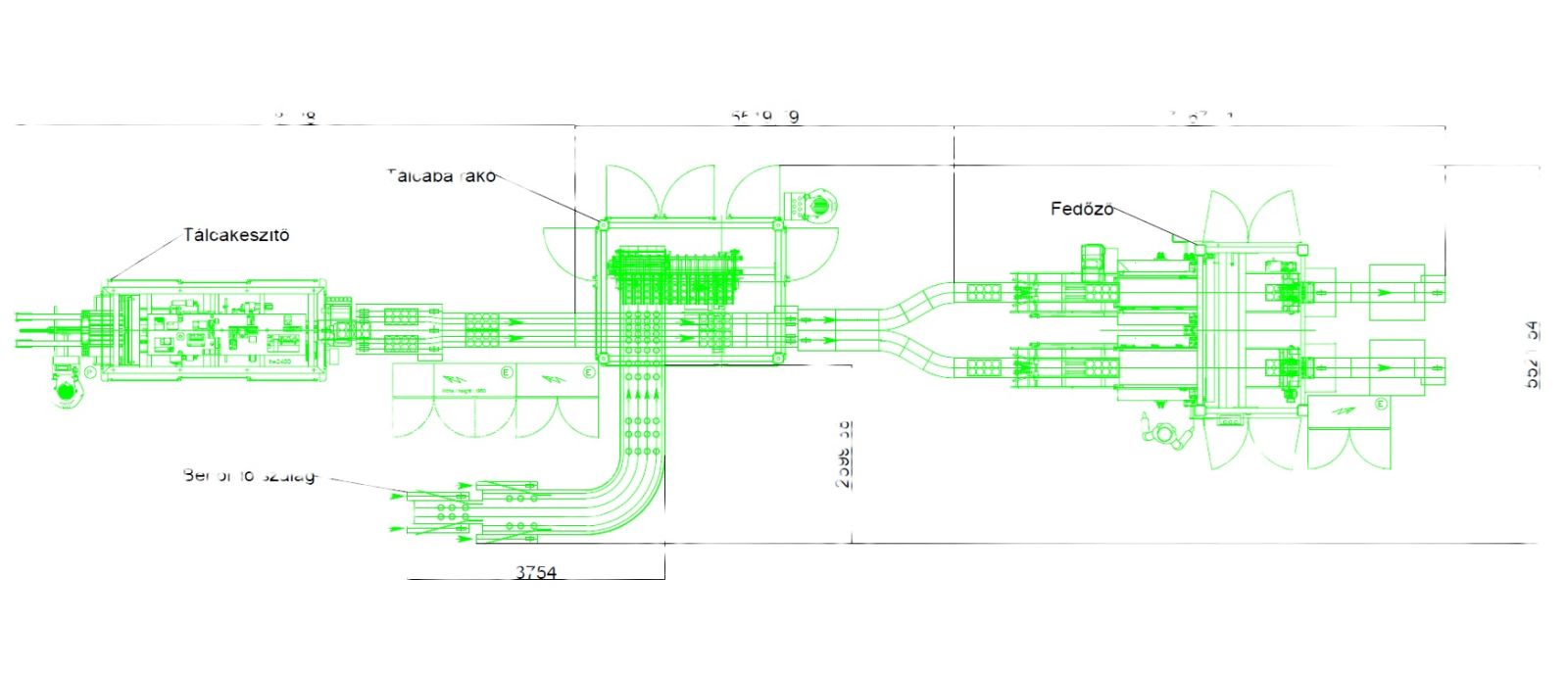 Megjegyzés: a gépsor teljesen szétszerelt állapotban van.