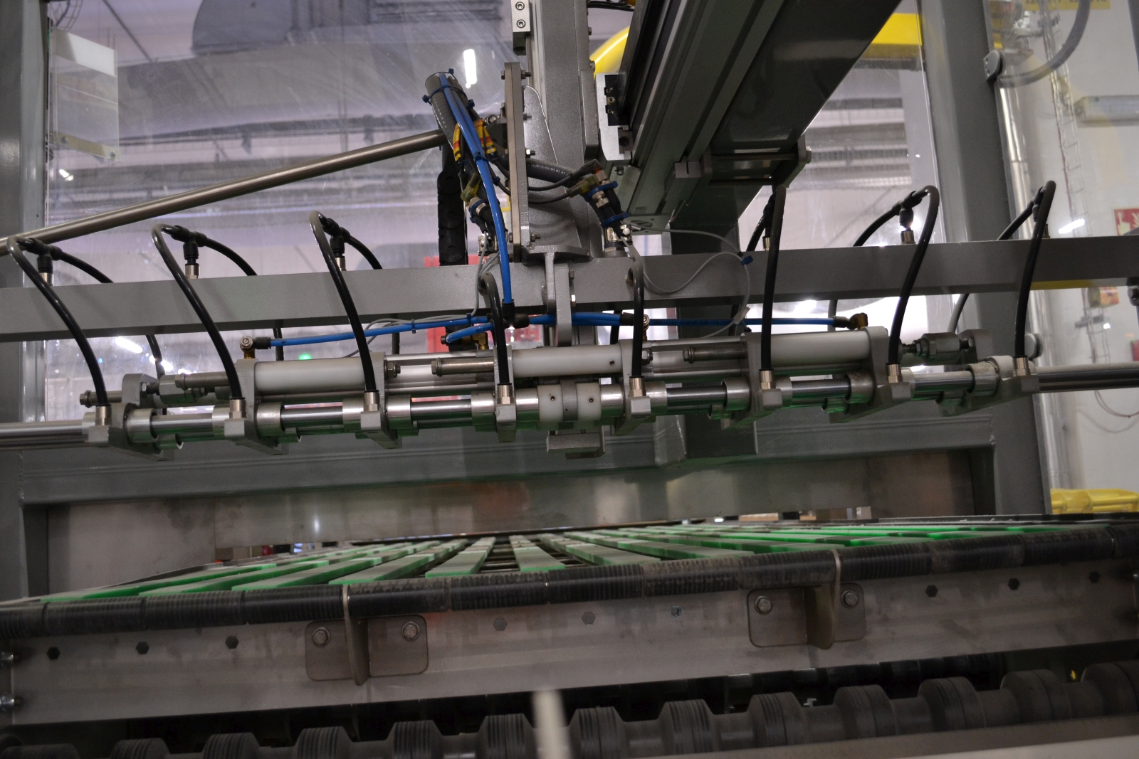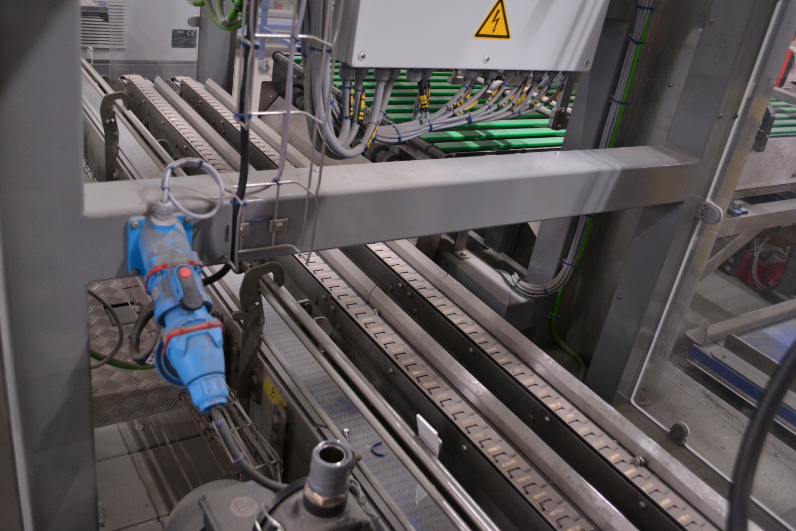 A gépsor megbontott állapotban van. A sor nem müködőképes mert hiányznak belőle alkatrészek. 3 azonos cellából áll.