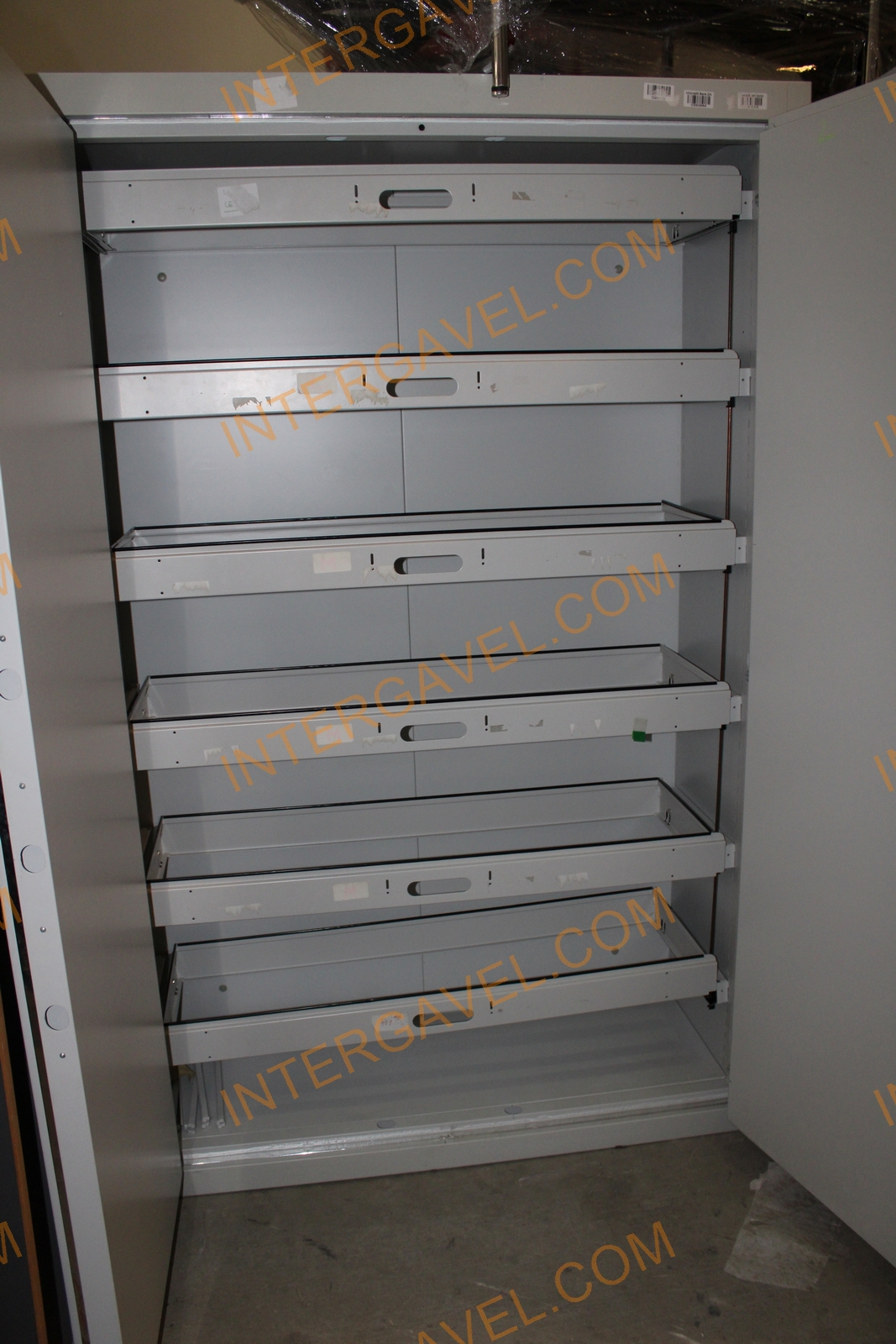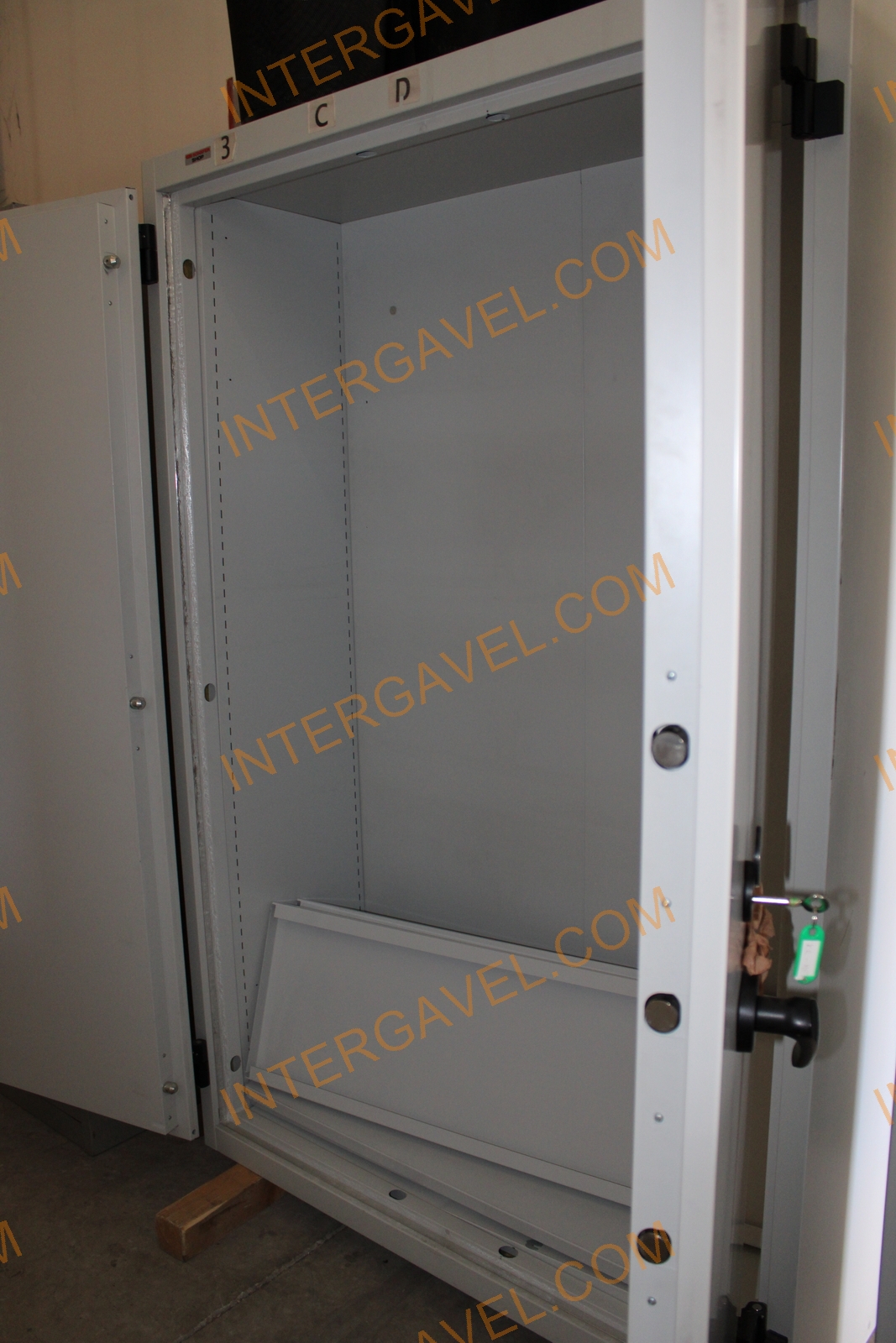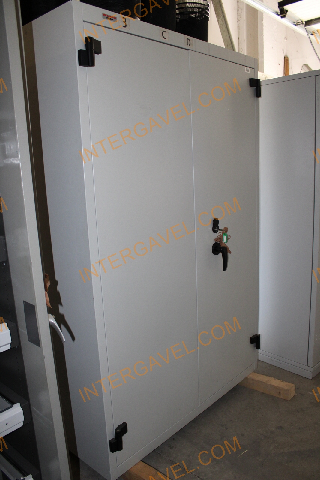 Egyik szekrény függőmappa tárolós, másik szekrény polcos (polcakasztó fülek hiányosak)