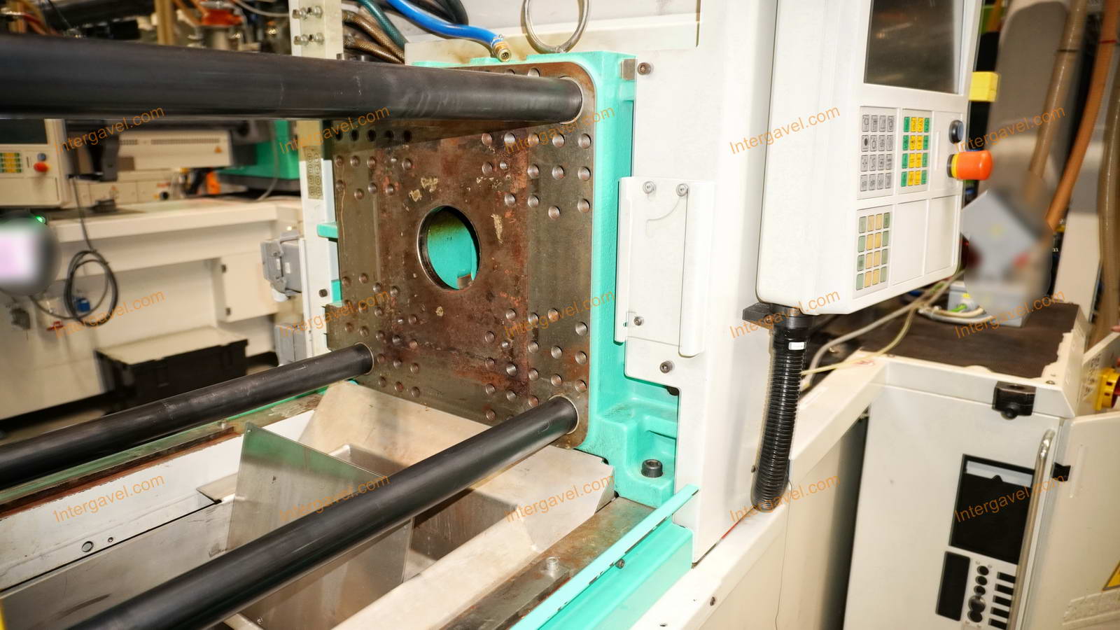 - gép környezetében látható egyéb eszközök nem tartozik a tételhez, mint pl szállító szalag, láda cserélő, daráló, temperáló, granulátum felszívó-keverő és csővezetéke, tároló eszközök stb.