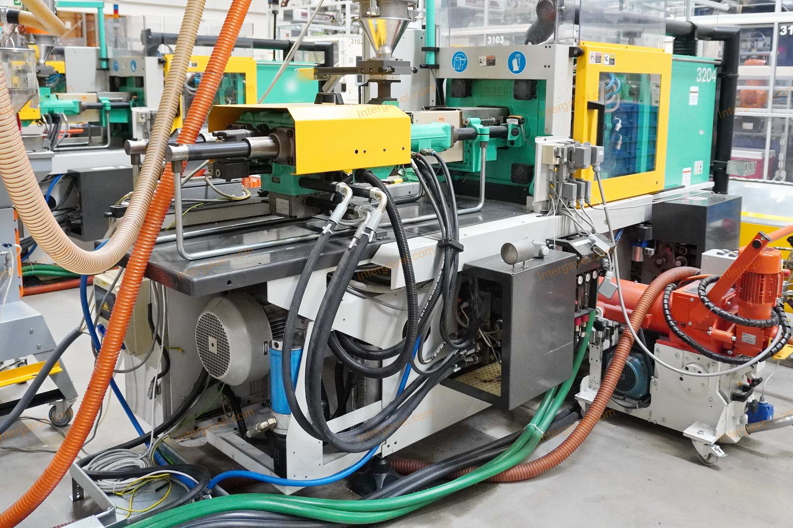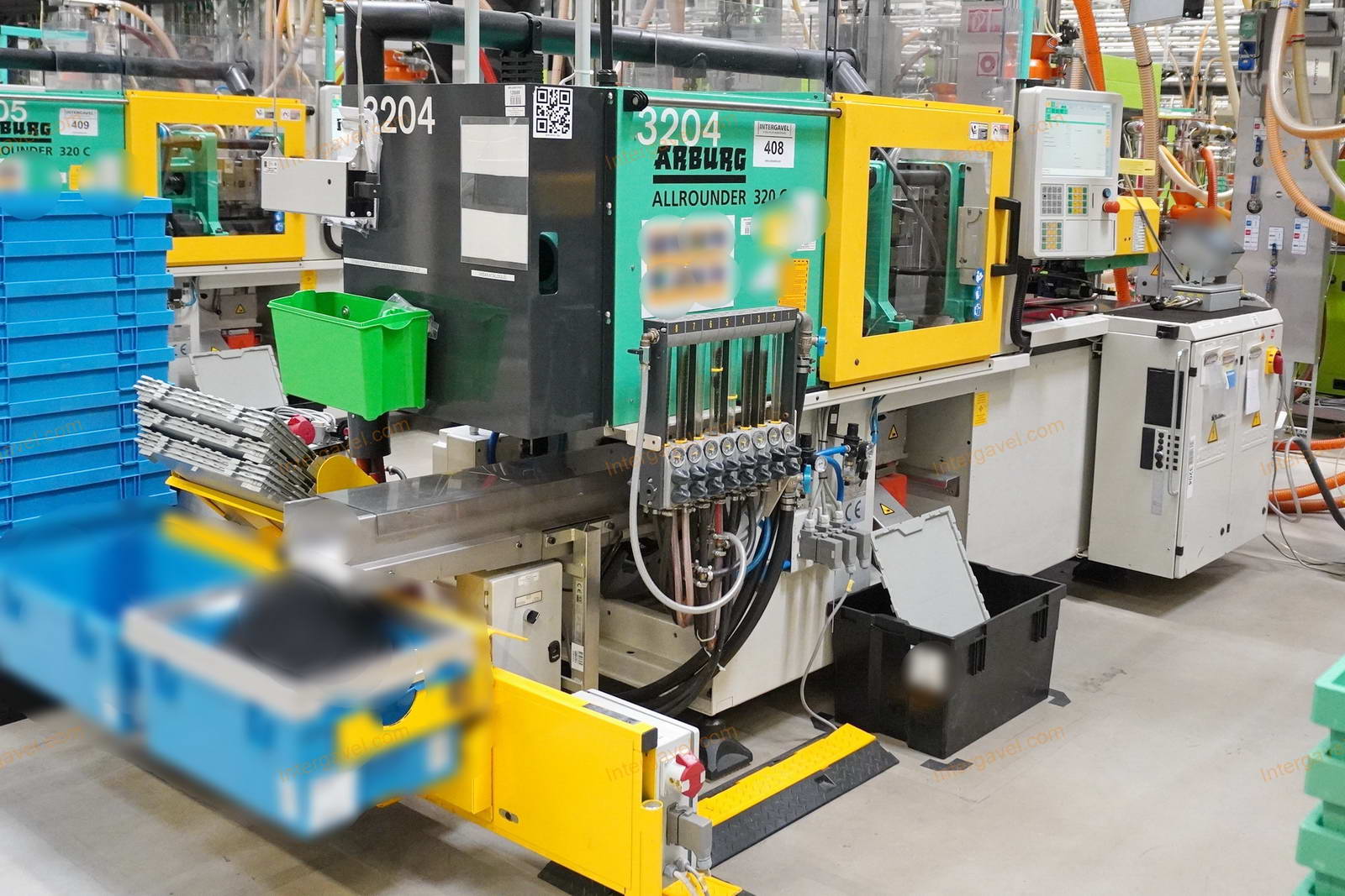 - gép környezetében látható egyéb eszközök nem tartoznak a tételhez, mint pl szállító szalag, műanyag daráló, láda cserélő, temperáló, granulátum keverő és csővezetéke, tároló eszközök stb.
