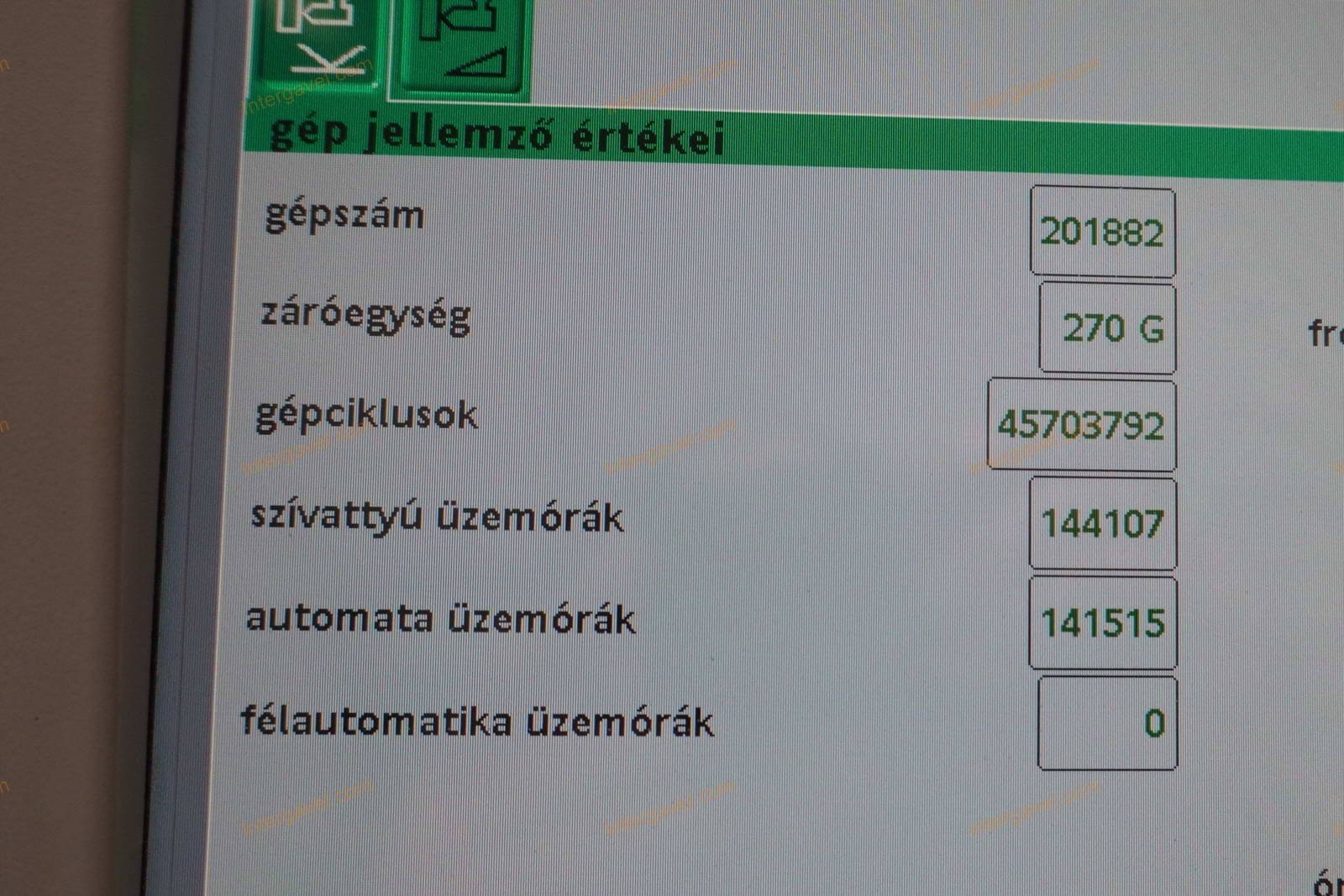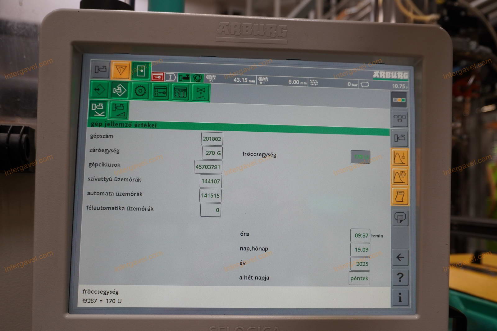 - eladó a felmérés időpontja (2025.09.19) után még használja a fröccsöntő gépet, ezért az üzemóra, ciklusszám értéke változik