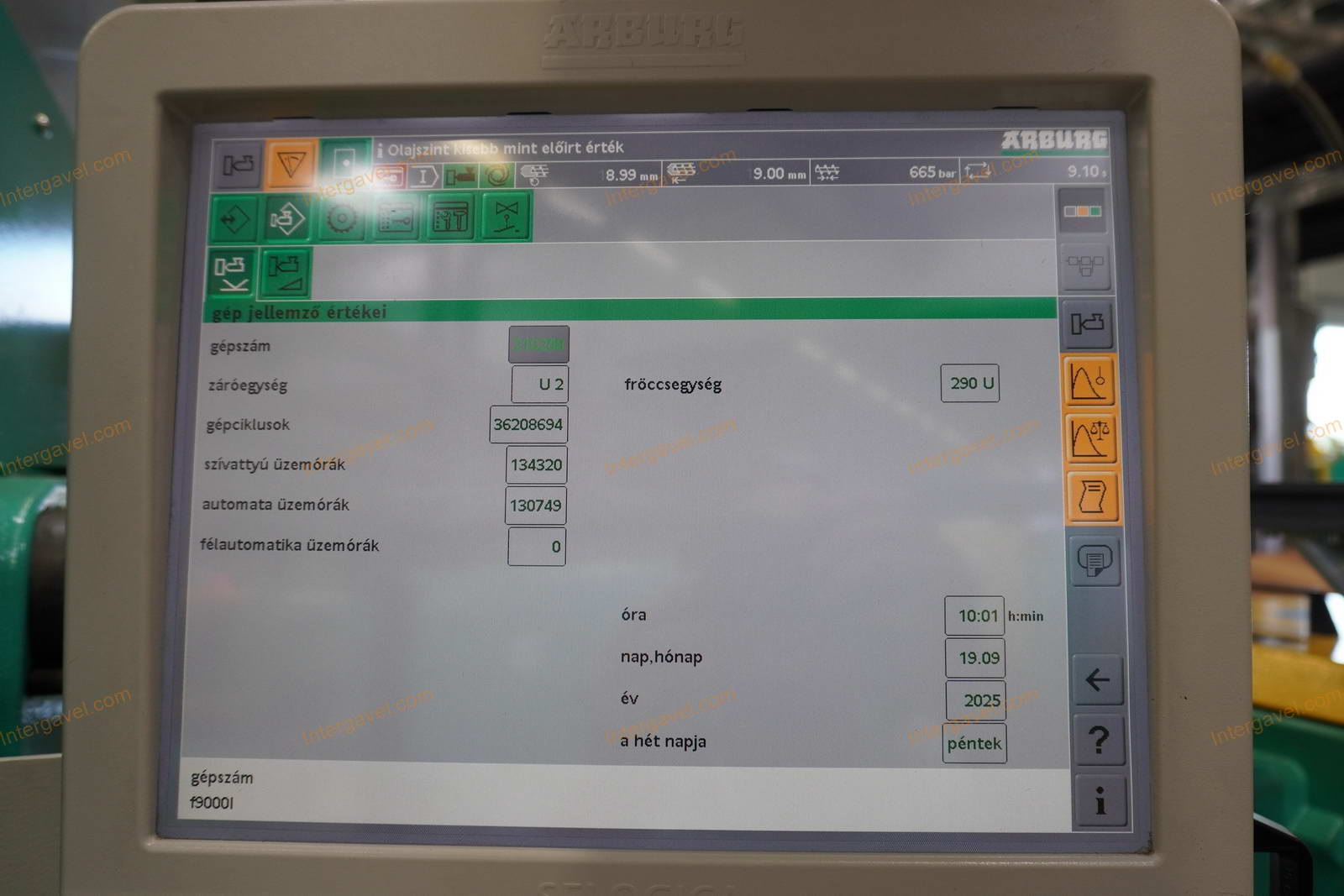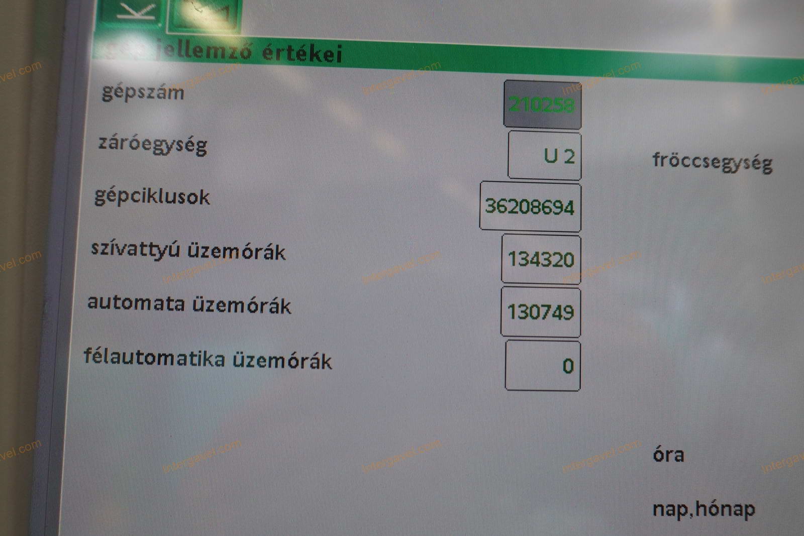 - eladó a felmérés időpontja (2025.09.19) után még használja a fröccsöntő gépet, ezért az üzemóra, ciklusszám értéke változik