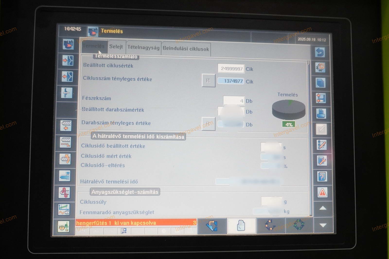 - eladó a felmérés időpontja (2025.09.19) után még használja a fröccsöntő gépet, ezért az üzemóra, ciklusszám értéke változik