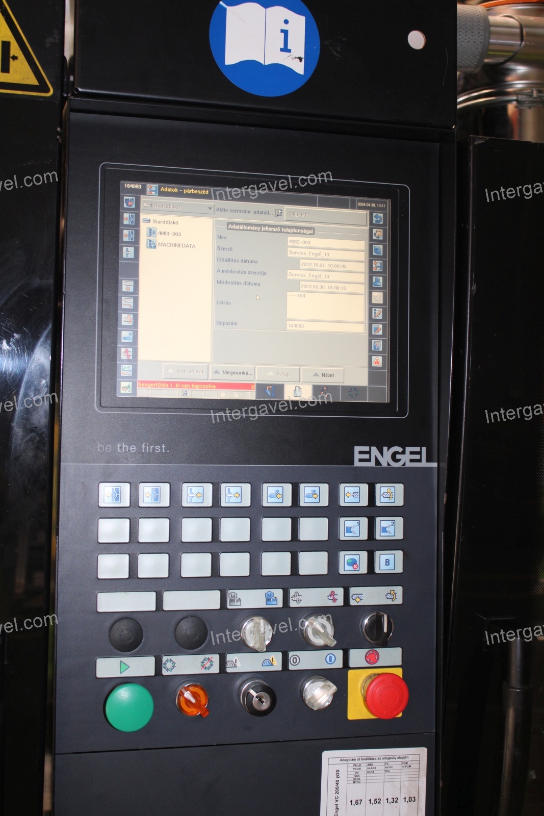 - gép környezetében látható egyéb eszközök nem tartozik a tételhez, mint pl daráló, temperáló, granulátum felszívó, tároló eszközök stb.