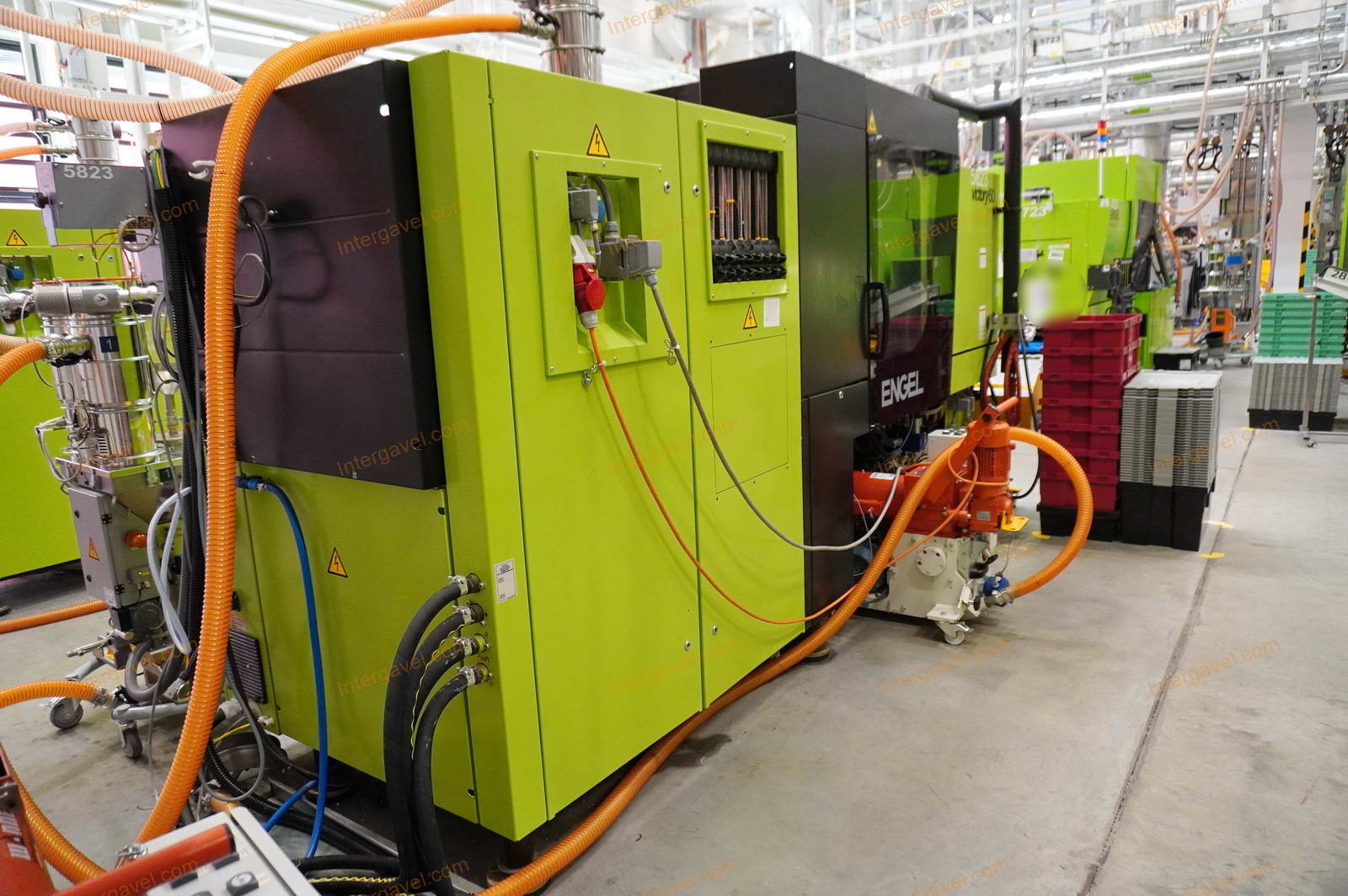 - gép környezetében látható egyéb eszközök nem tartoznak a tételhez, mint pl szállító szalag, műanyag daráló, láda cserélő, temperáló, granulátum keverő és csővezetéke, tároló eszközök stb.
