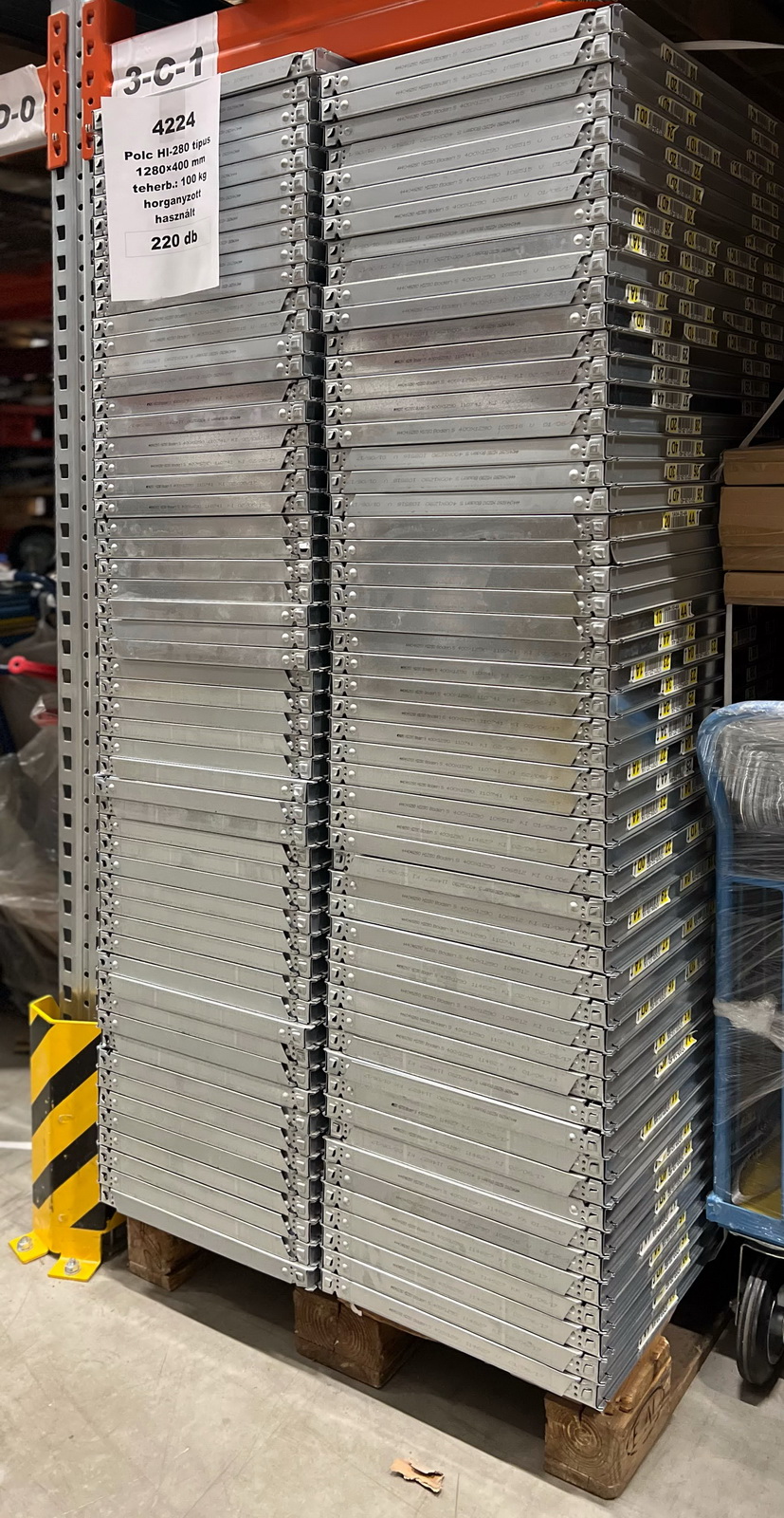 HI-280 típus 1280×400 mm polc, hossztartó nélkül, teherbírás 100 kg -20 darab