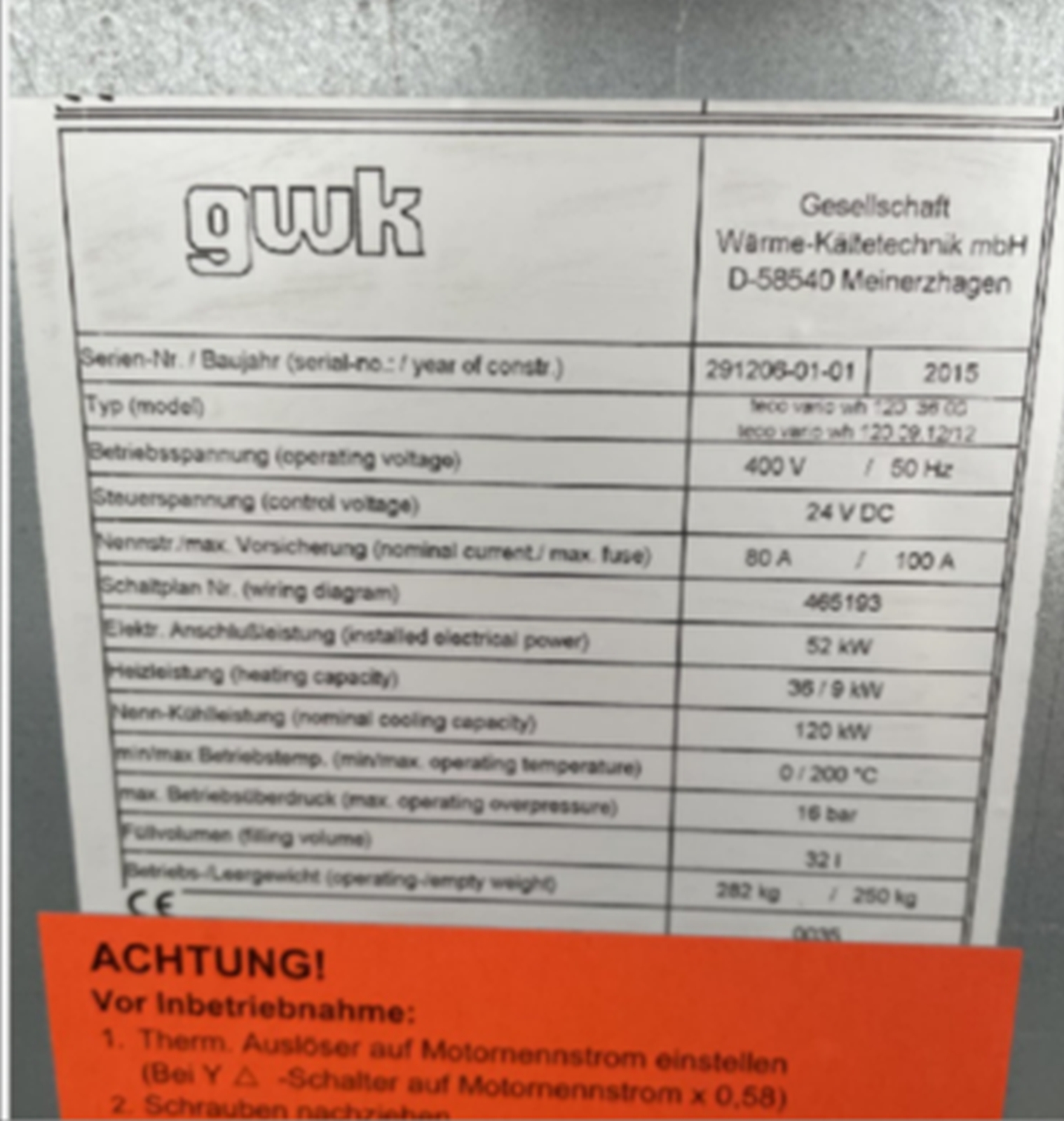 Hűtési teljesítmény : 120KW