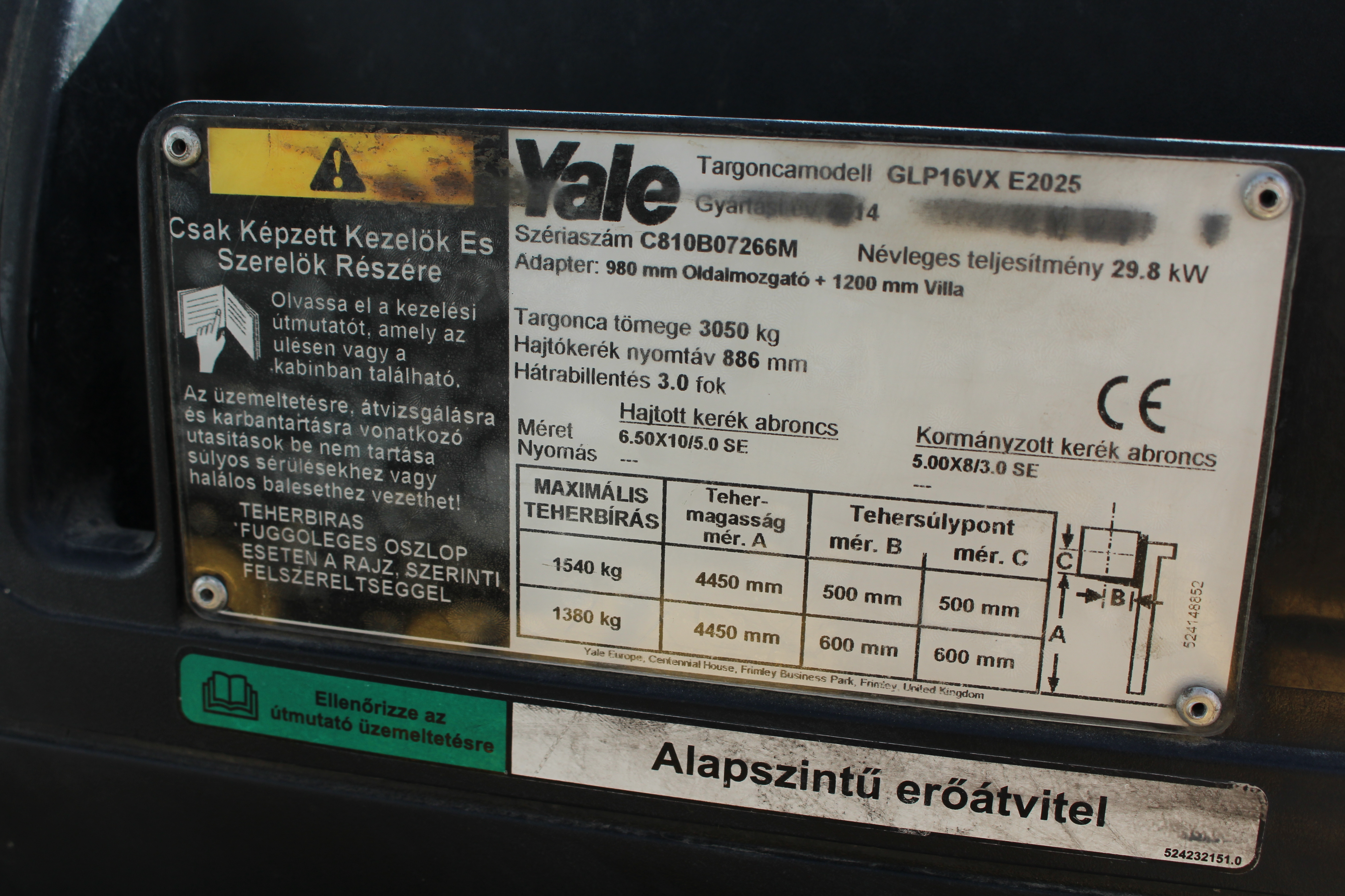 A targonca felméréskor indítható volt, de az üléslap szenzor hiba miatt további funkciók tesztelésére nem volt lehetőség.
