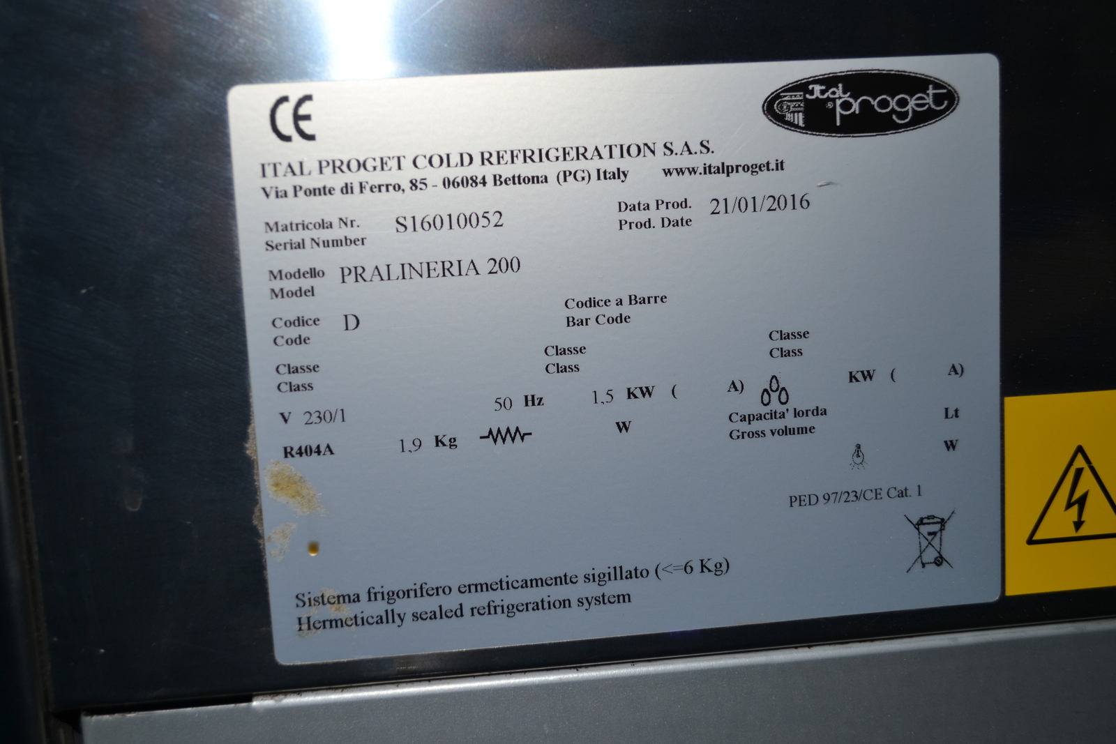 Gyártó: ITAL PROGET COLD REFRIGERATION S.A.S.