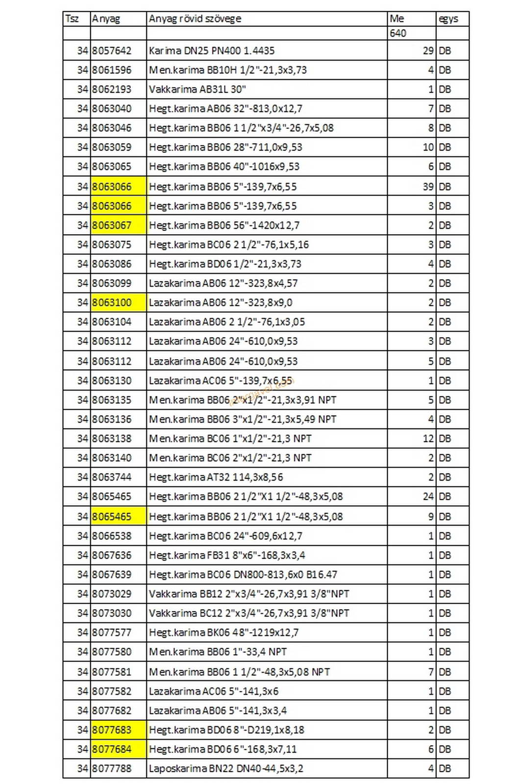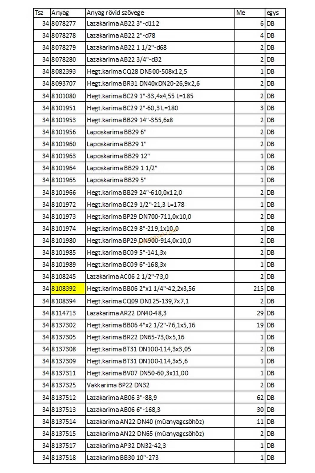 - tételhez nincs fénykép listában szereplő mindegyik alkatrészekről