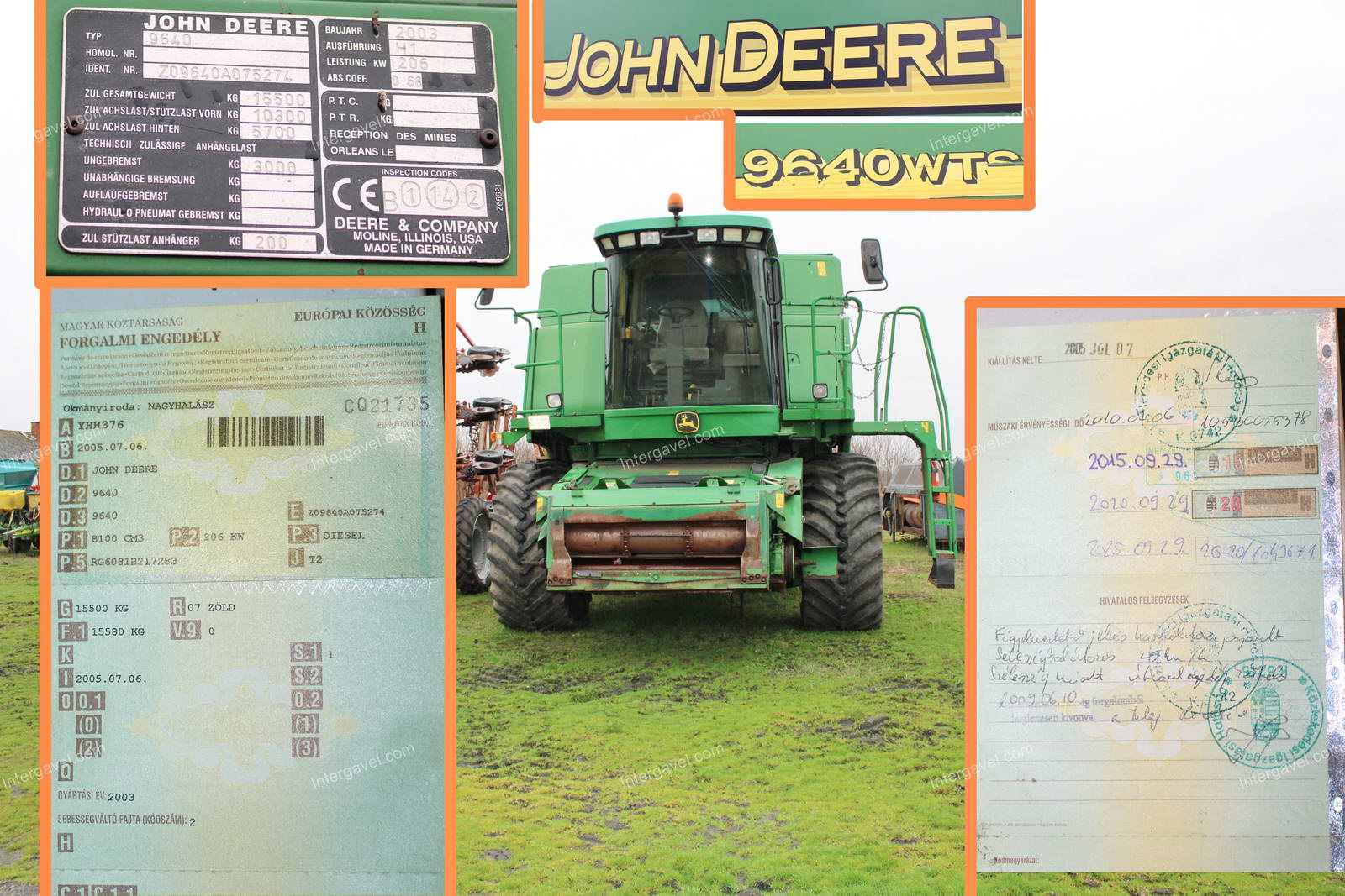 - 1 db gabona vágóasztal, 620 R, John Deere, 2003, javítva a felfogató bak (lásd 66-os kép)