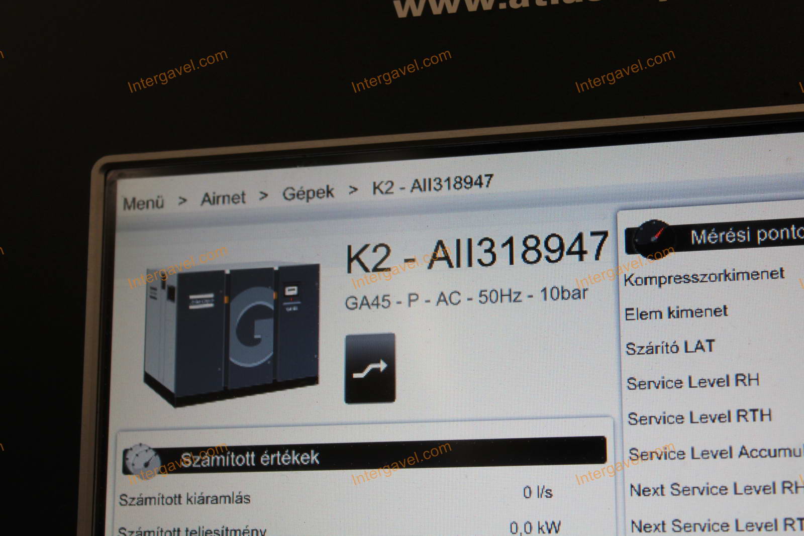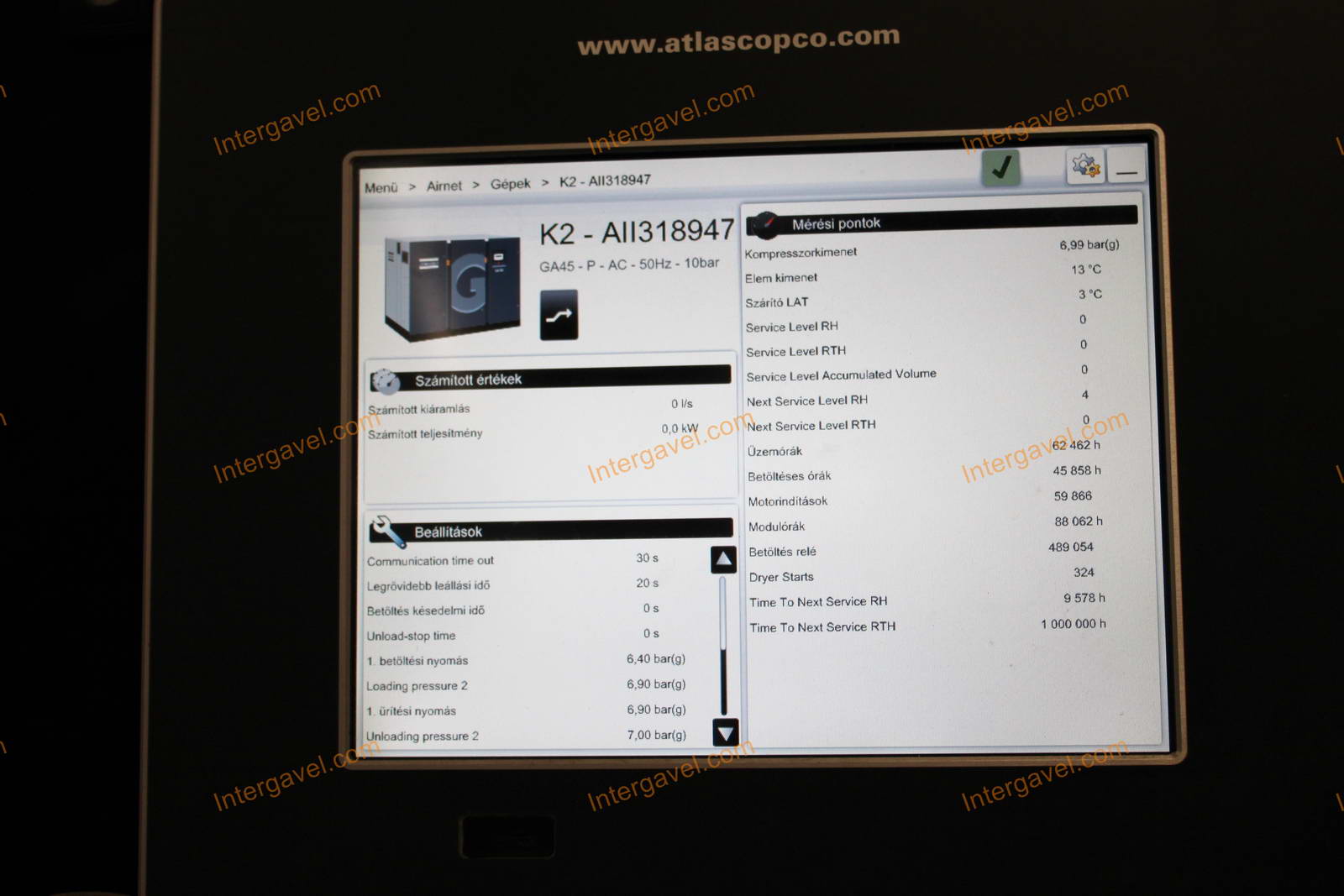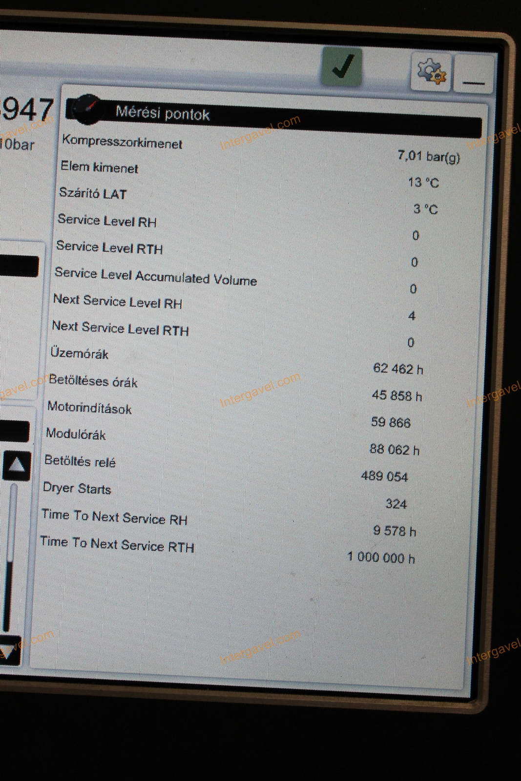 - eladó elszállításig használja a kompresszort, ezért az üzemóra értéke változik