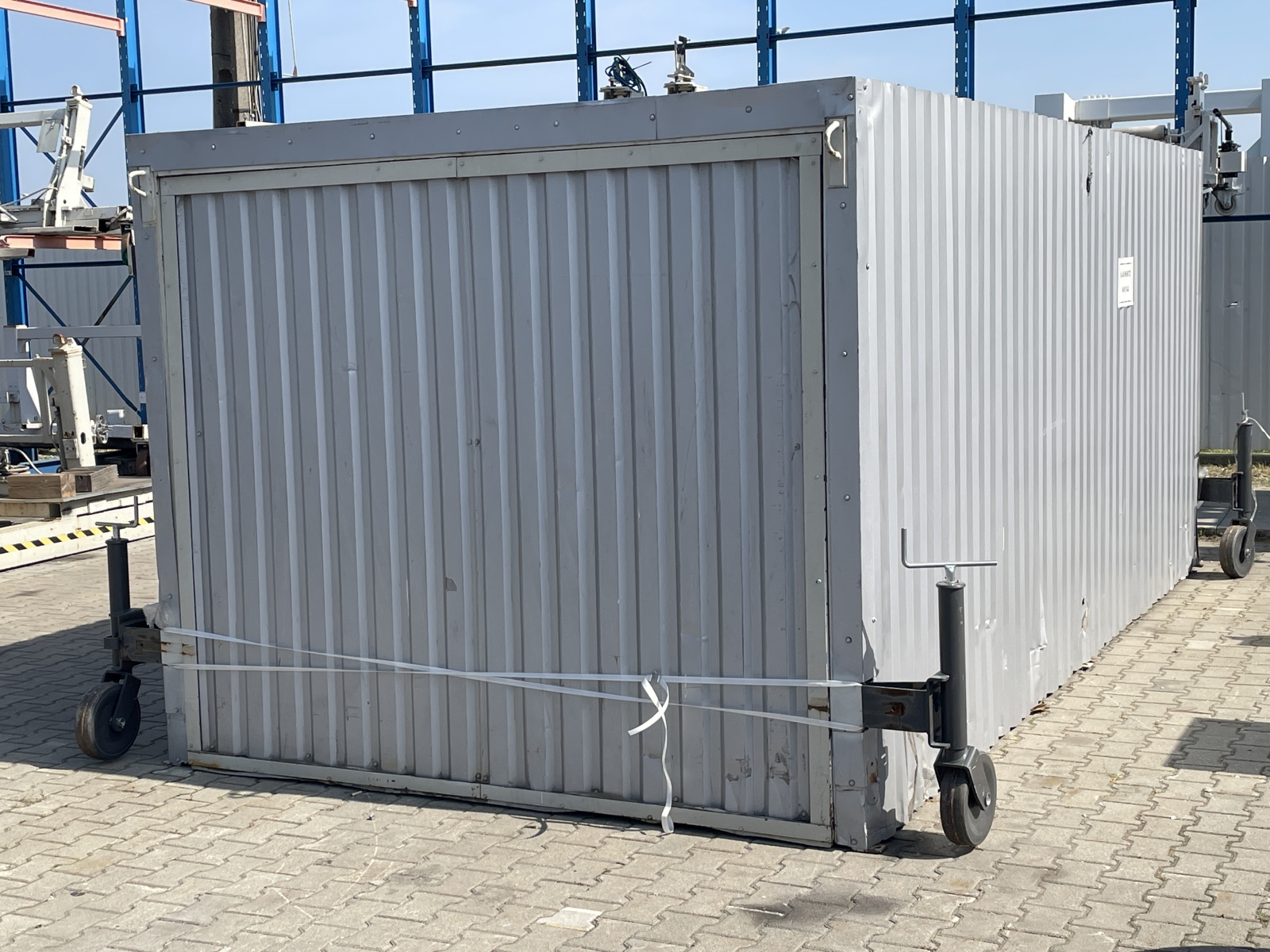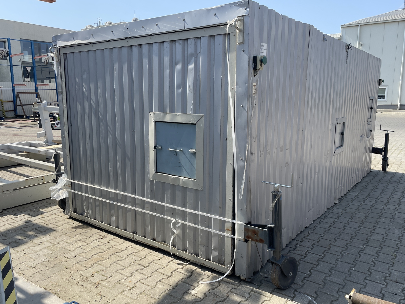 Mindkét végén felfele nyíló ajtaja van, alja nincs a kabinnak. A kabin mozgatását négy darab állítható kerék segíti.