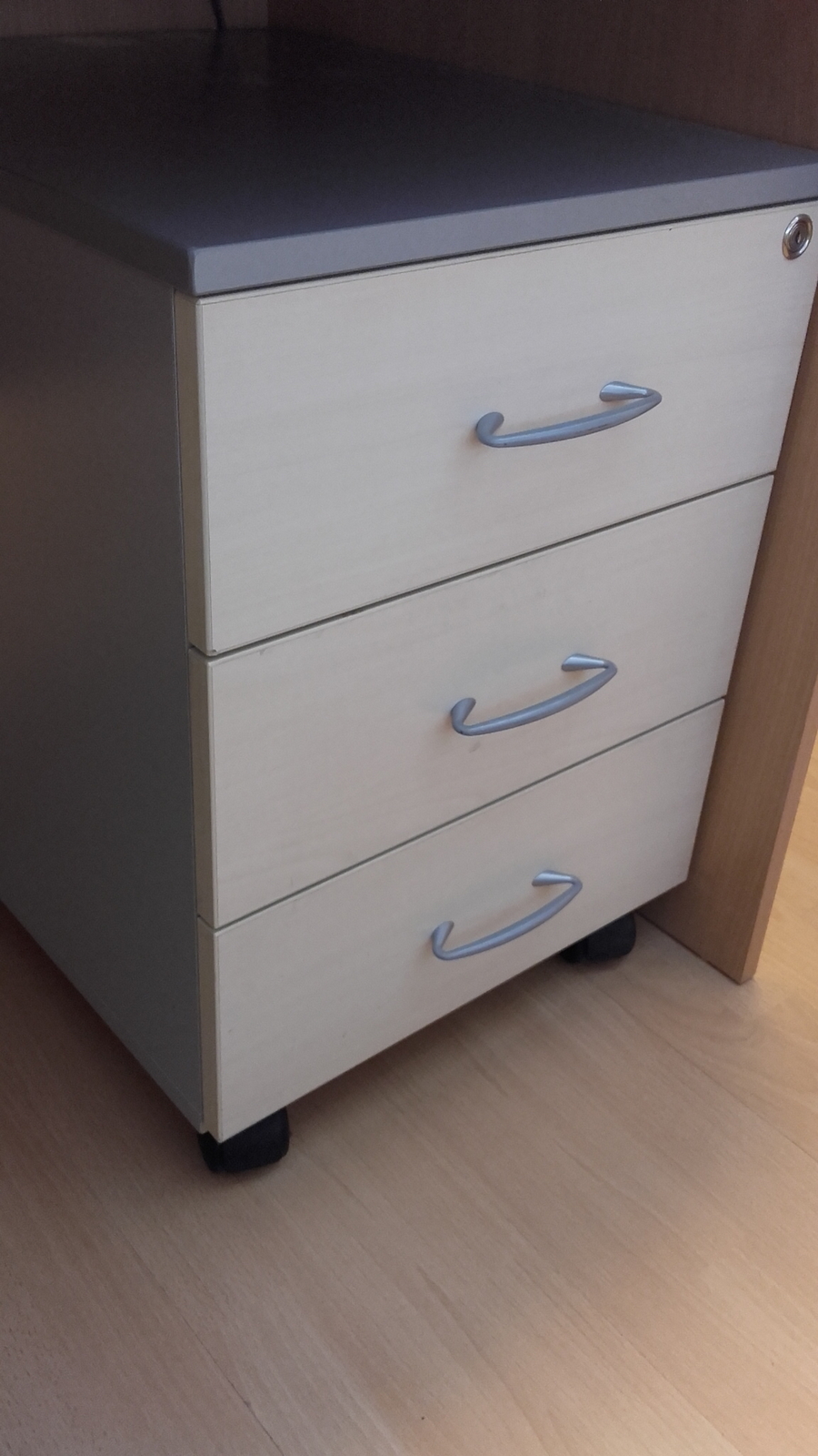 Görgős konténer, 3 fiókos, fényes kilincs, juhar szürke