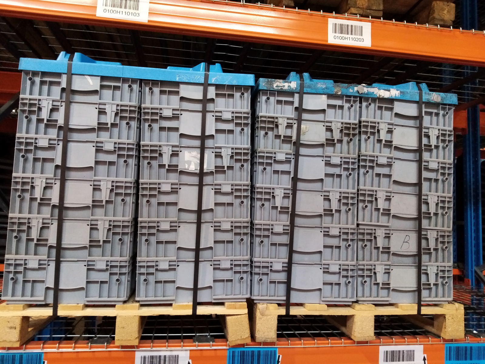 Egyutas raklapon, raklapfedéllel, melyek a tétel részét képezik