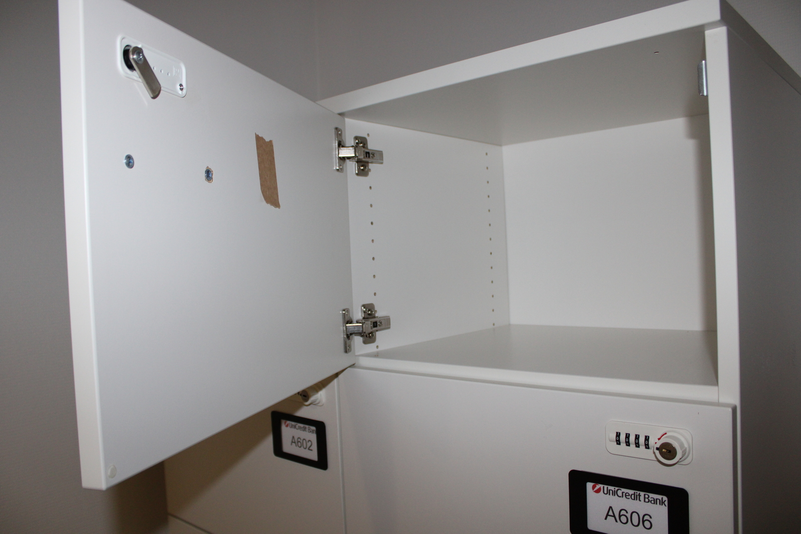 Szekrények nyitott állapotban vannak.
