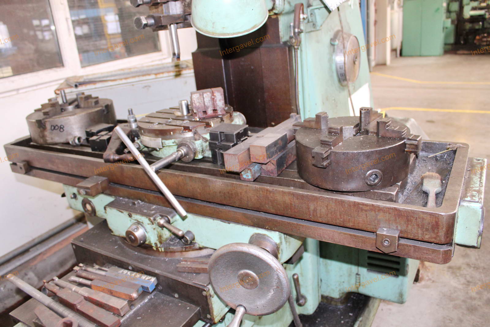 asztalon lévő körasztal (átm 280 mm), 2 db négypofás tokmány (átm 250 és 32 mm) (lásd 05-08 képek)