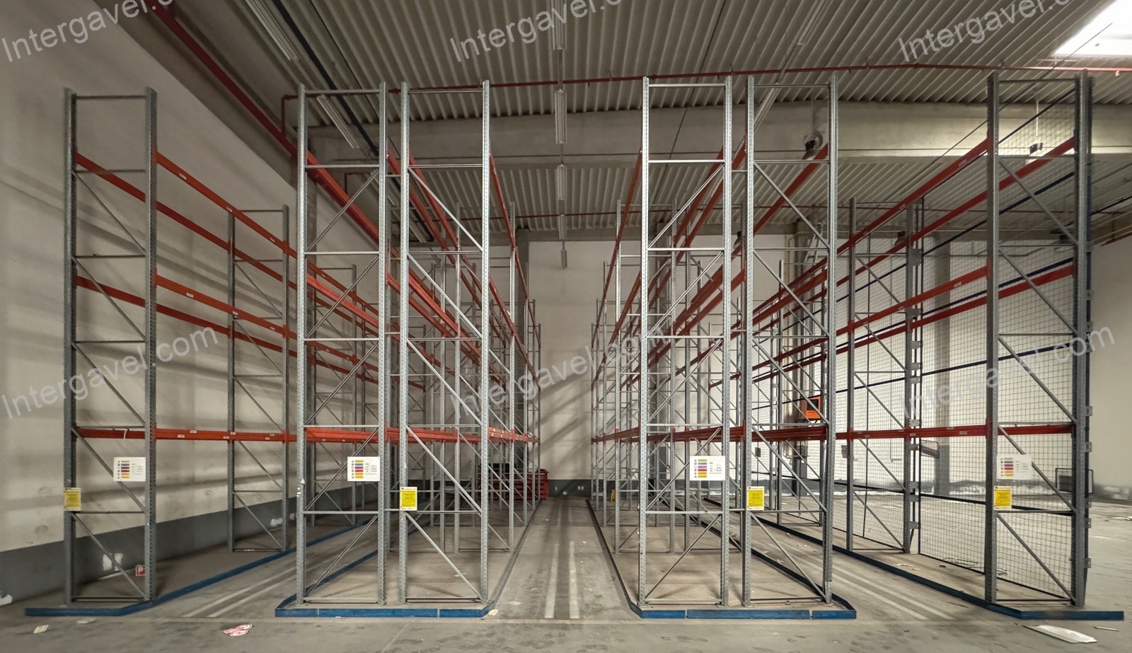 META (német) raklapos állvány rendszer, 1 sor, 7 állványmezős, 4 gerendaszinttel (nem tartalmaz targonca bevezető síneket, hátfalrácsot és kereszttartókat)