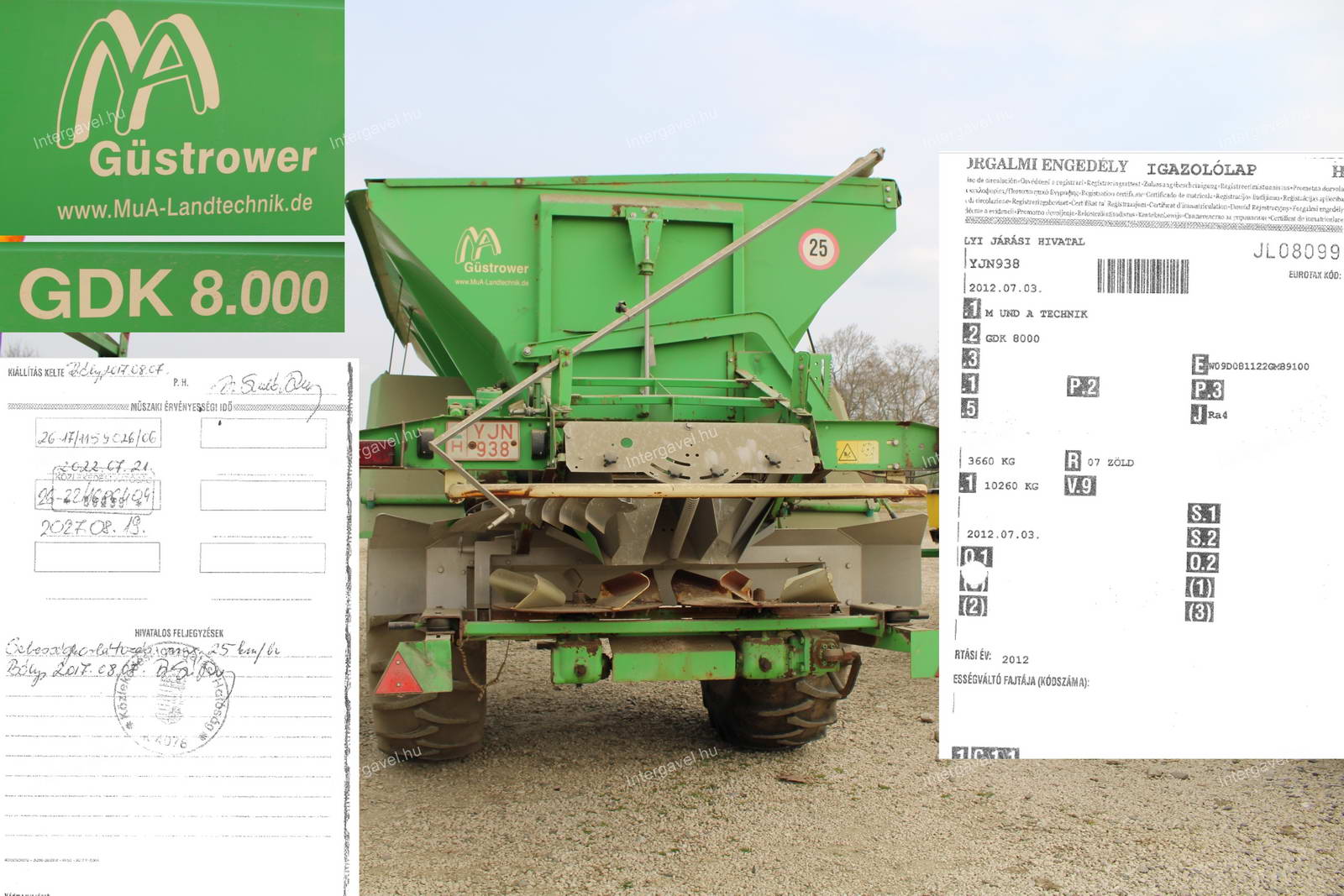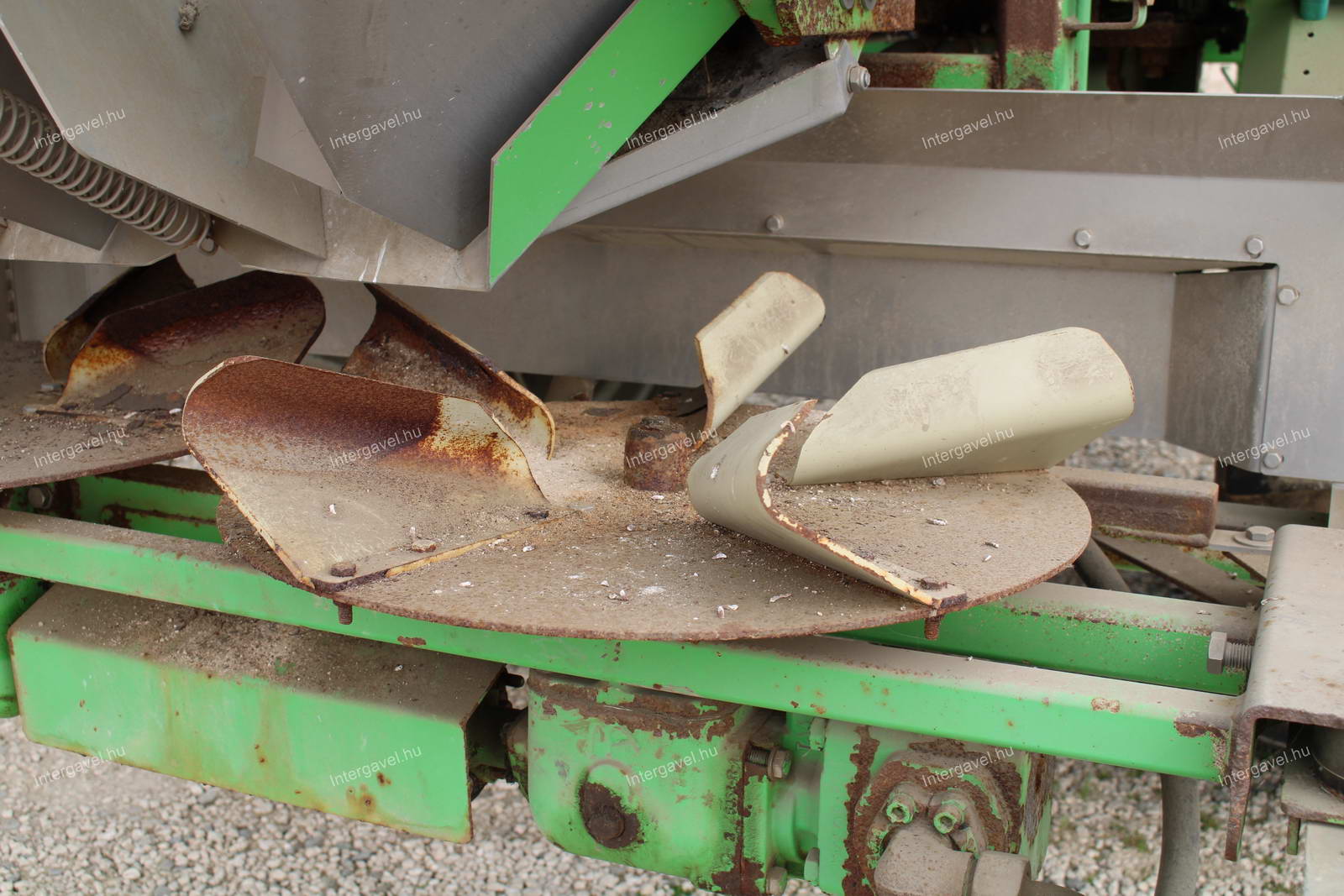 - műtrágyaszóró tetején lévő kardán, szórólapátok teljessége, üzemképessége és összeilleszthetősége a műtrágyaszóróval nem ismert