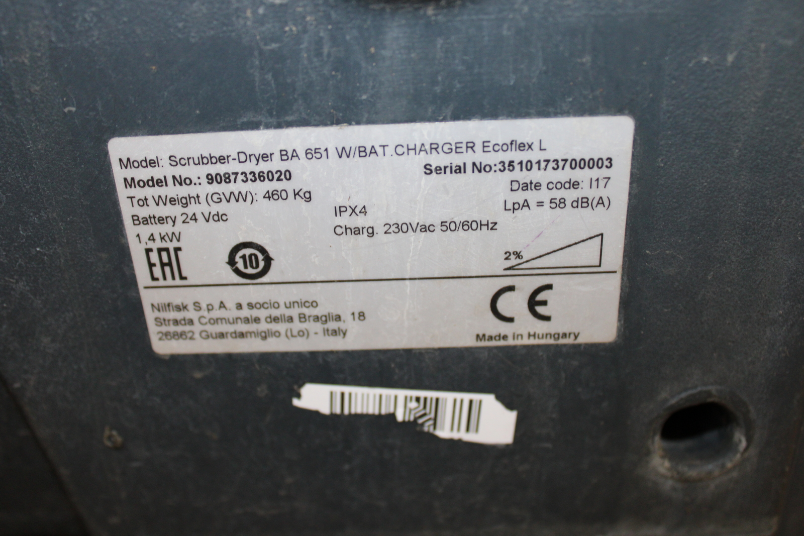 Gyári szám: 3510173700003