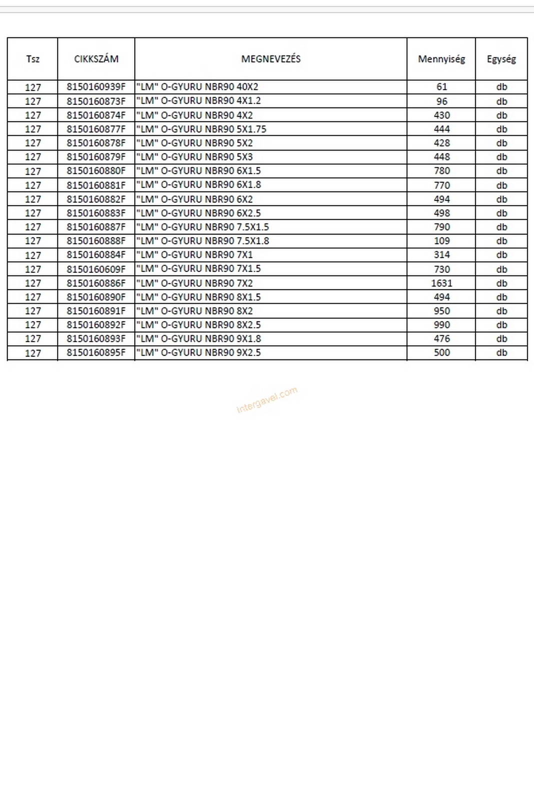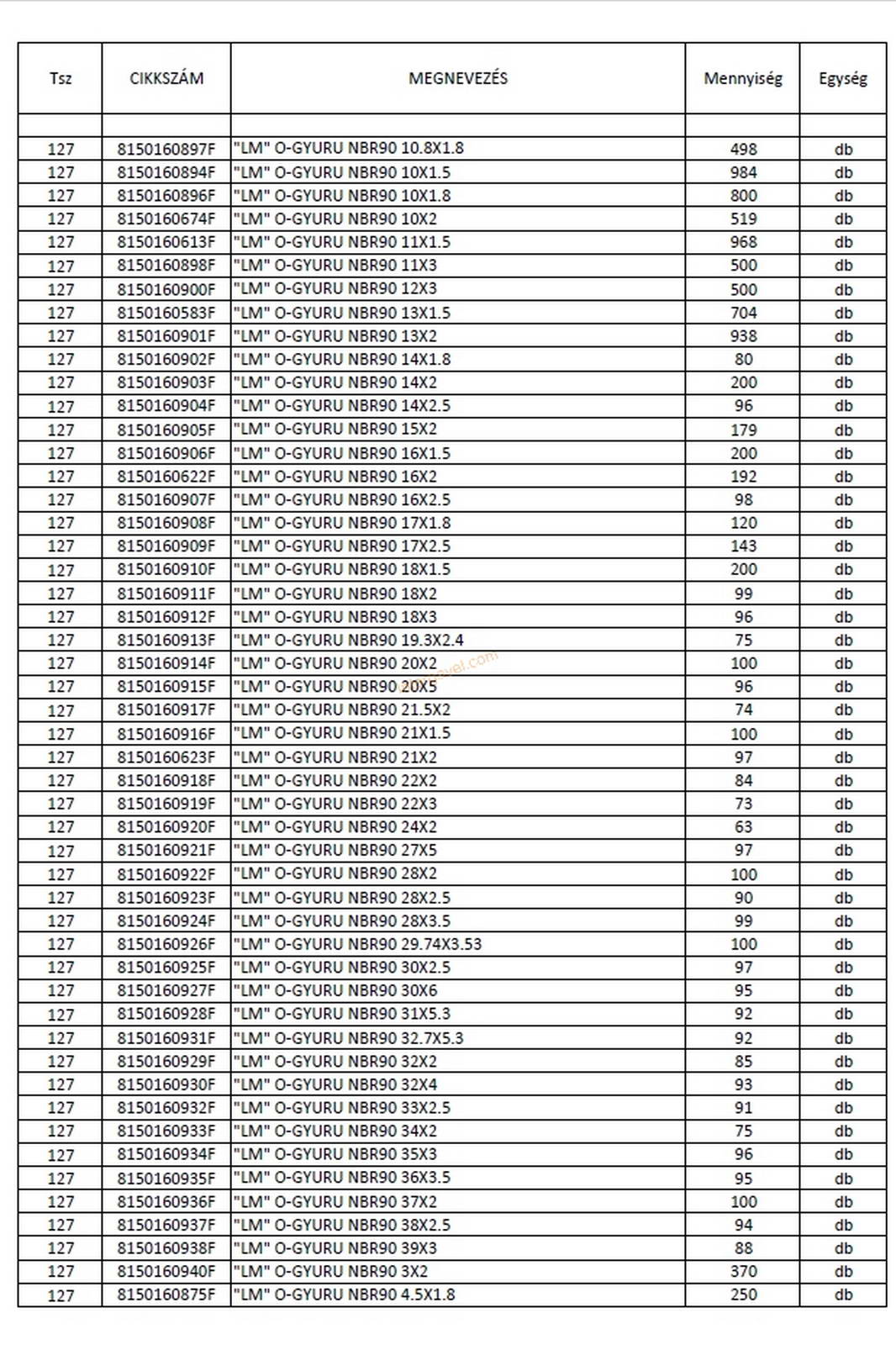 - eladó nyilvántartása szerint a tétel tartalmának felsorolása a 02-03 képen látható, ami kb. 95 %-os pontosságú