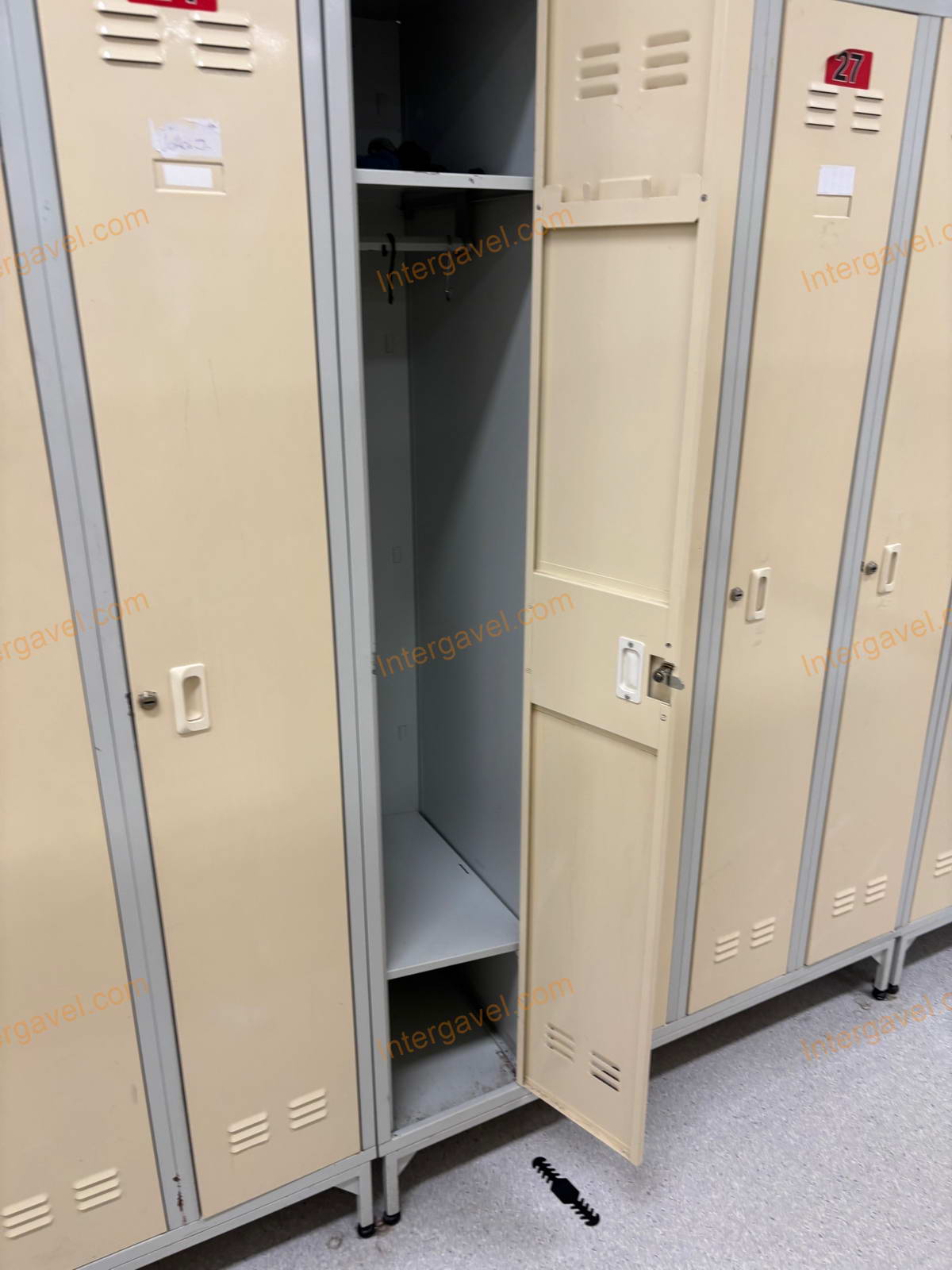 - sérülések, deformálódások is láthatóak és utólagos (nem gyári) furatok is lehetnek (pl. ajtó és váz) az öltözőszekrényeken