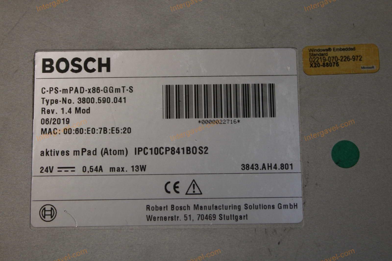 Típus: C-PS-MPAD-X86-GGmT-S; 3800.590.041