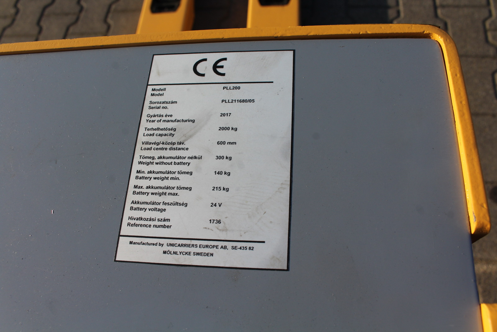 Névleges teherbírás: 2000 kg
