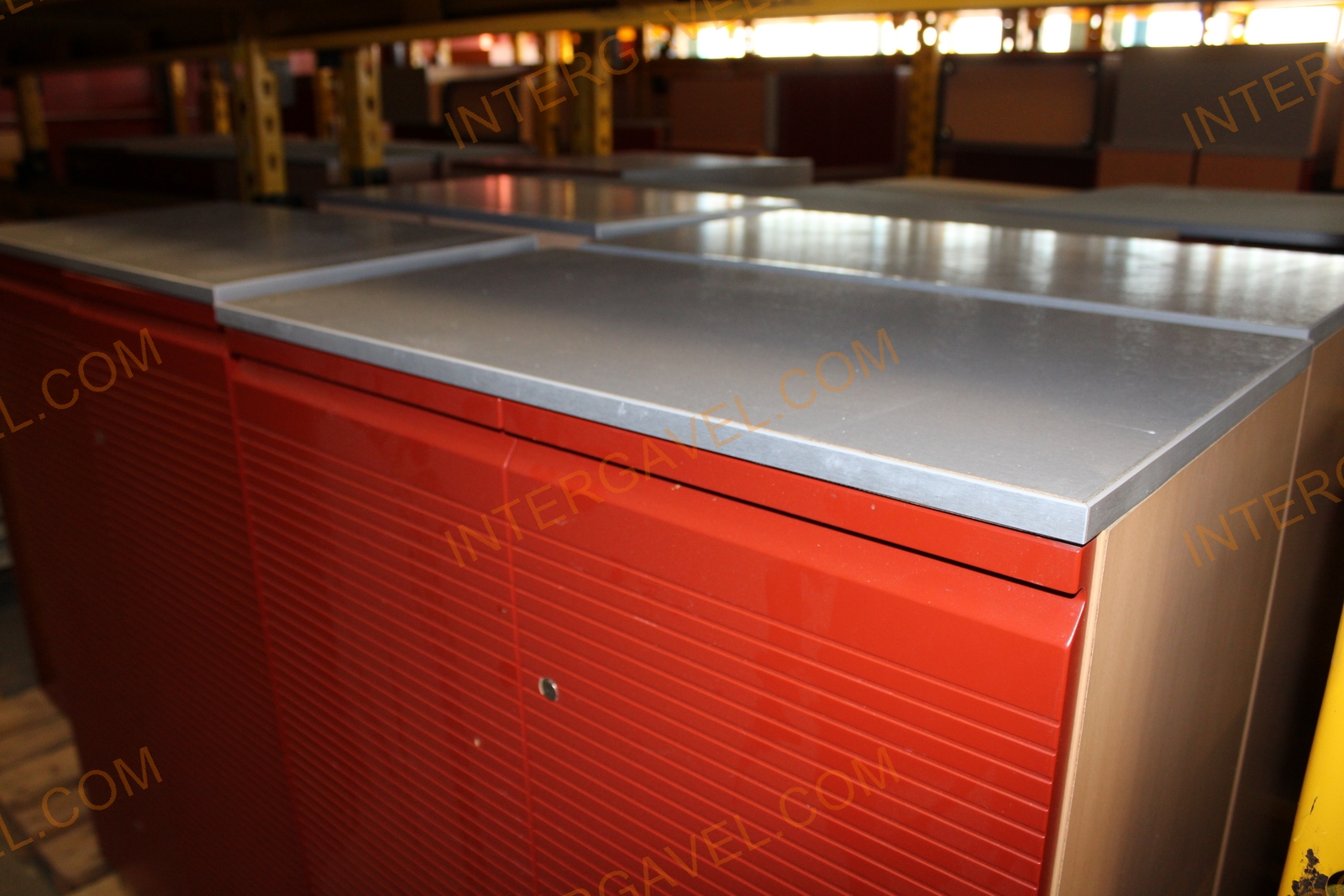 25 - Polcos szekrény (piros ajtó/szürke tető rész-3 aktasoros)