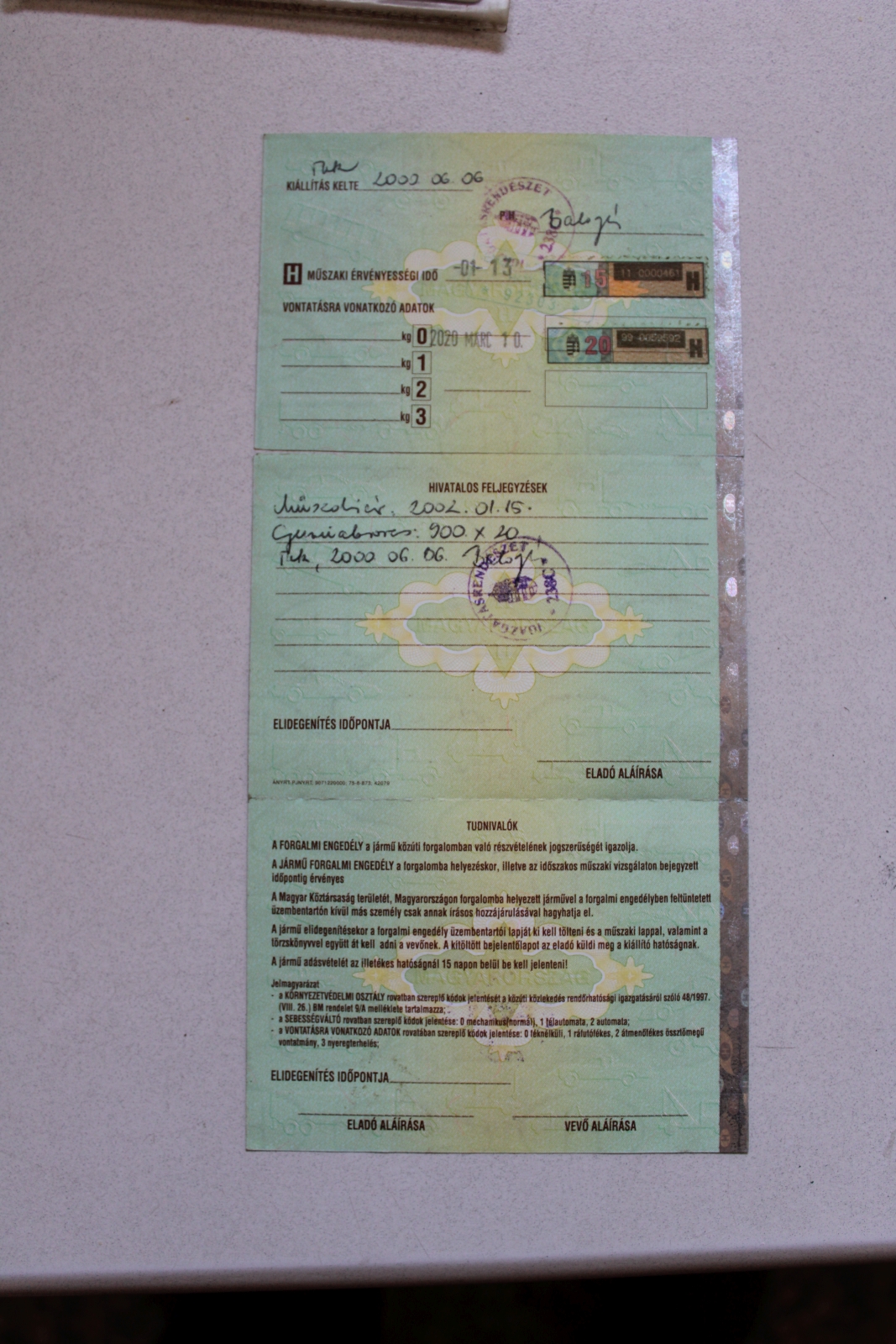 Műszaki érvényessége: 2002.01.15.