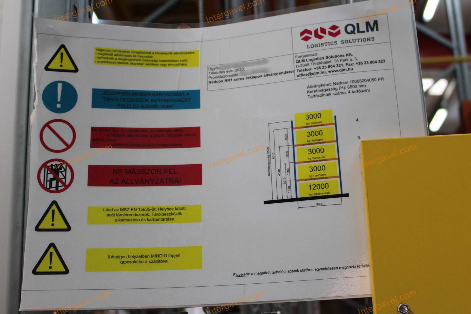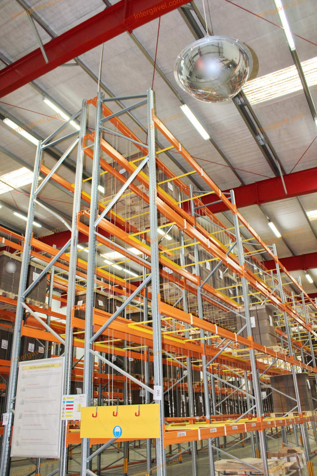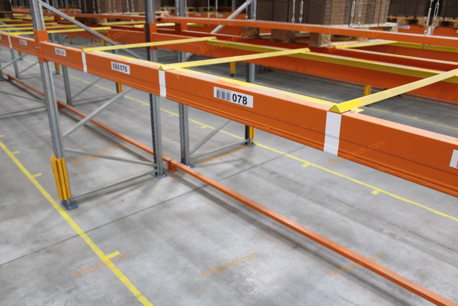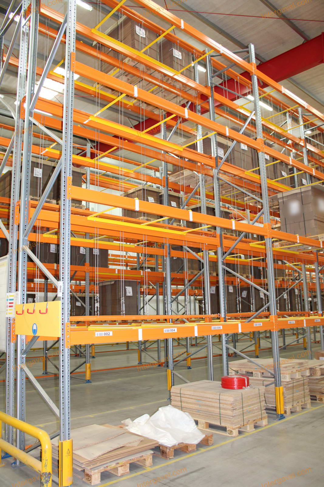 - paletta megvezető - tartószint közepén lévő, gerendákhoz rögzített sárga színű szerkezet