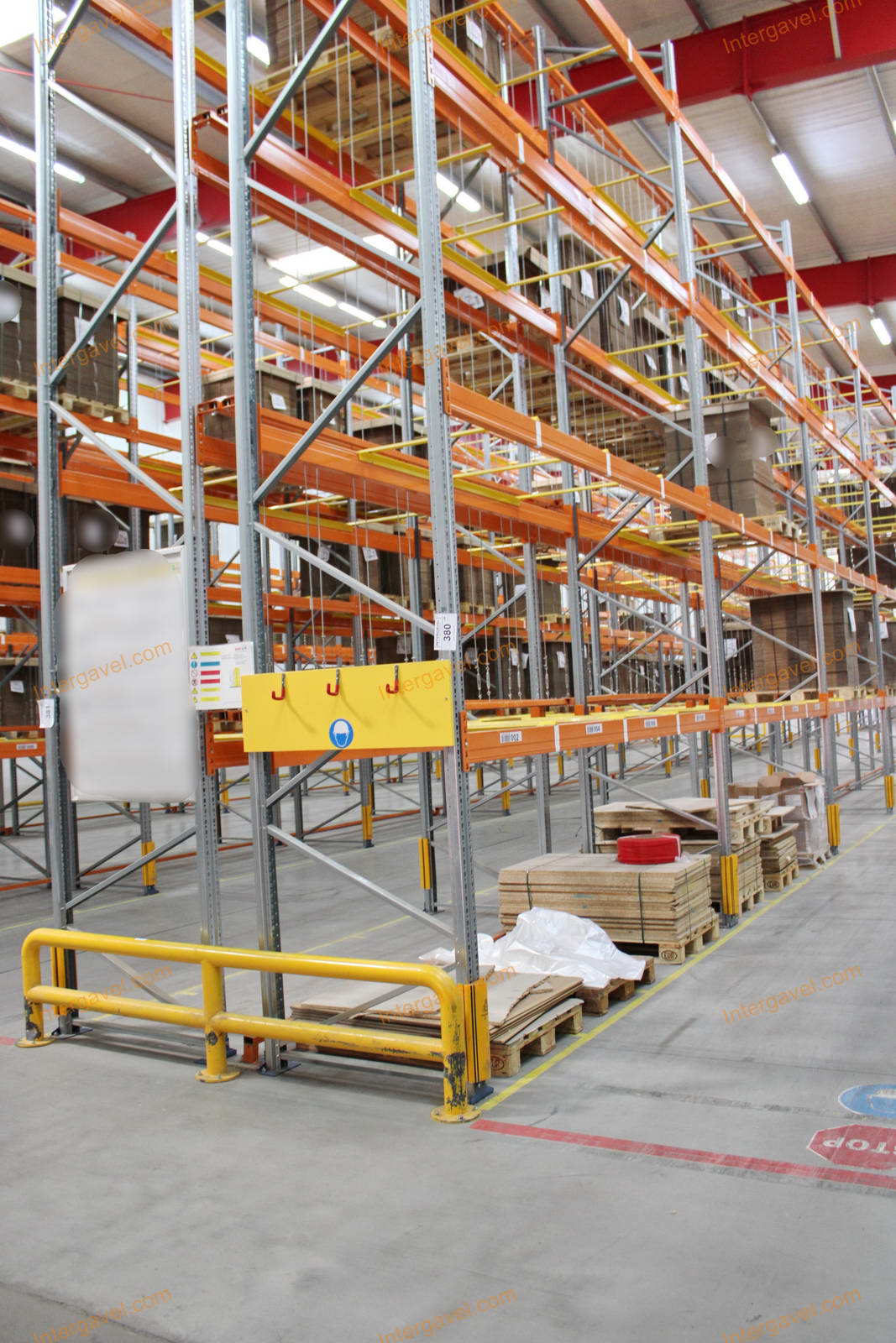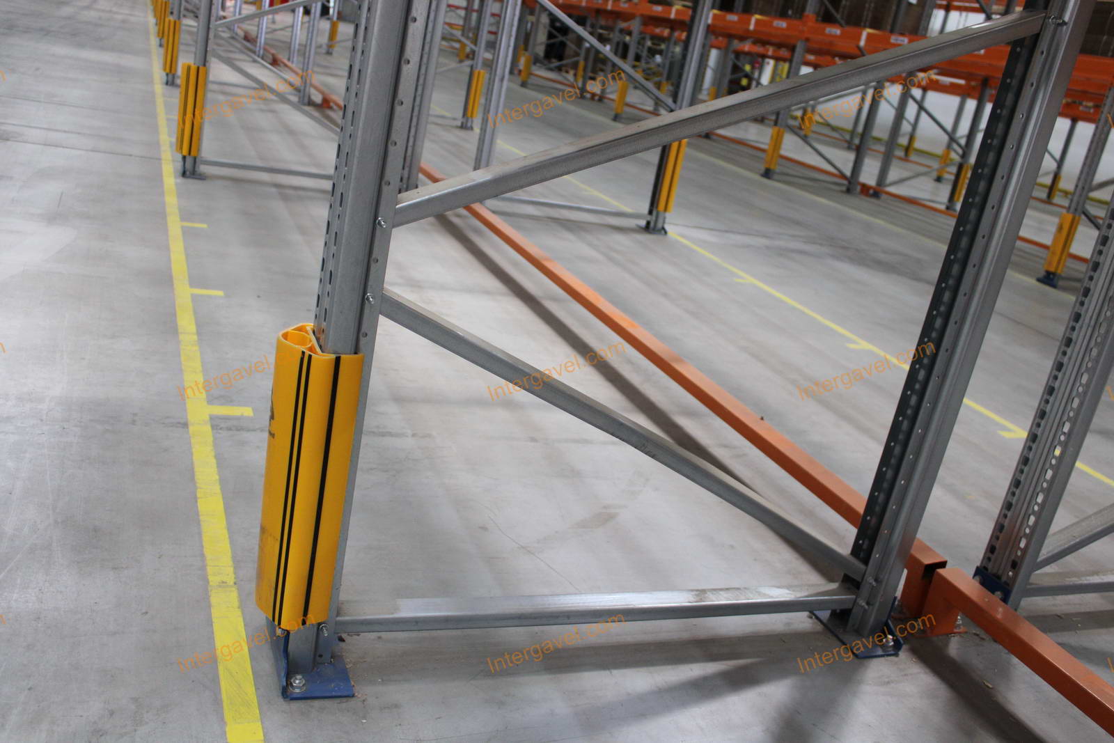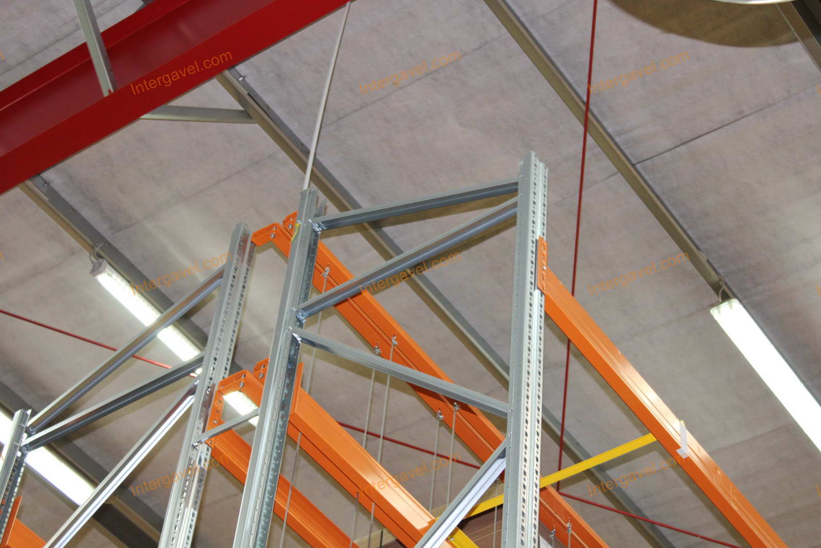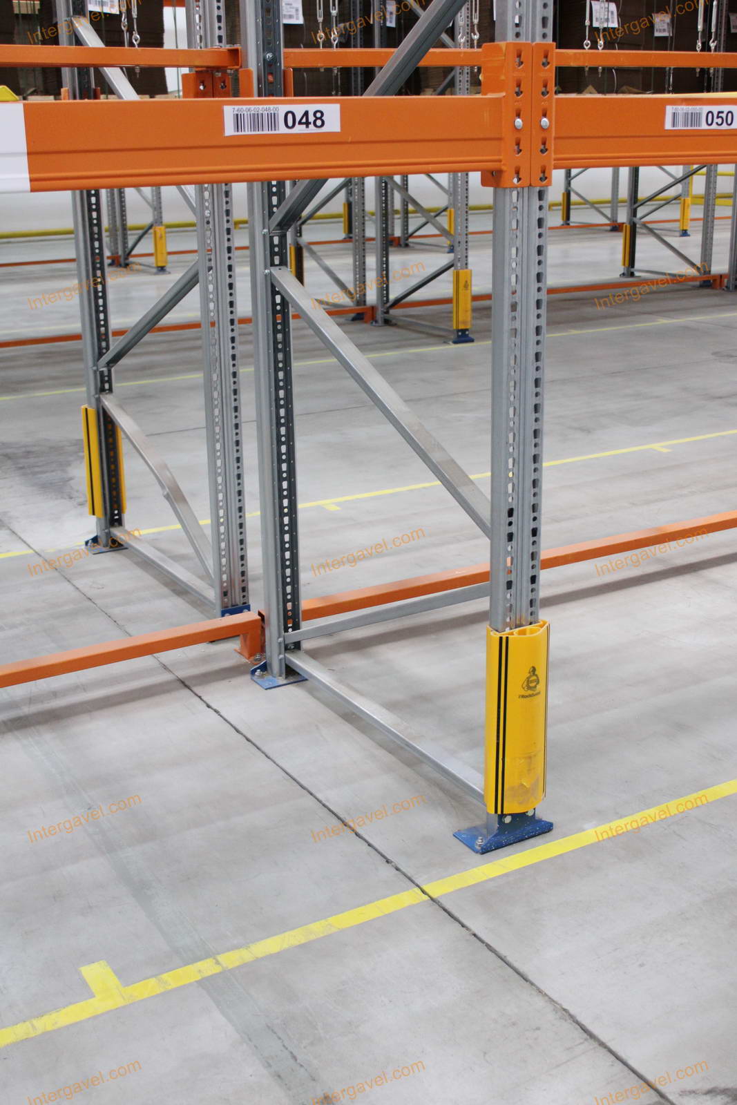- paletta megvezető - tartószint közepén lévő, gerendákhoz rögzített sárga színű szerkezet
