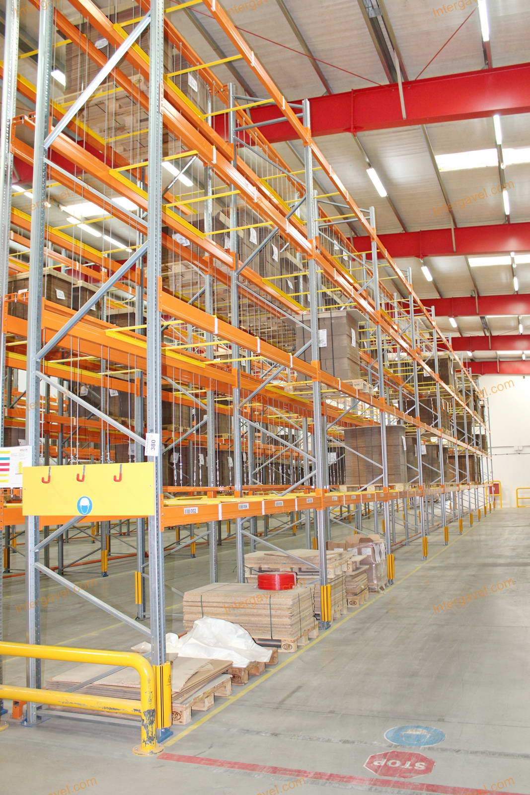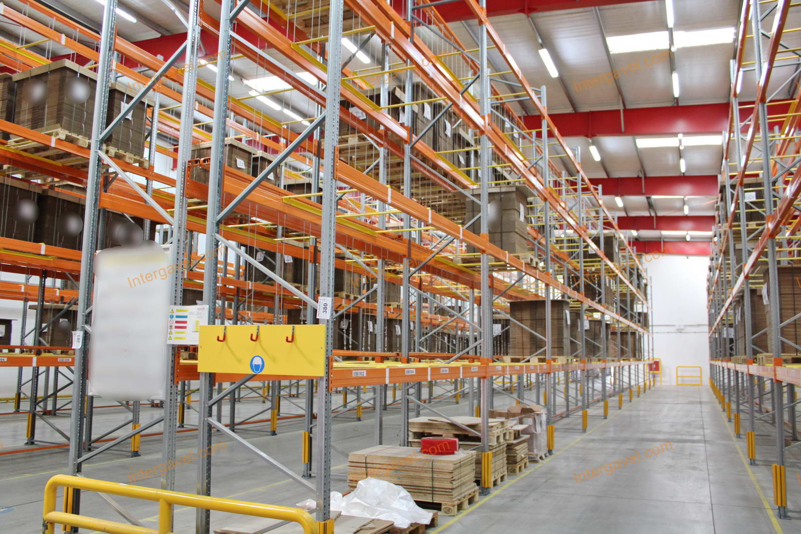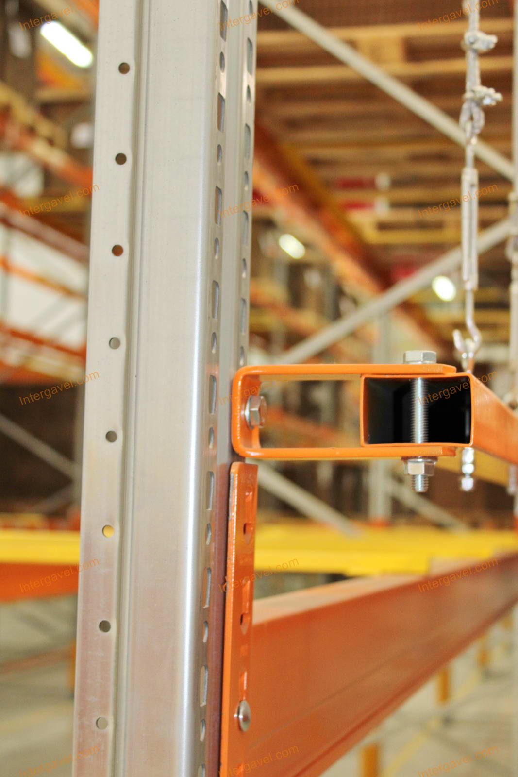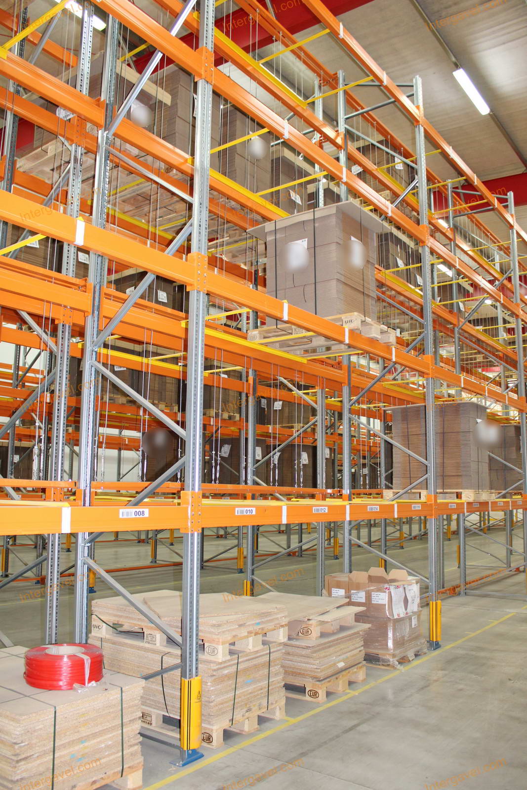 - paletta megvezető - tartószint közepén lévő, gerendákhoz rögzített sárga színű szerkezet