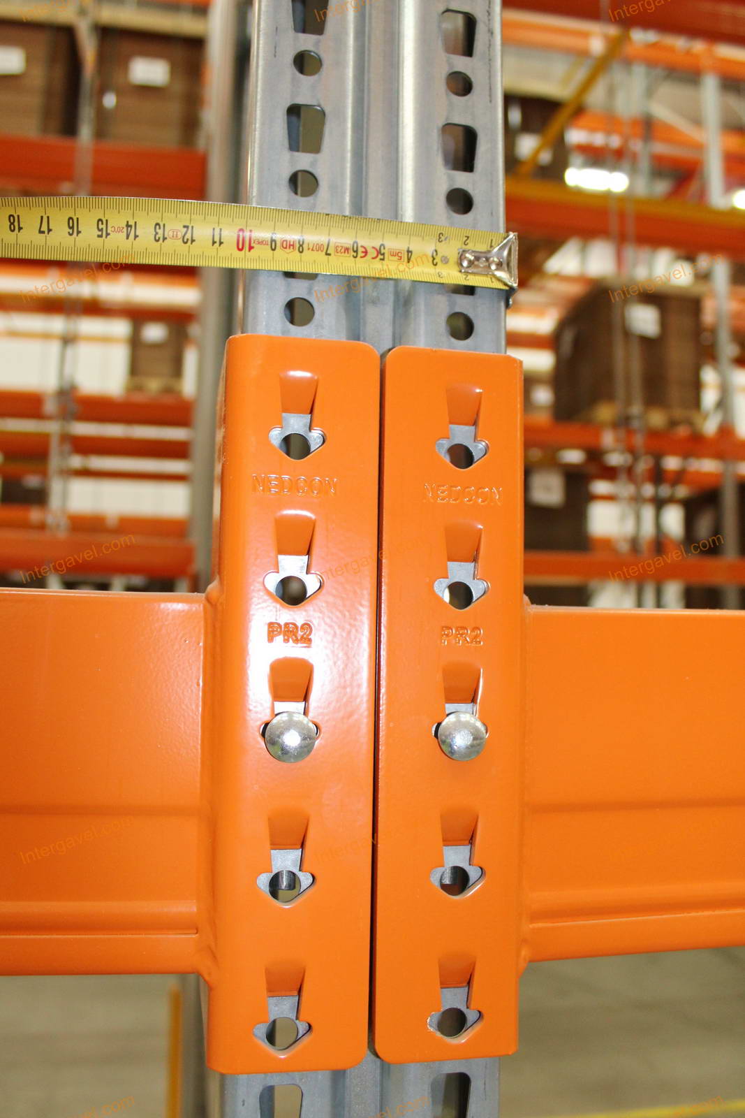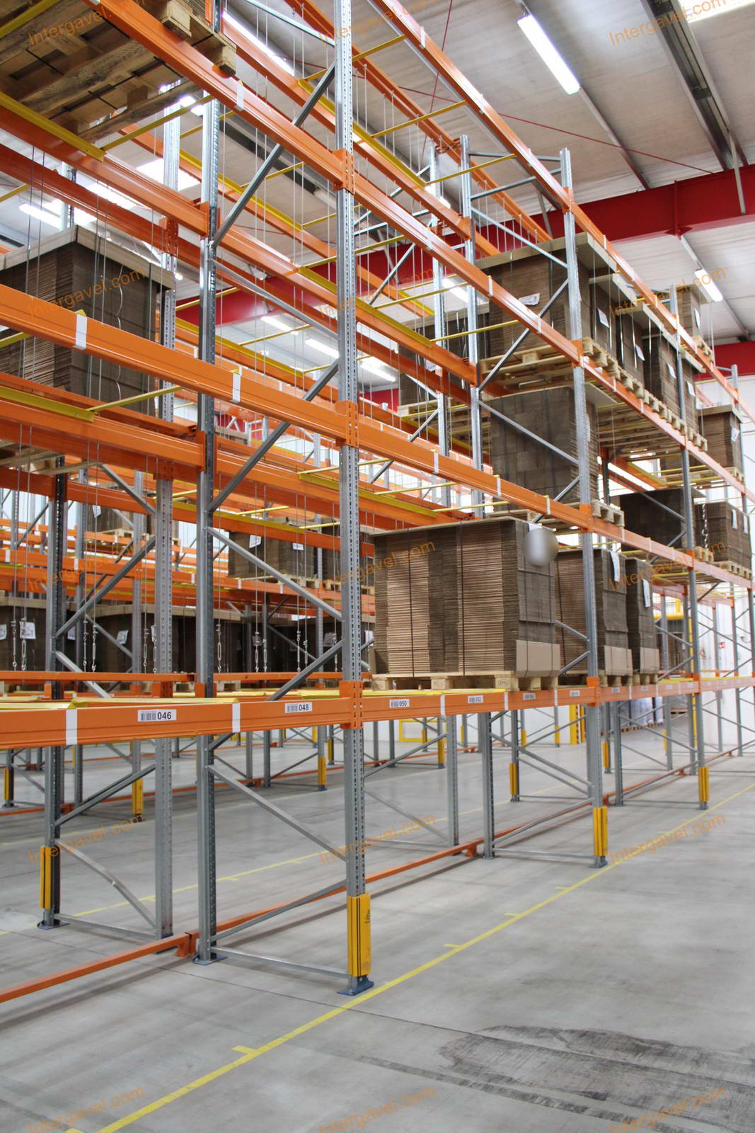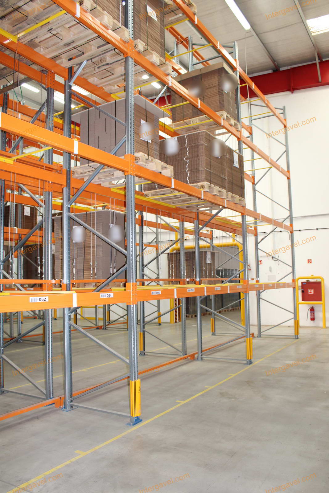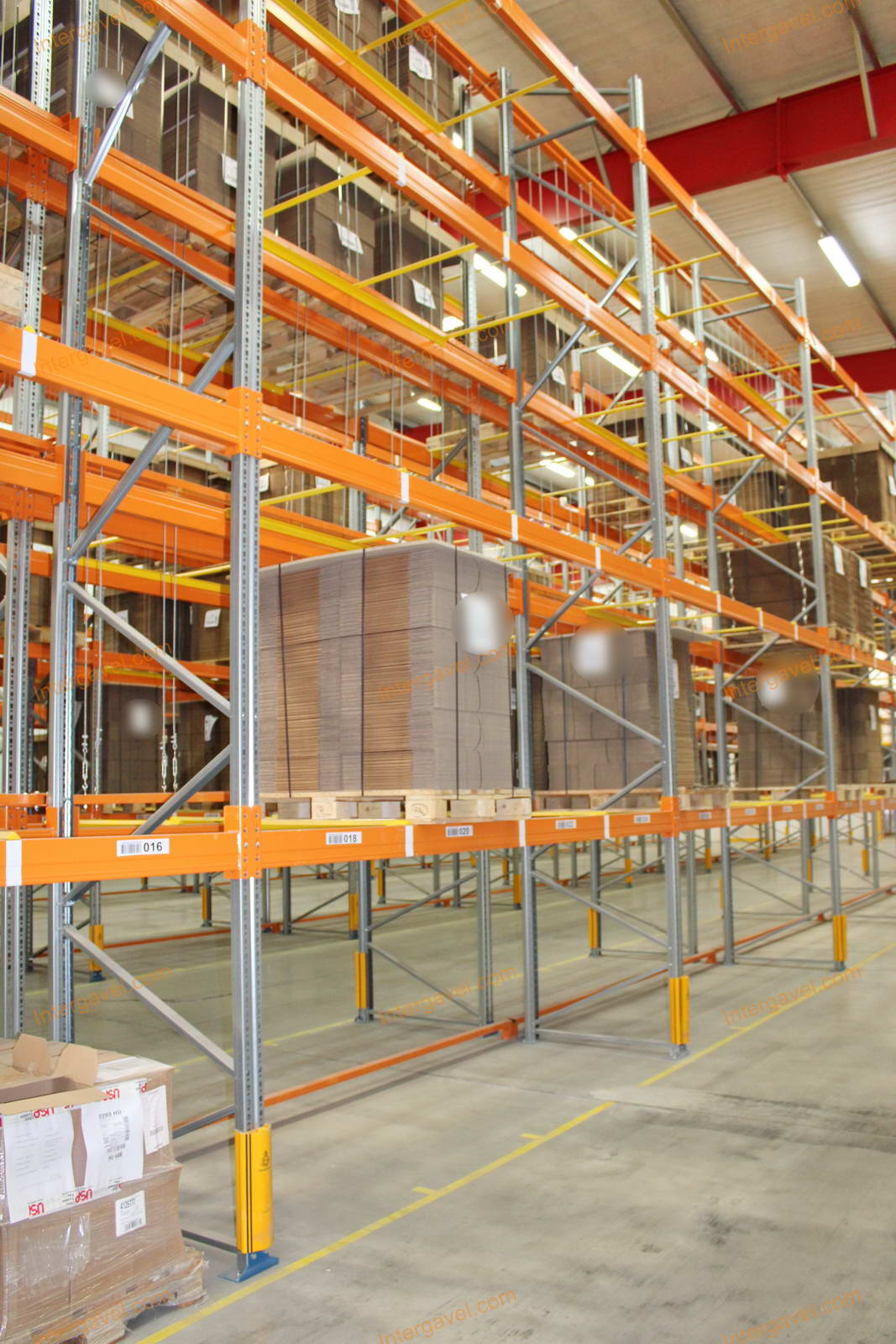 - paletta megvezető - tartószint közepén lévő, gerendákhoz rögzített sárga színű szerkezet