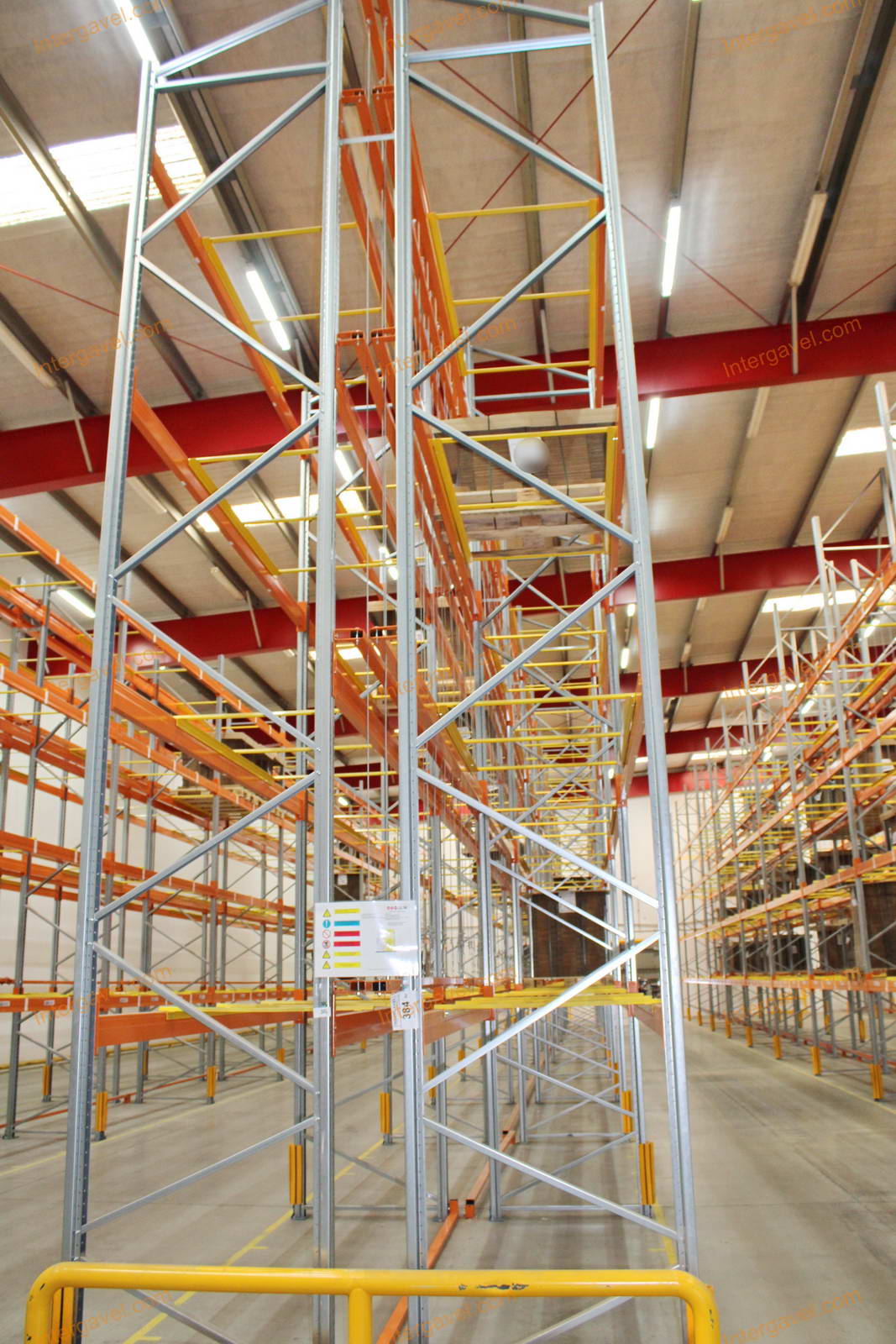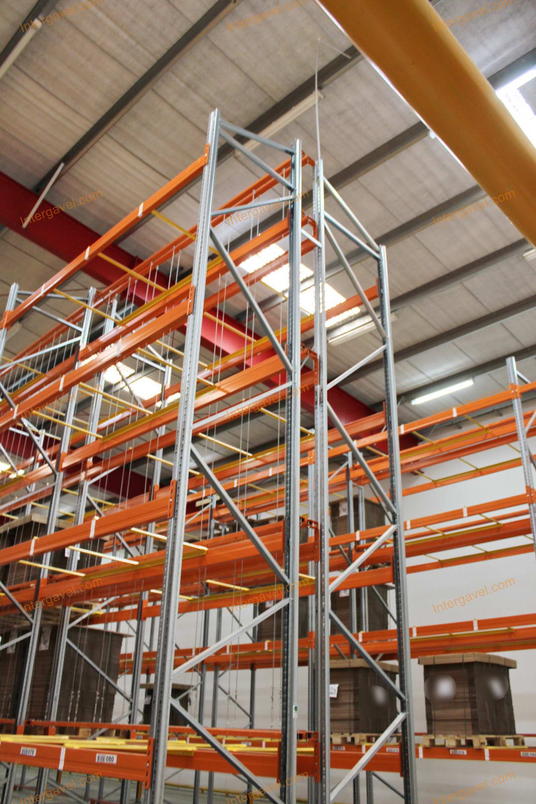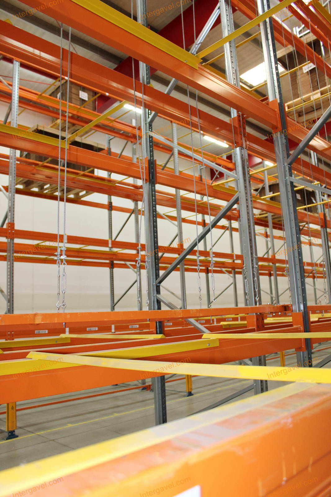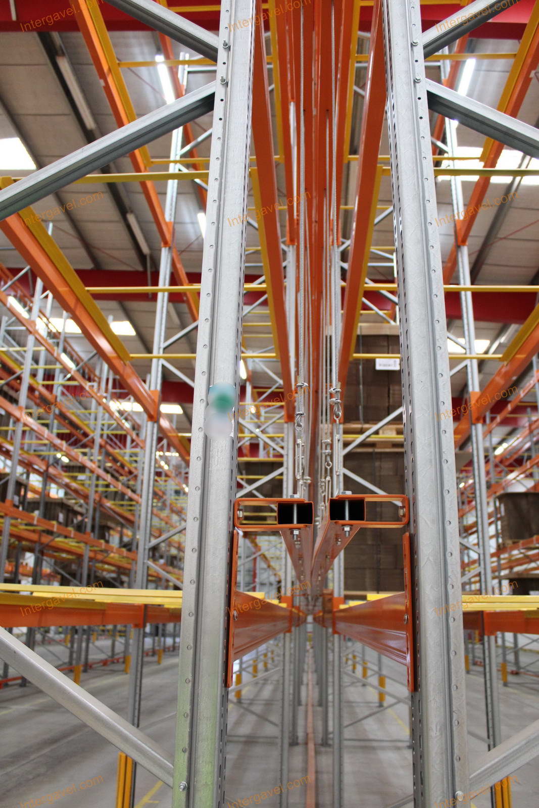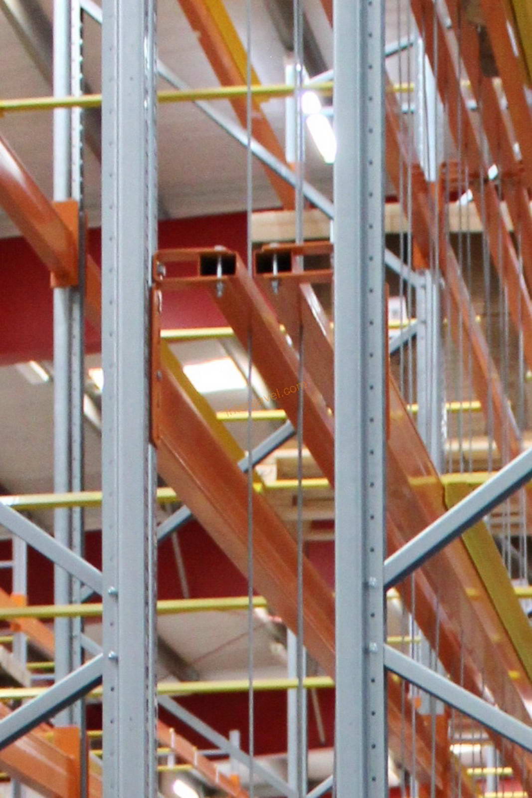 - paletta megvezető - tartószint közepén lévő, gerendákhoz rögzített sárga színű szerkezet