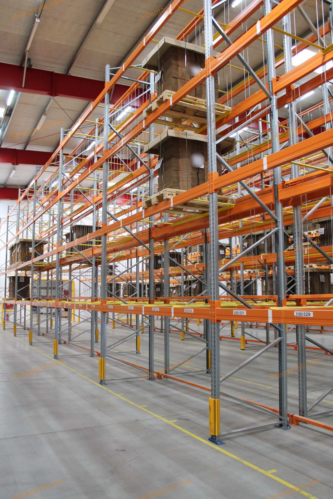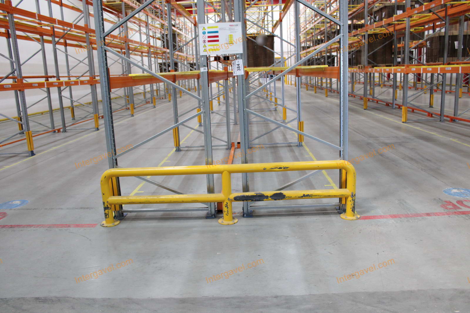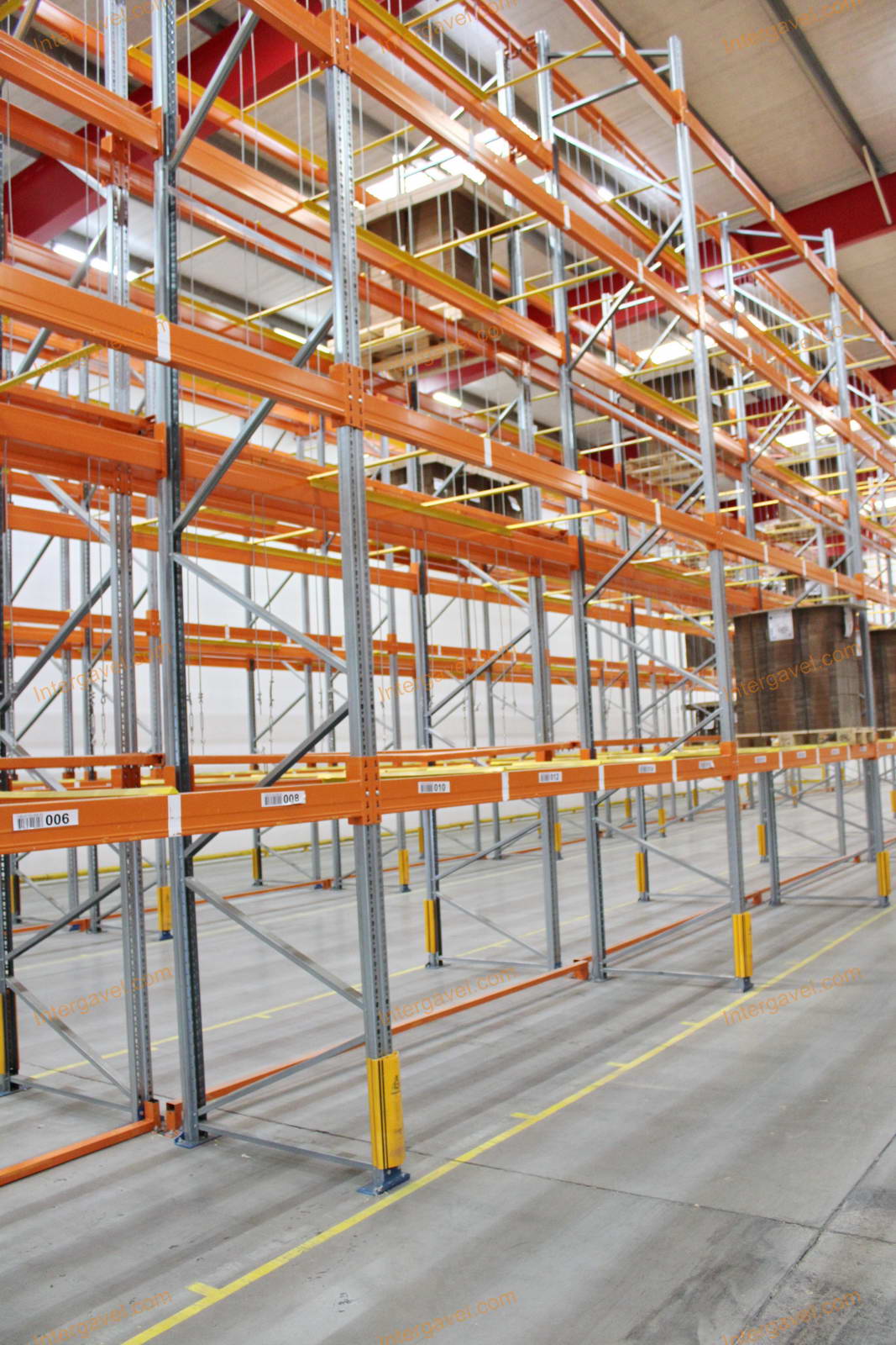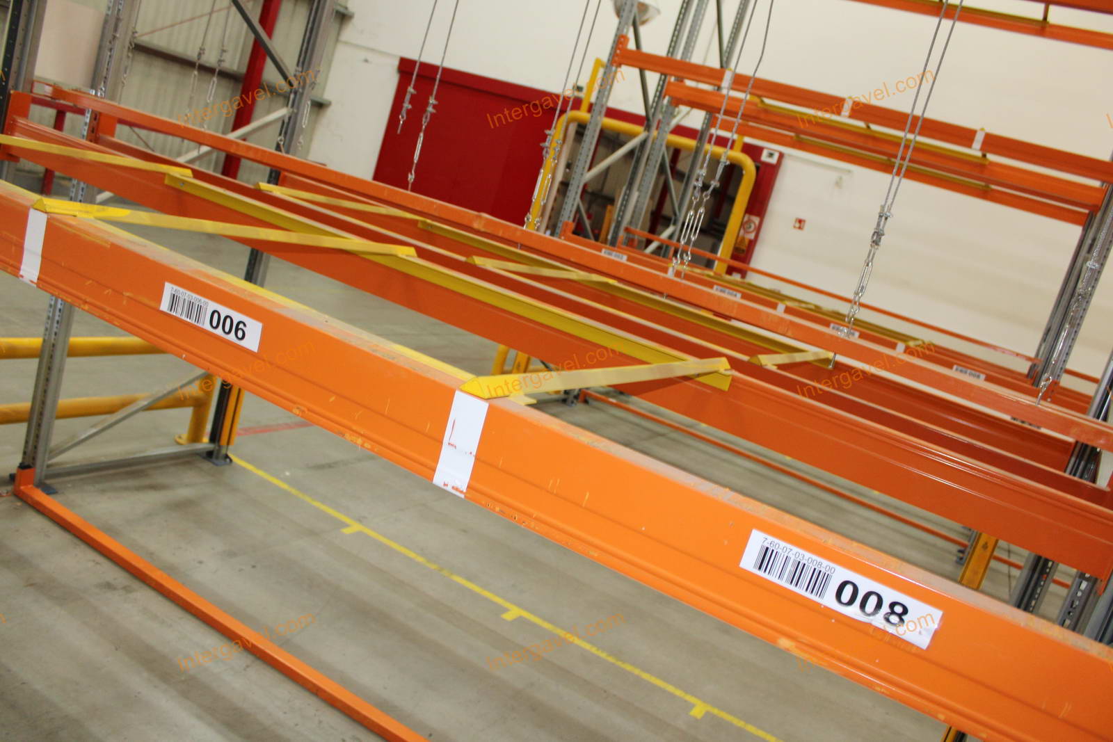 - paletta megvezető - tartószint közepén lévő, gerendákhoz rögzített sárga színű szerkezet