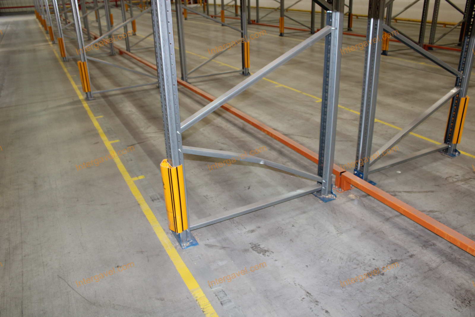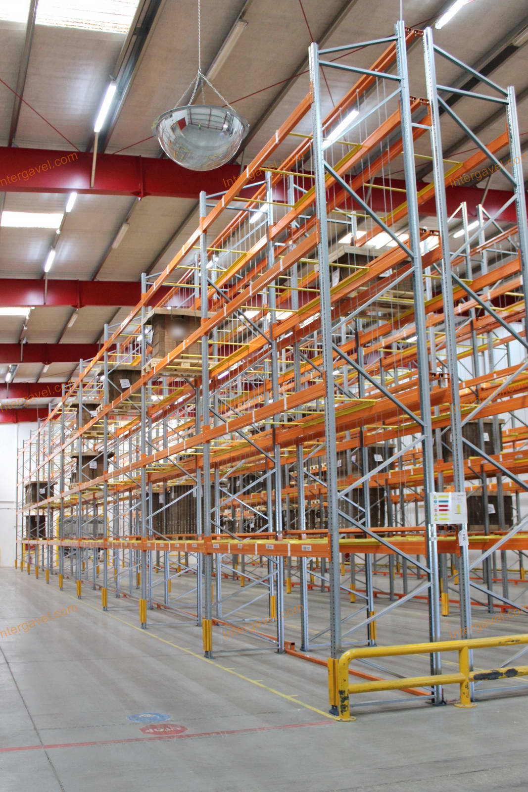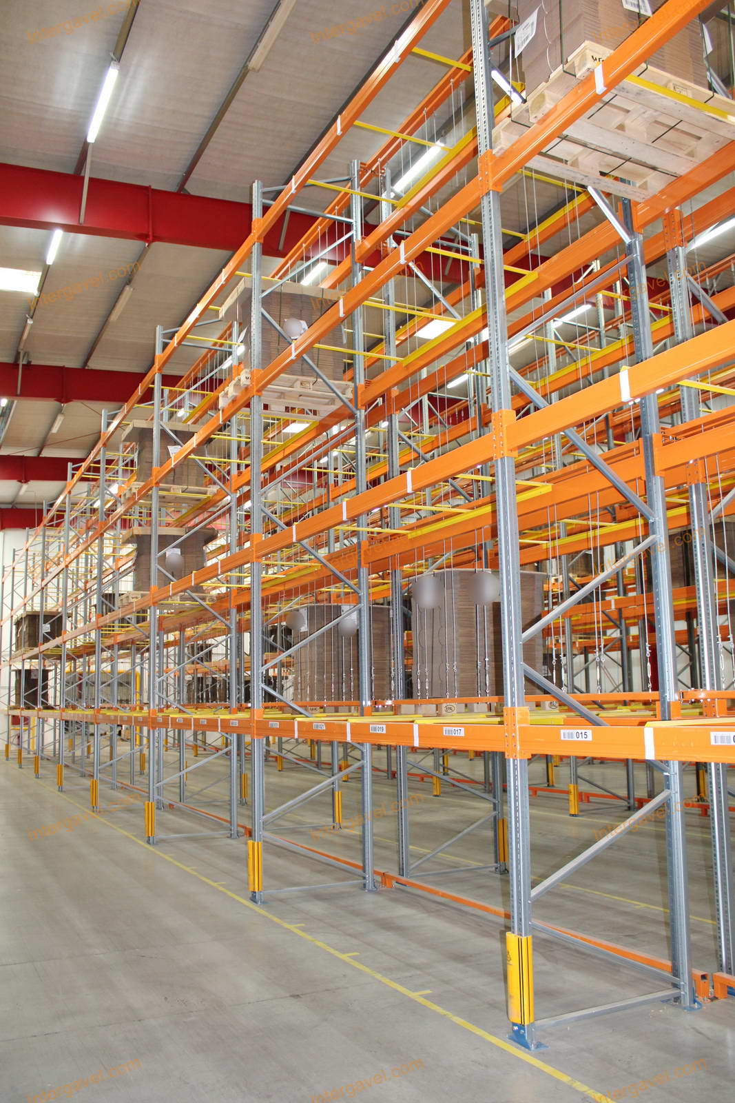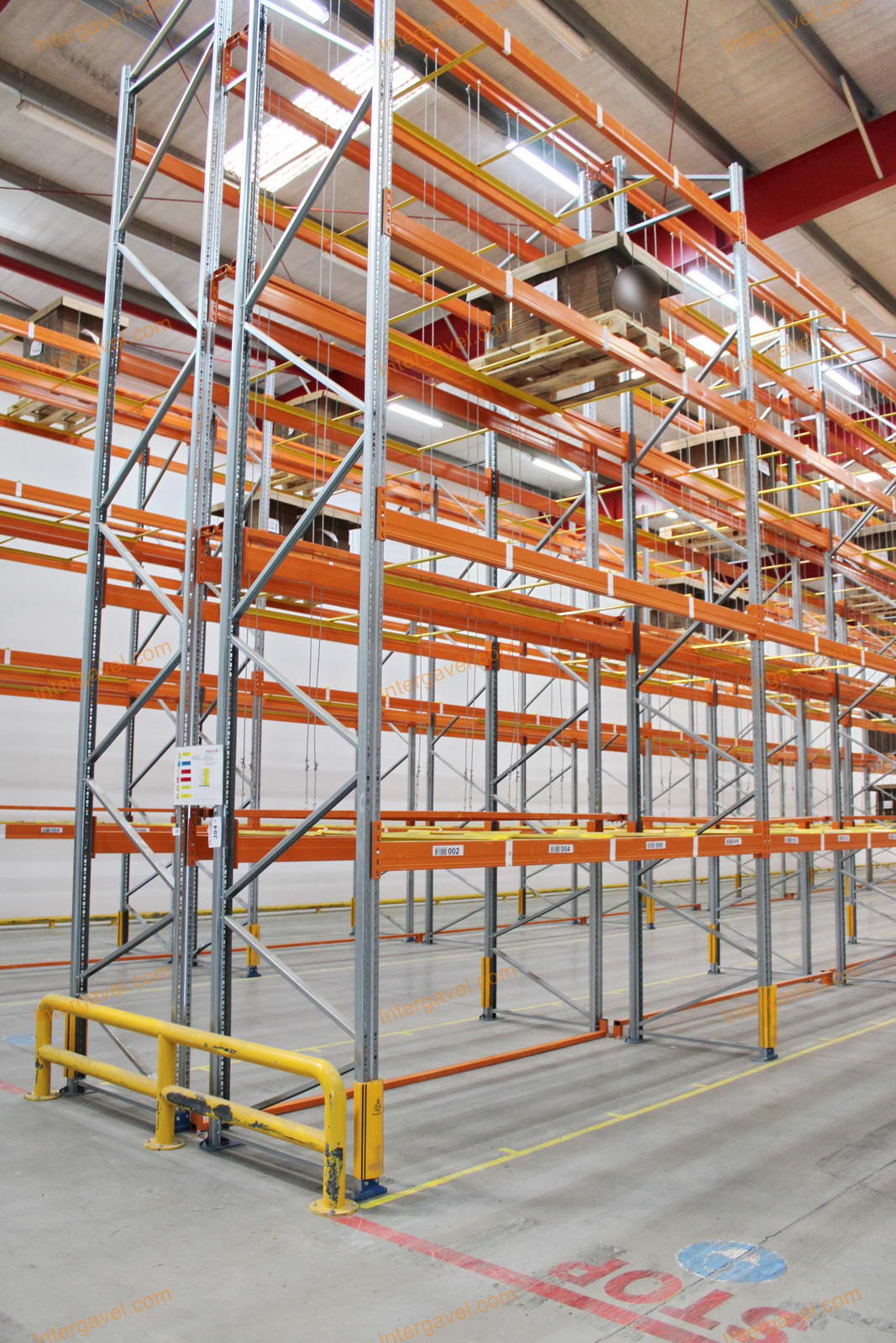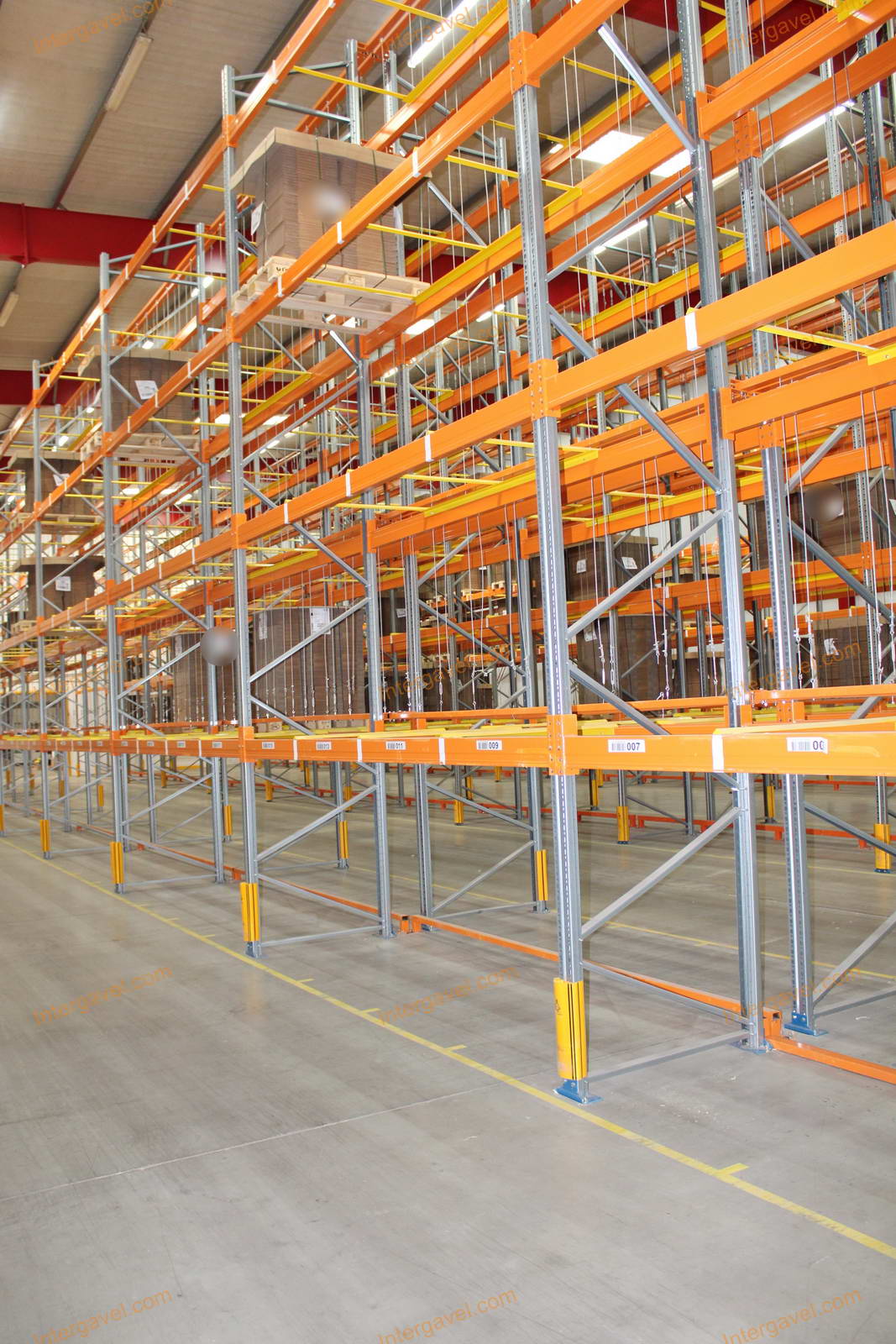 - paletta megvezető - tartószint közepén lévő, gerendákhoz rögzített sárga színű szerkezet
