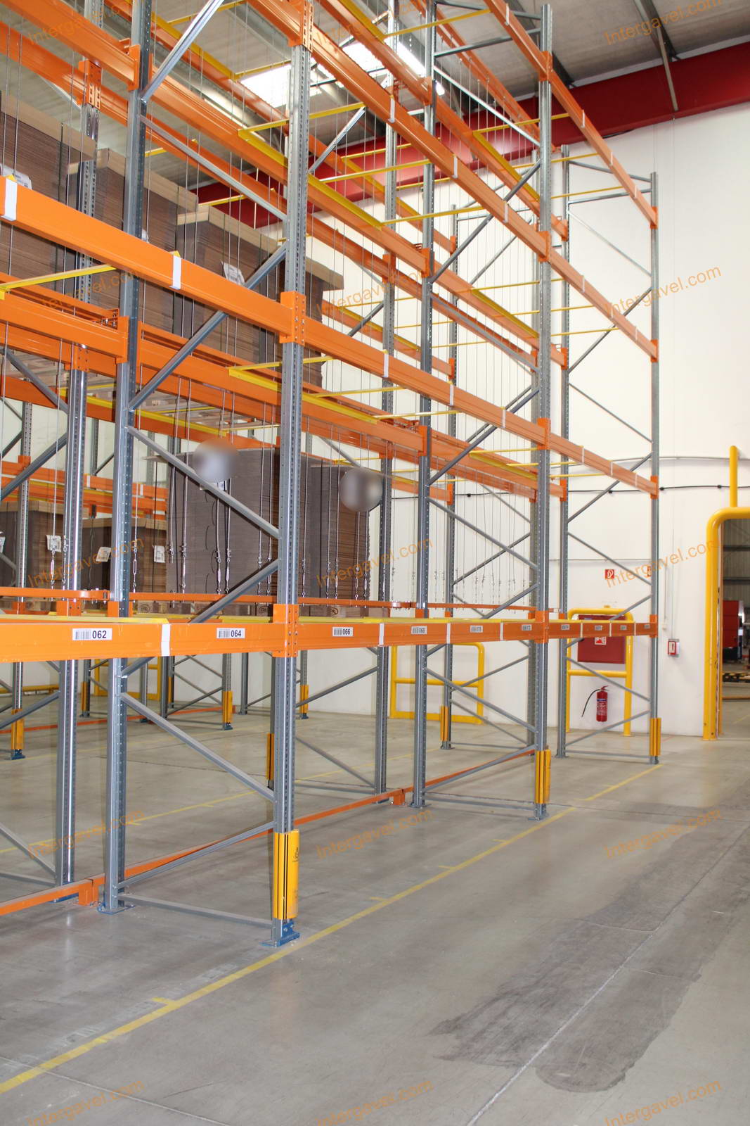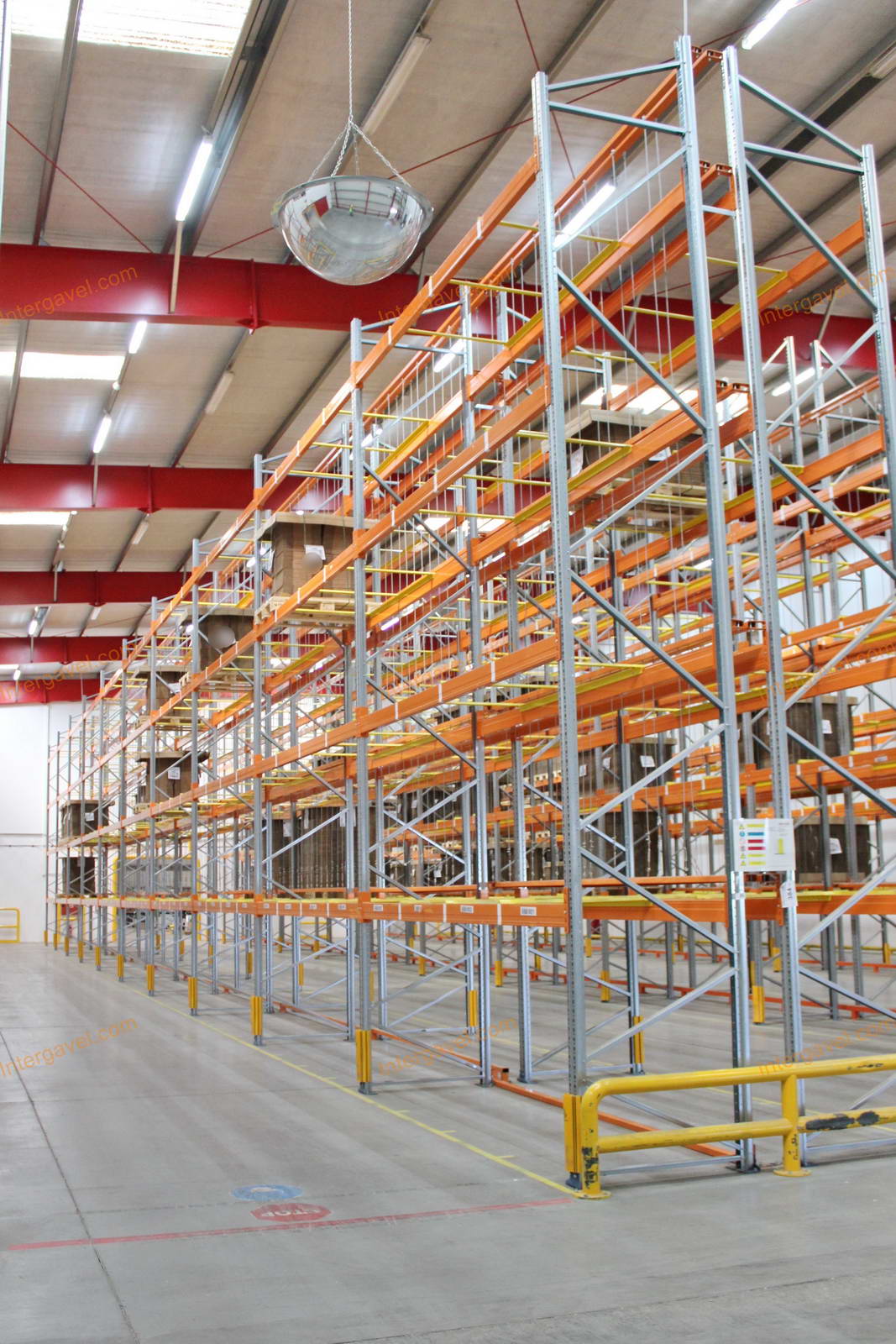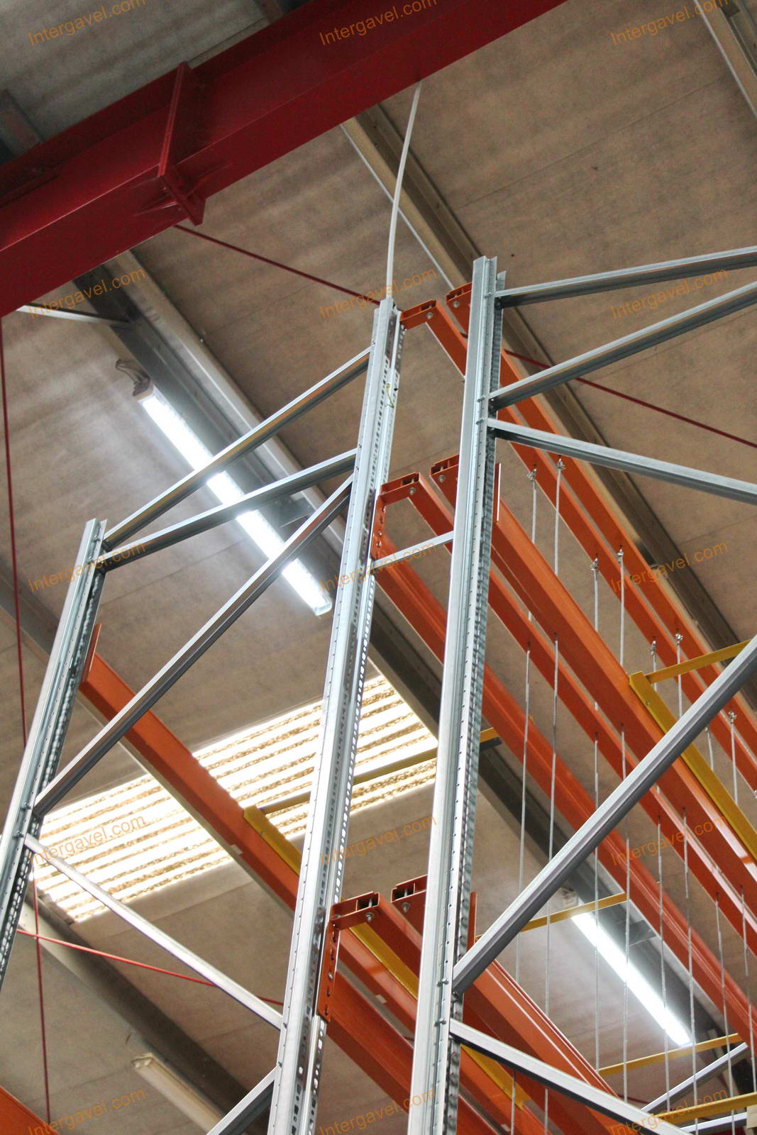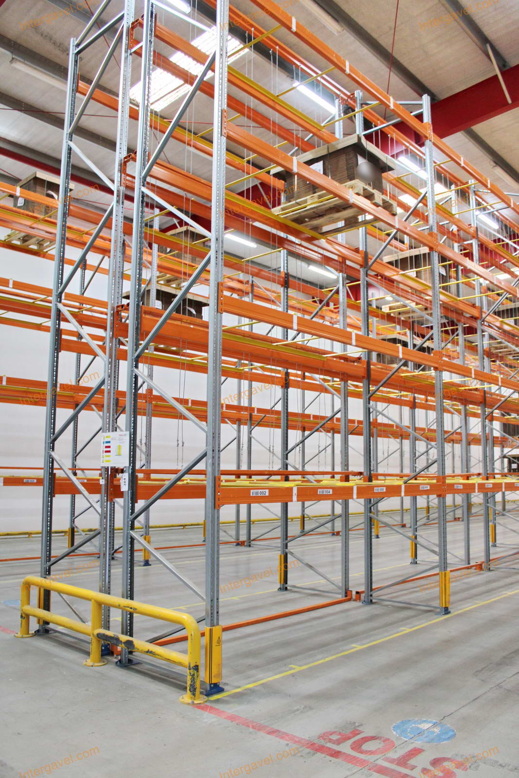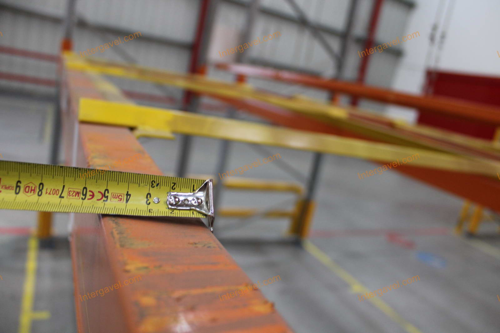 - paletta megvezető - tartószint közepén lévő, gerendákhoz rögzített sárga színű szerkezet