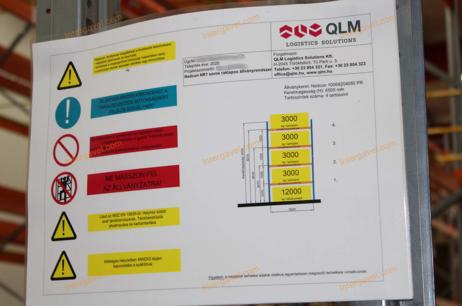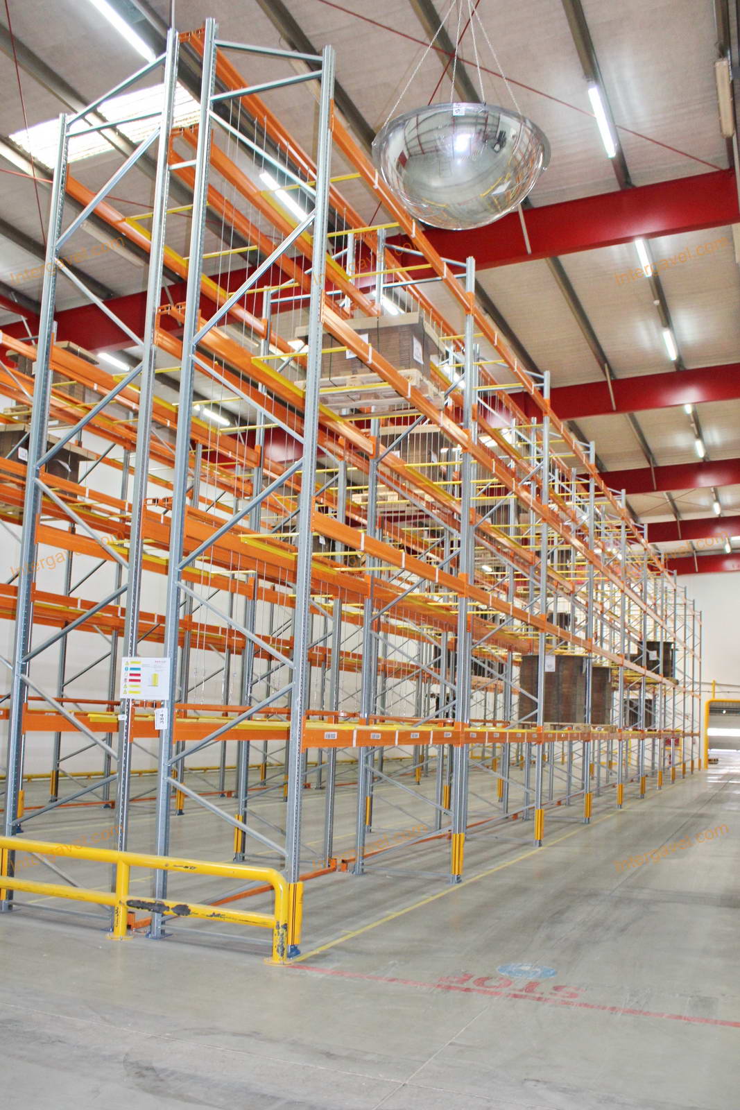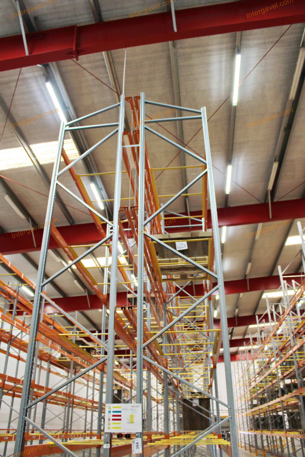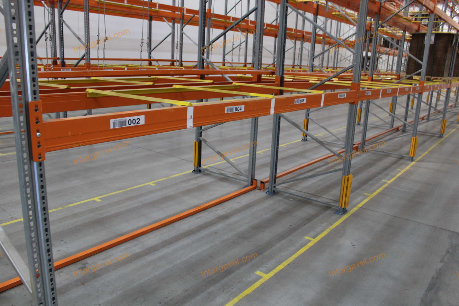 - paletta megvezető - tartószint közepén lévő, gerendákhoz rögzített sárga színű szerkezet