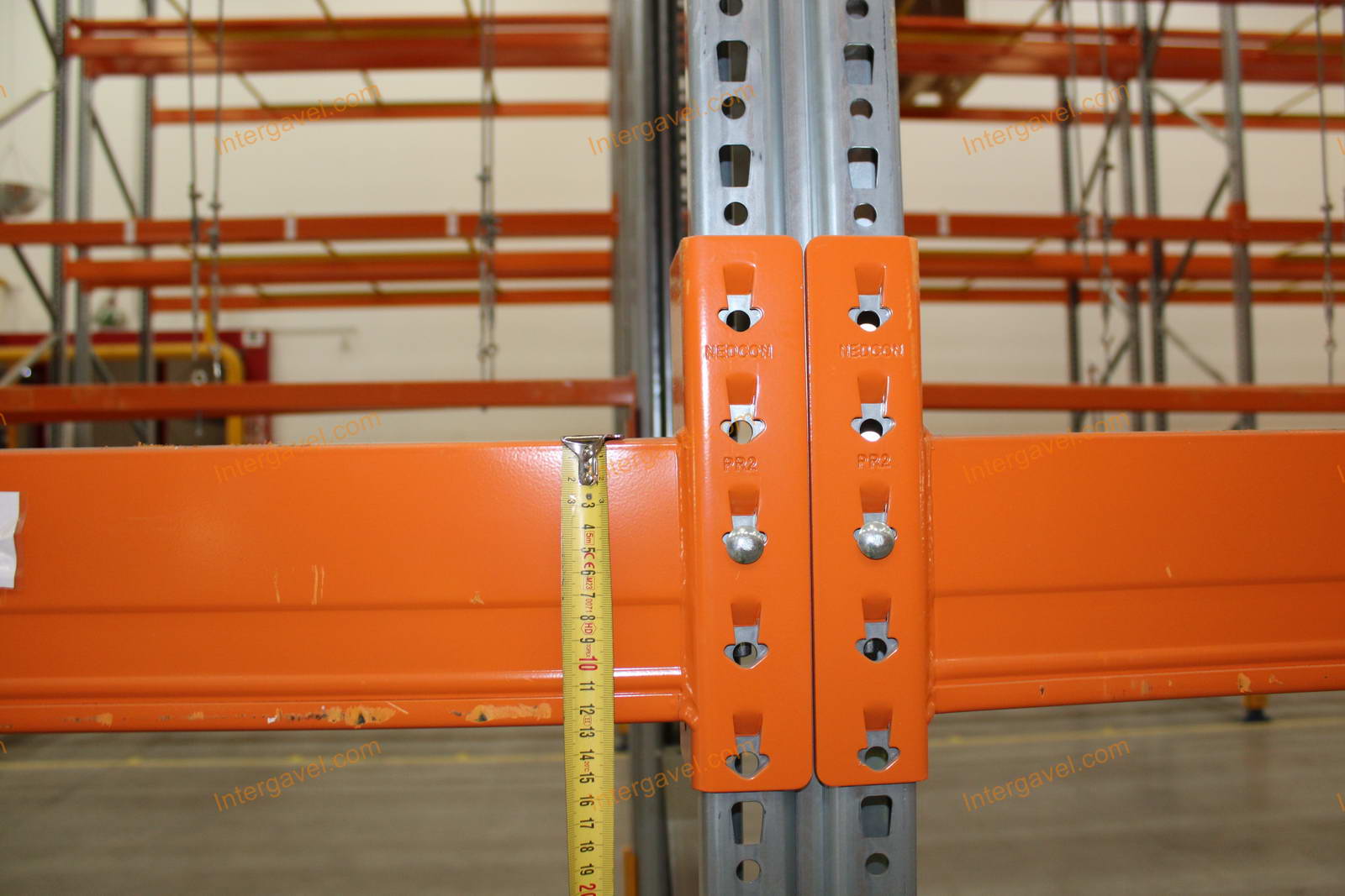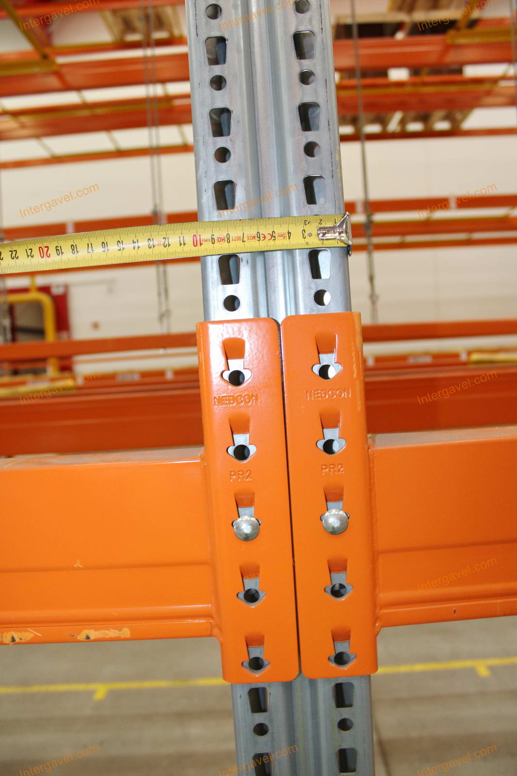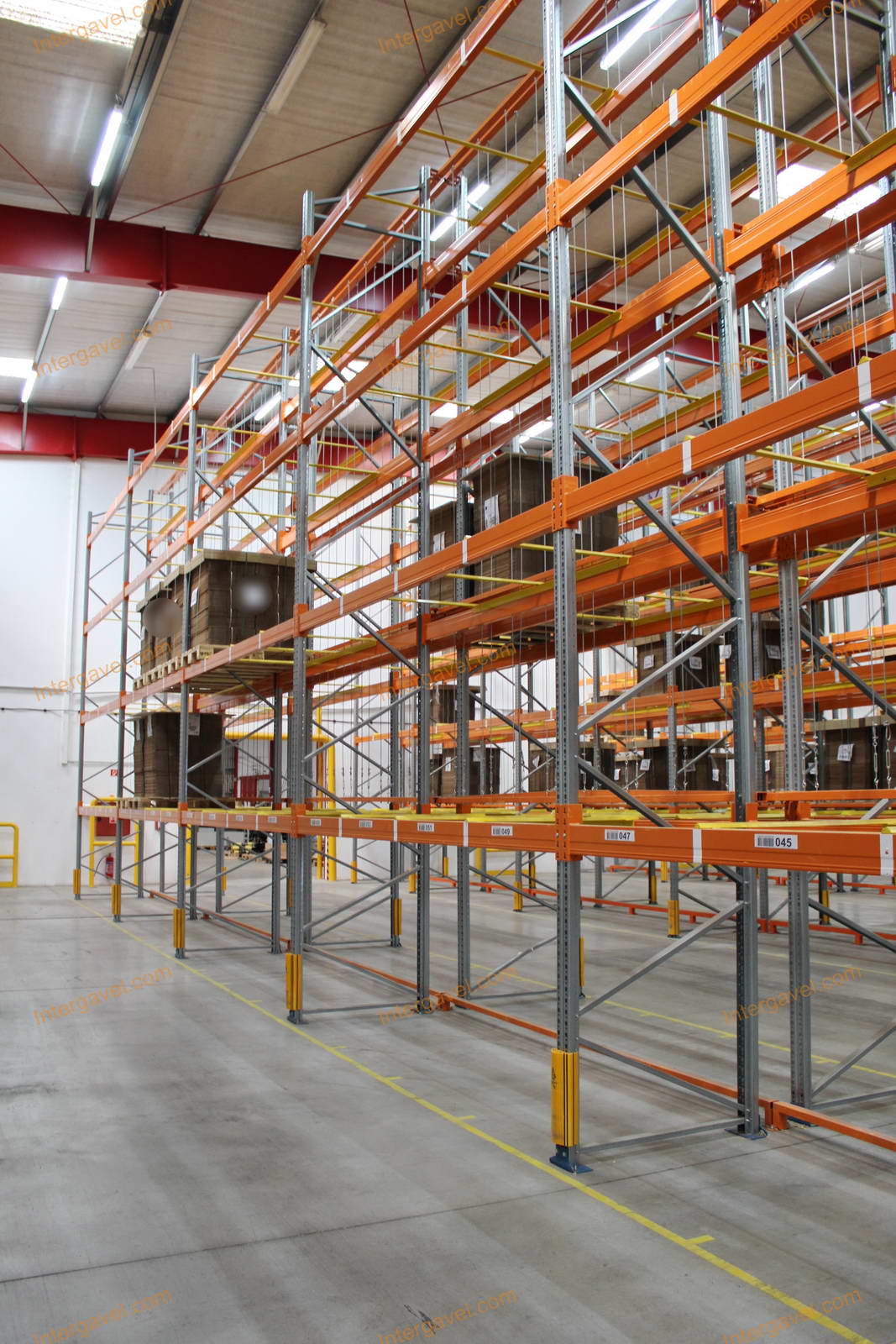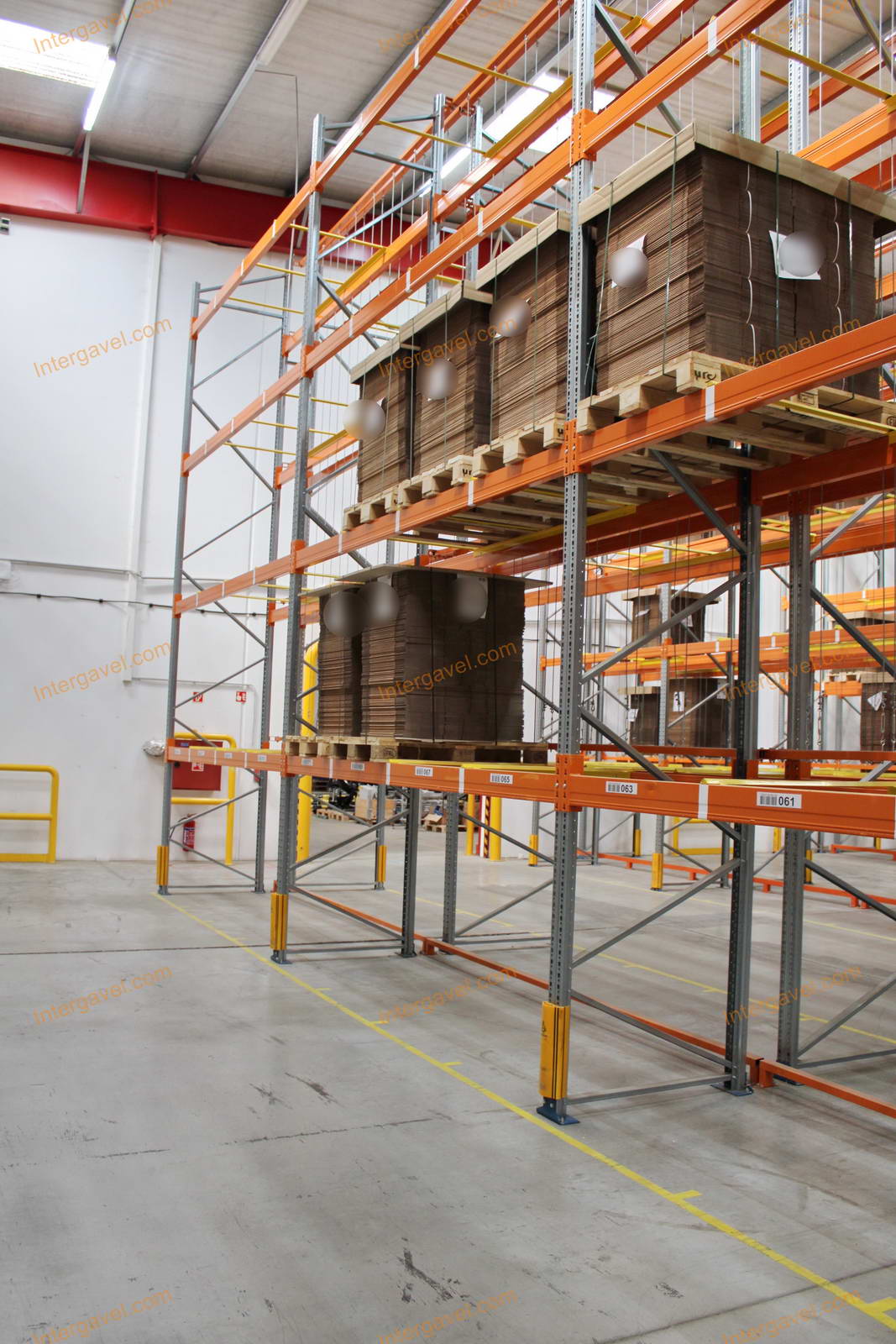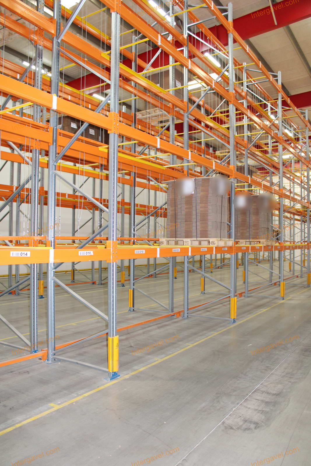 - paletta megvezető - tartószint közepén lévő, gerendákhoz rögzített sárga színű szerkezet