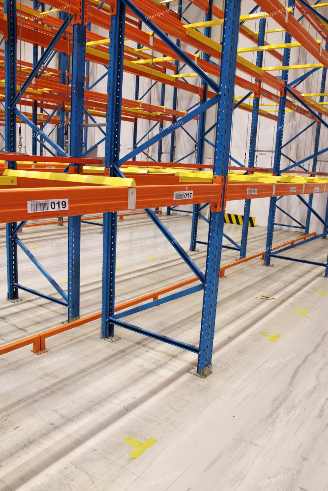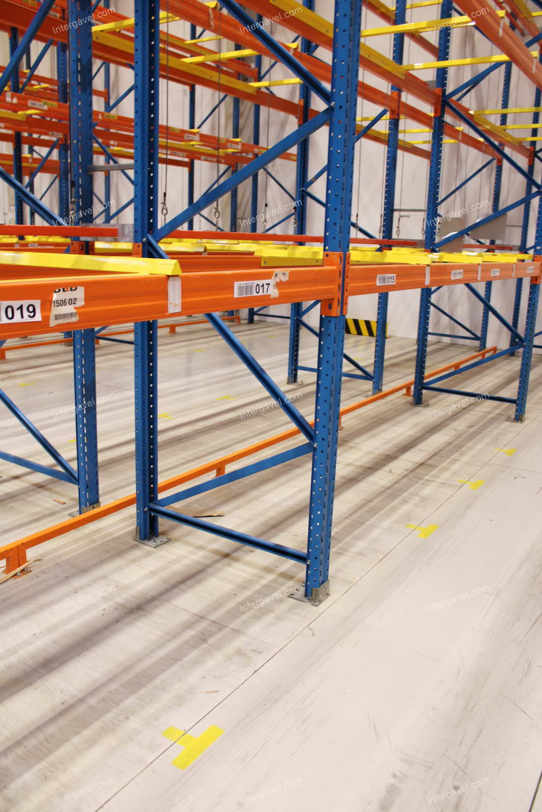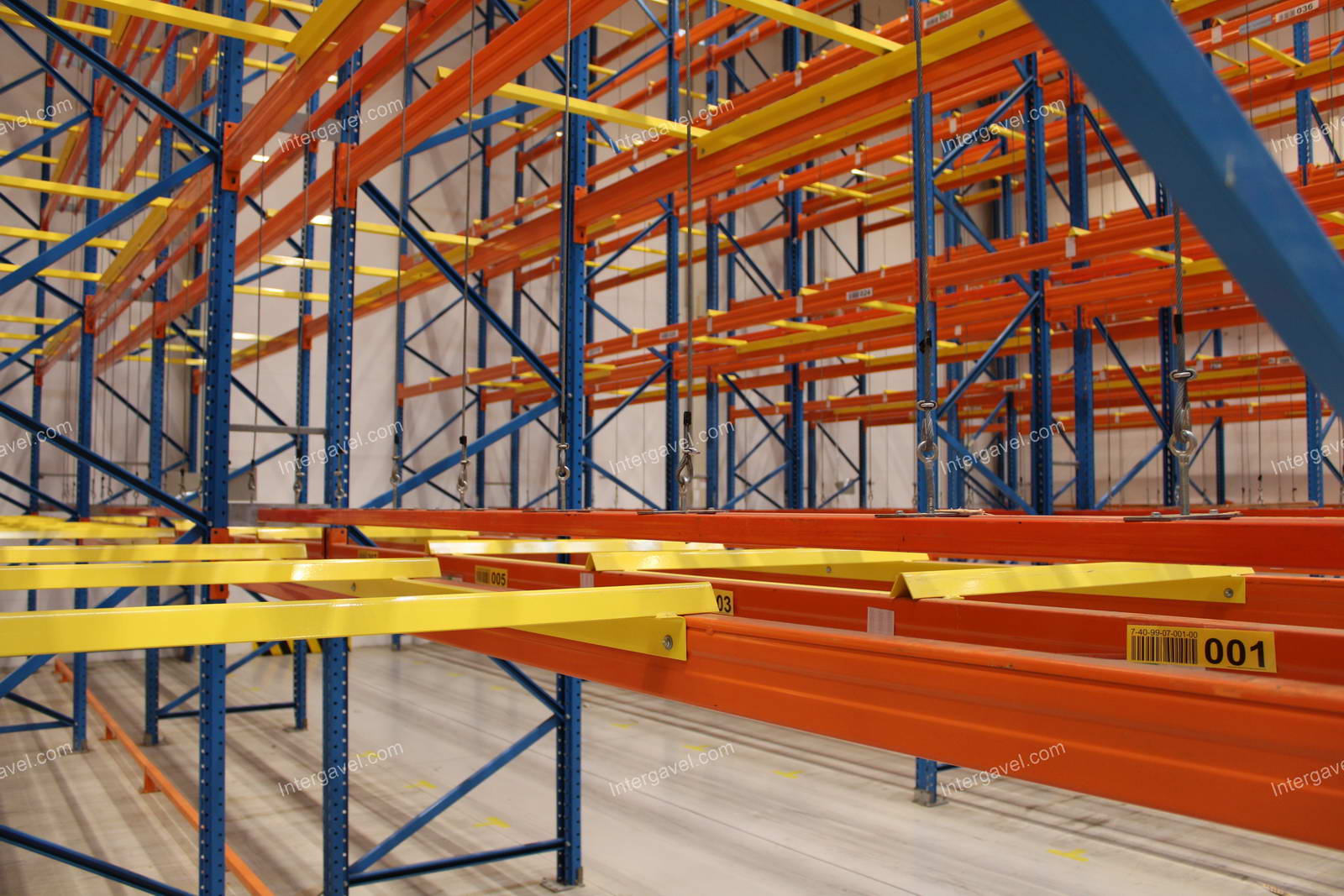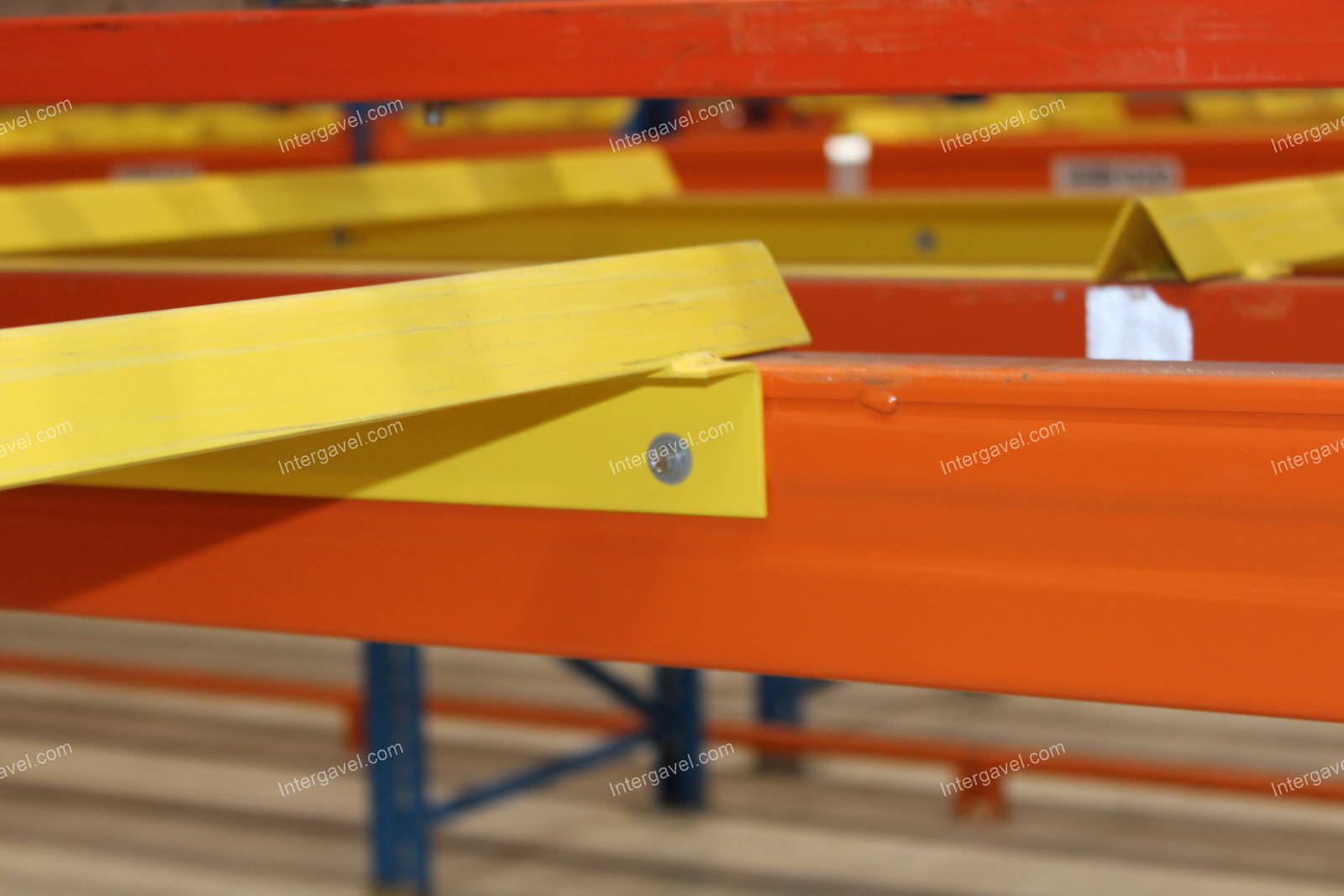 - paletta megvezető - tartószint közepén lévő, gerendákhoz rögzített sárga színű szerkezet