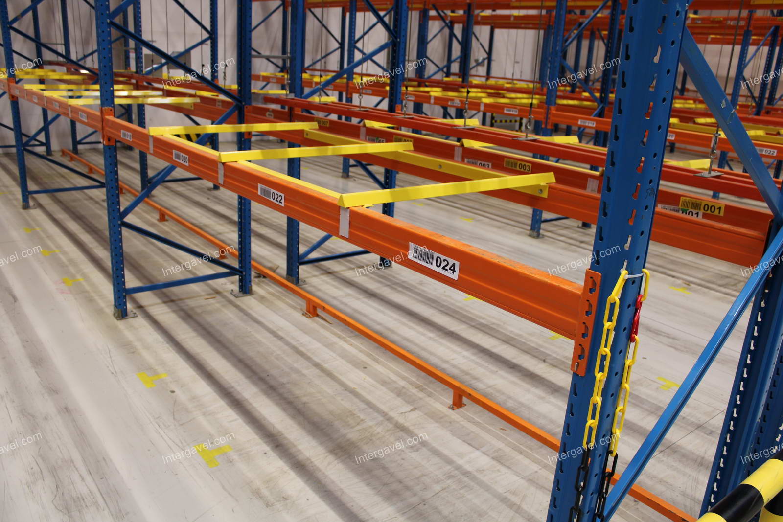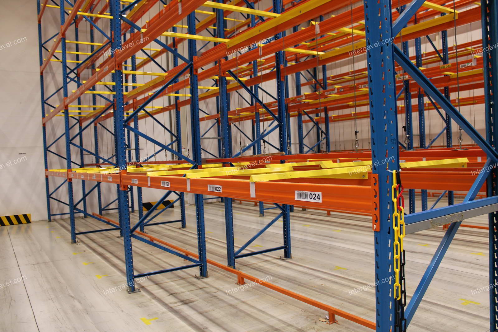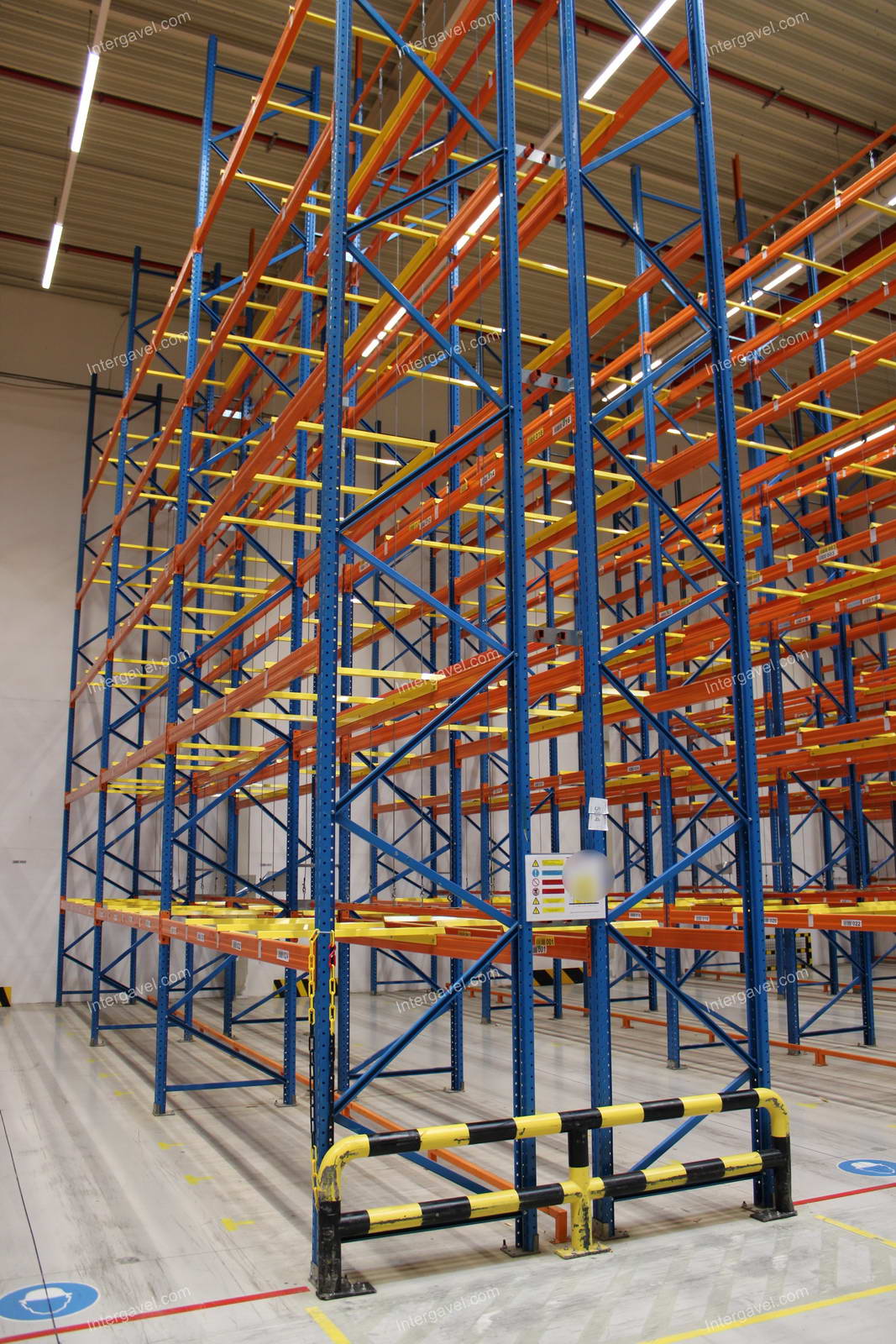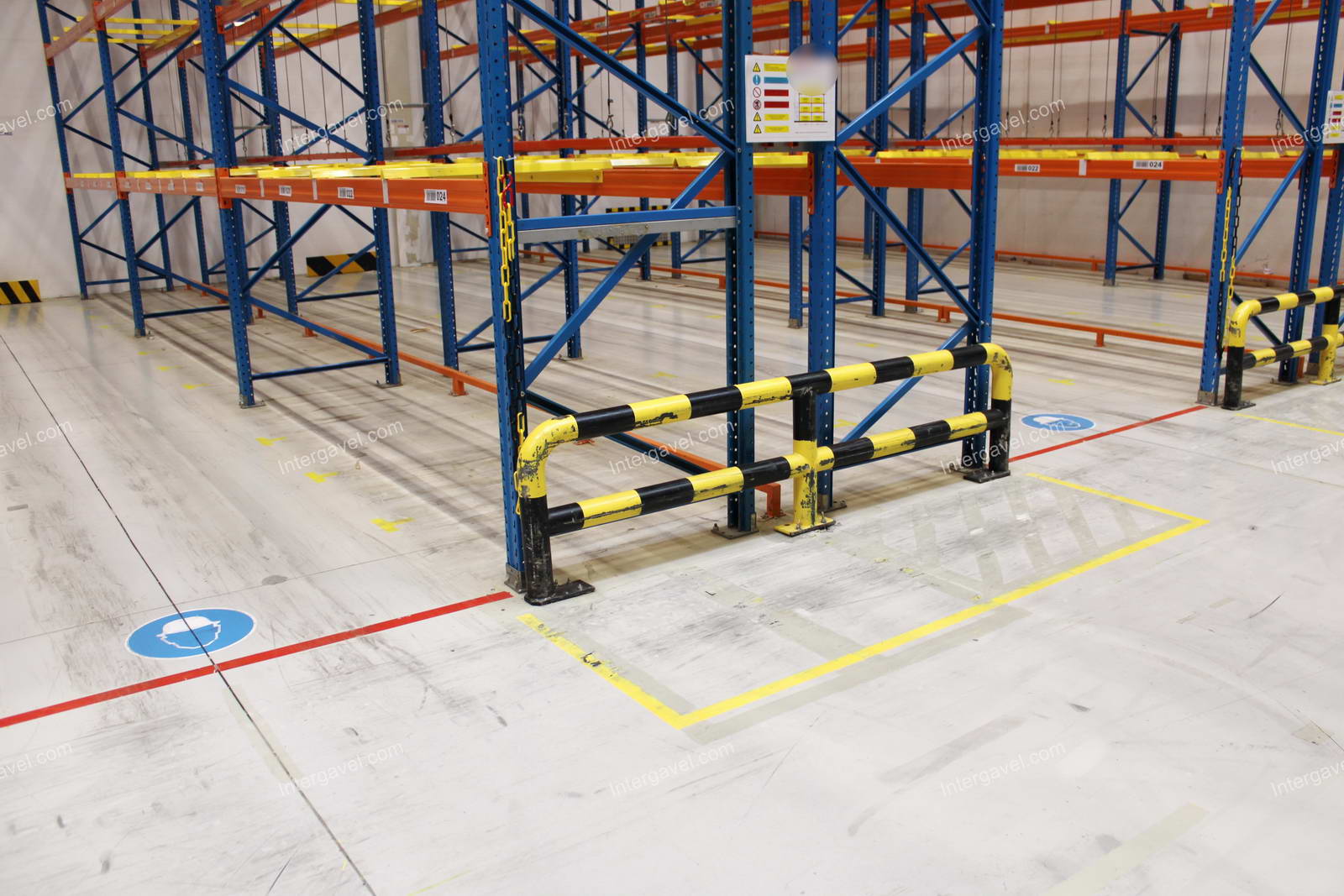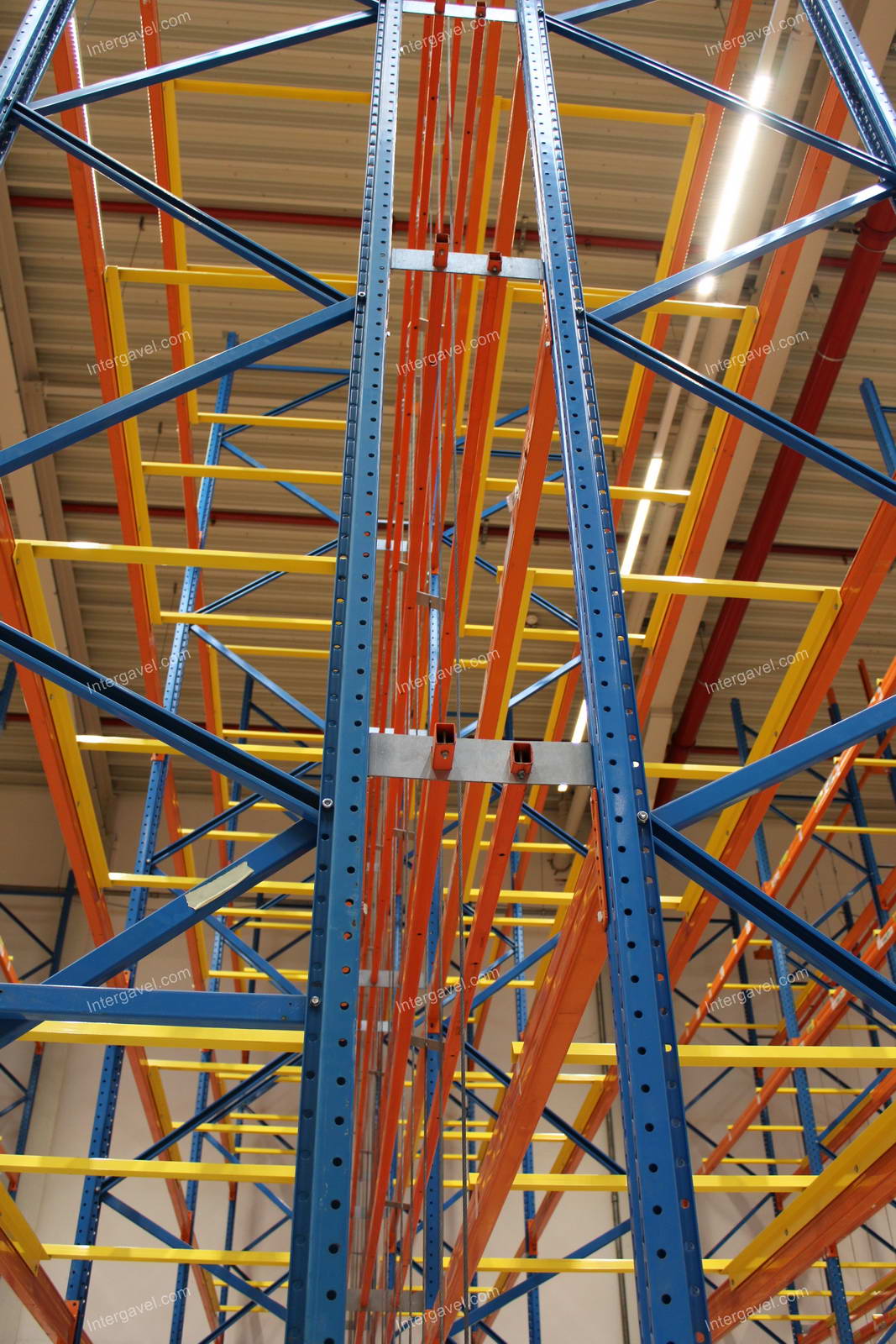 - paletta megvezető - tartószint közepén lévő, gerendákhoz rögzített sárga színű szerkezet