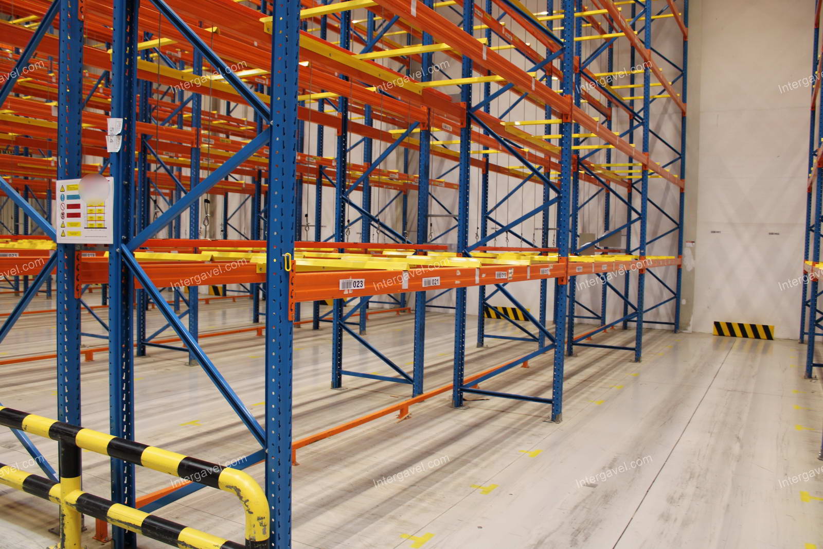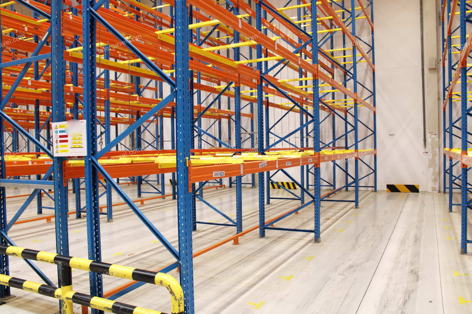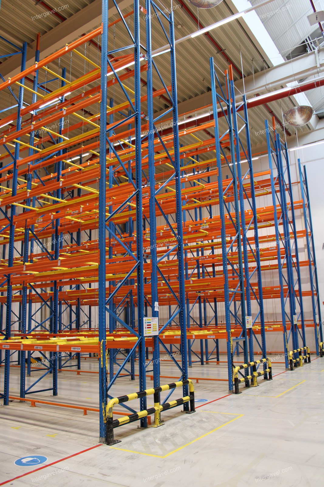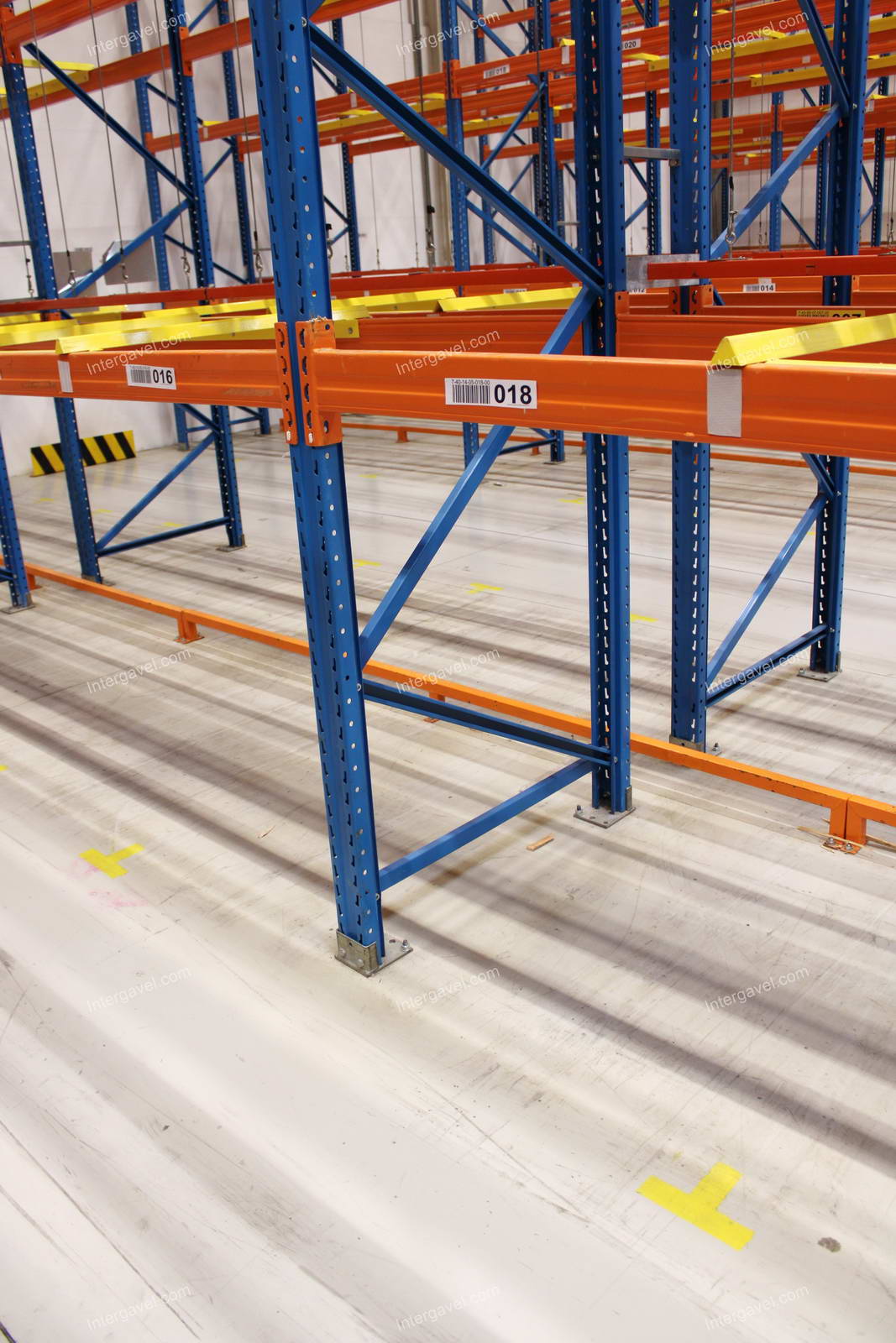 - paletta megvezető - tartószint közepén lévő, gerendákhoz rögzített sárga színű szerkezet